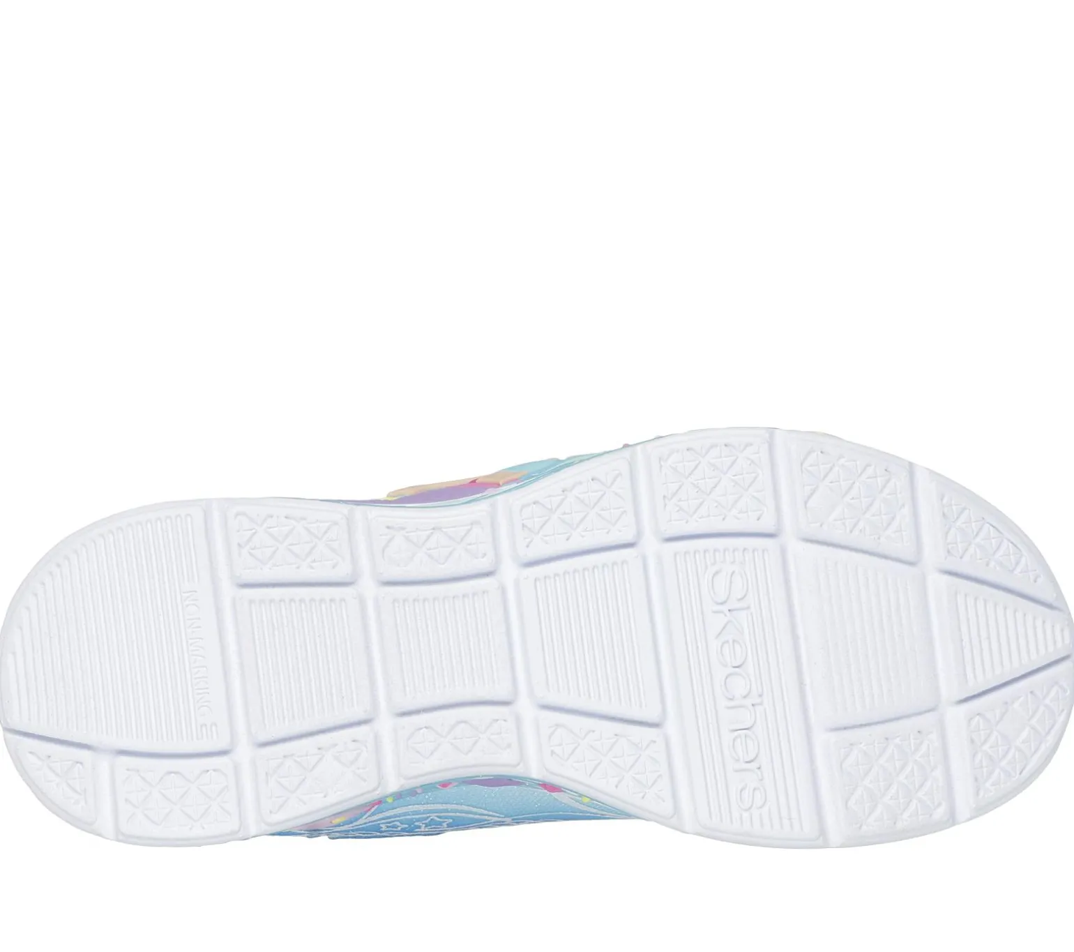 Sparkle and shine in style wearing Skechers S-Lights® Mermaid Dreams. This sporty Magical Collection® lighted design features a mesh and synthetic glitter finish upper with a mermaid themed side graphic, stretch laces, Skechers Adaptive Closure, and a cushioned comfort footbed.