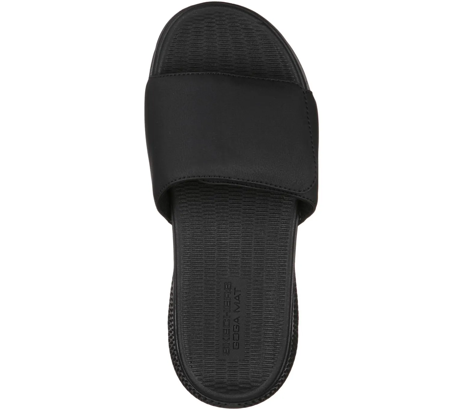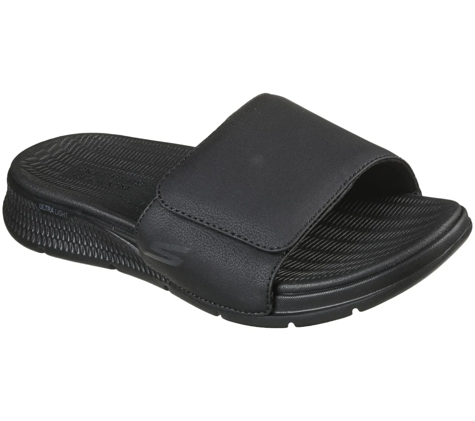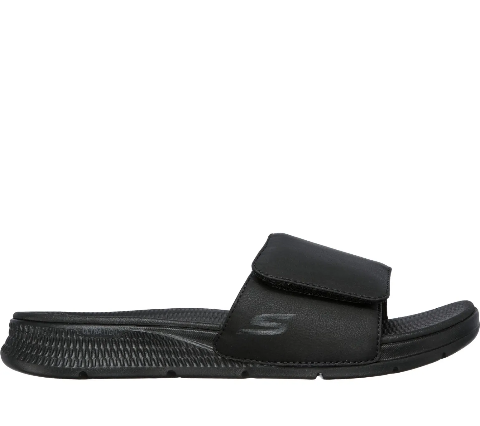 Keep cool in super light comfort wearing the Skechers GO Consistent – Watershed sandal. This sporty slide sandal features a smooth synthetic adjustable upper, Goga Mat contoured comfort footbed and ULTRA LIGHT cushioned midsole.