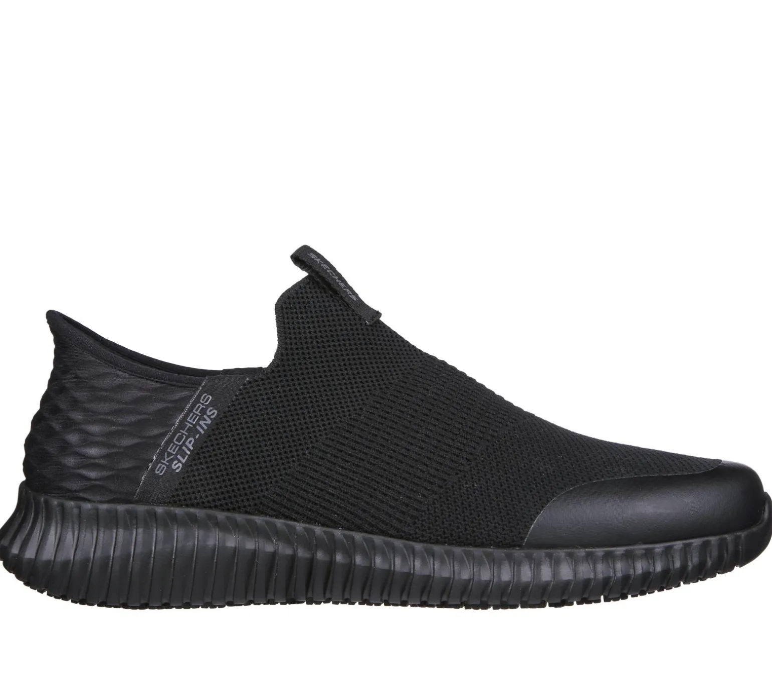 Step-in and head straight out for a safe and comfortable work day wearing Skechers Hands Free Slip-ins® Work: Cessnock – Rylind. This slip-on work style features a smooth woven mesh upper with a hot melt toe overlay, our exclusive Heel Pillow, a slip-resistant outsole, plus a Skechers Memory Foam cushioned comfort insole.