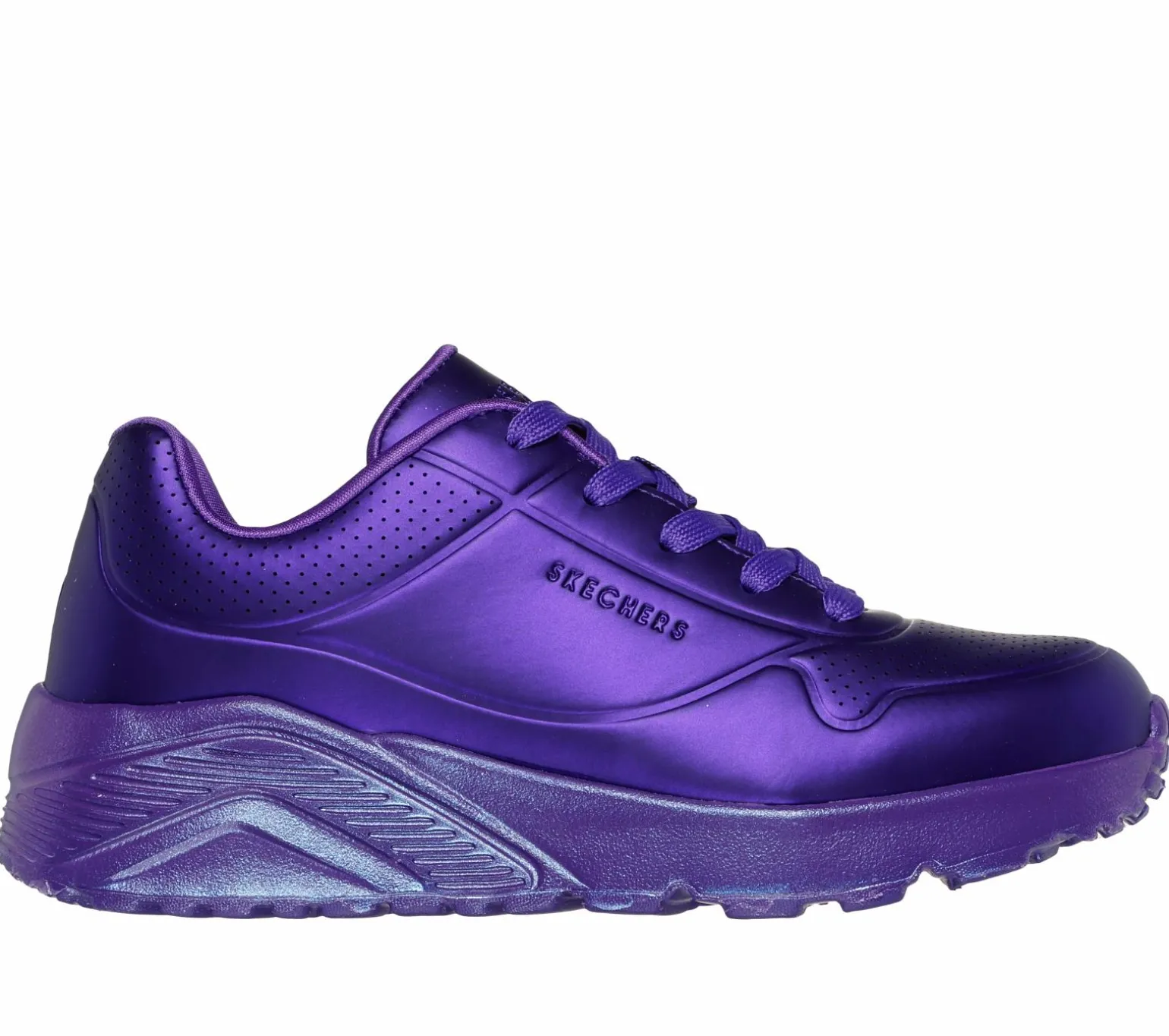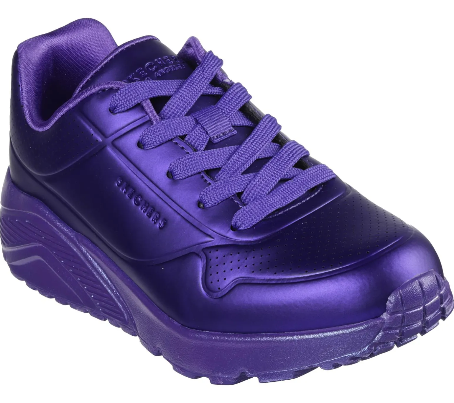 Glam up your outfit with cushioned comfort wearing Skechers Street Uno Lite – Jewel Mode. This lace-up fashion style features a jewel toned embossed duraleather upper, Skechers Air-Cooled Memory Foam® insole, plus a platform wedge cushioned midsole.
