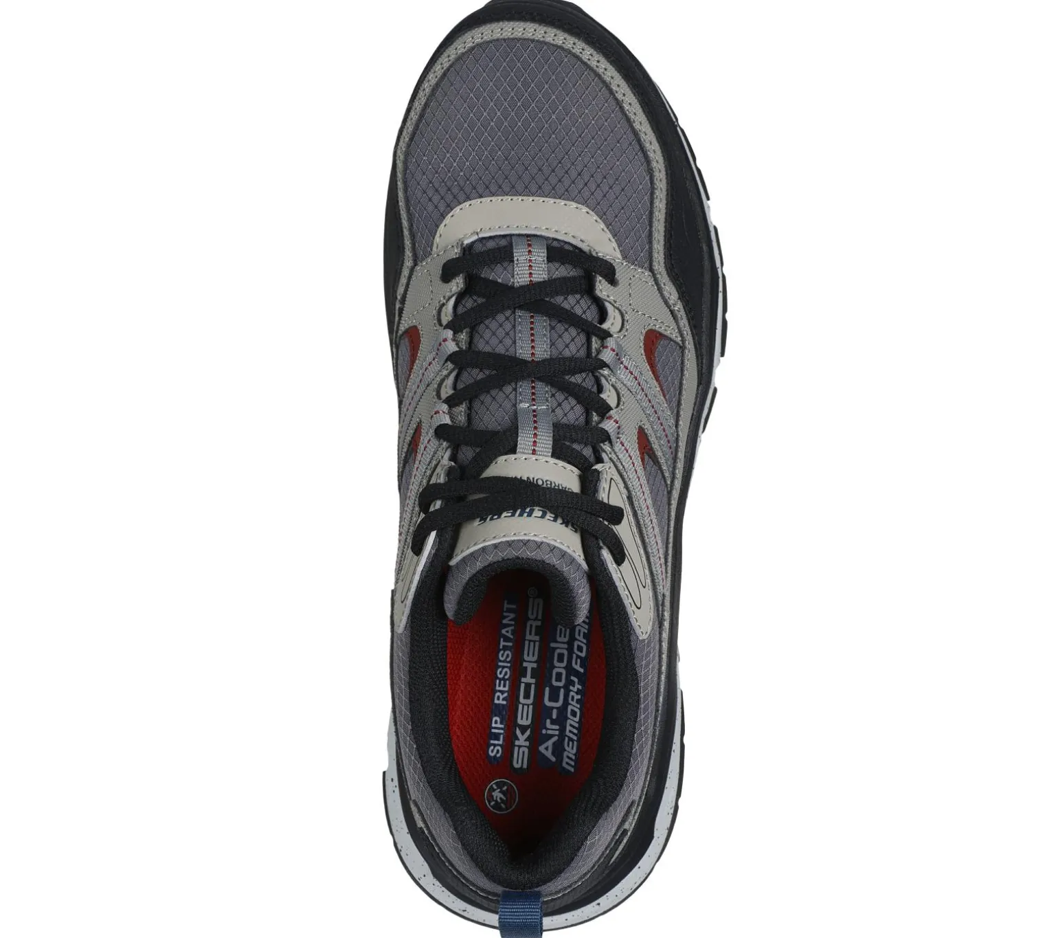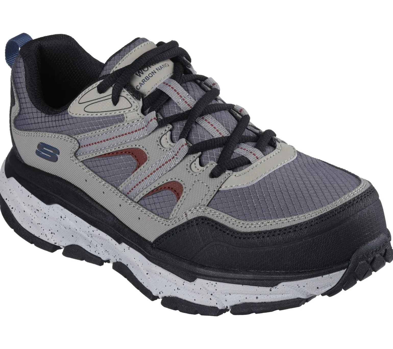 Surefooted comfort and safety combine in Skechers Work: D’Lux Journey Slip-Resistant Carbon Toe. This slip-resistant hiker-inspired design features a lace-up leather, synthetic, and woven fabric upper with a cushioned Skechers Air-Cooled Memory Foam® insole and a carbon fiber nano safety toe.