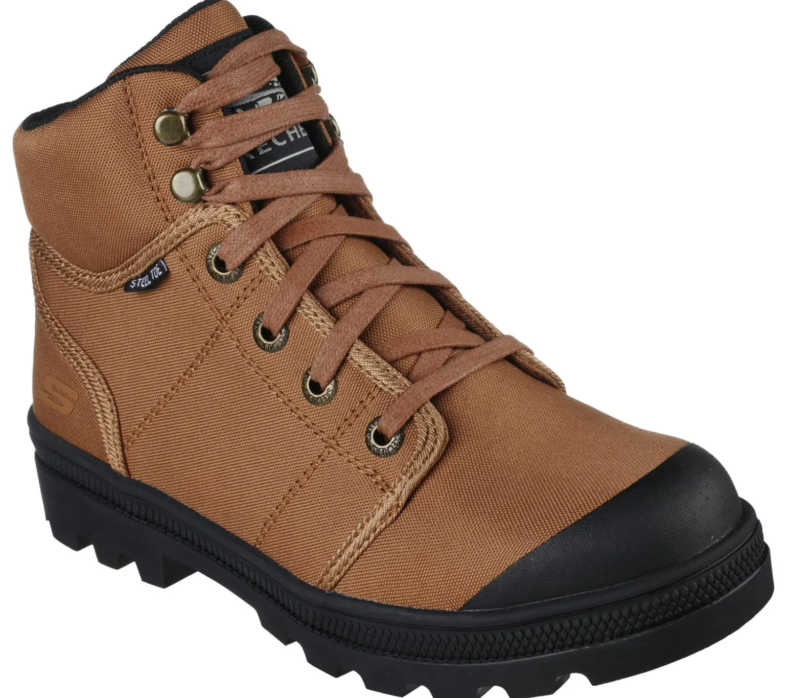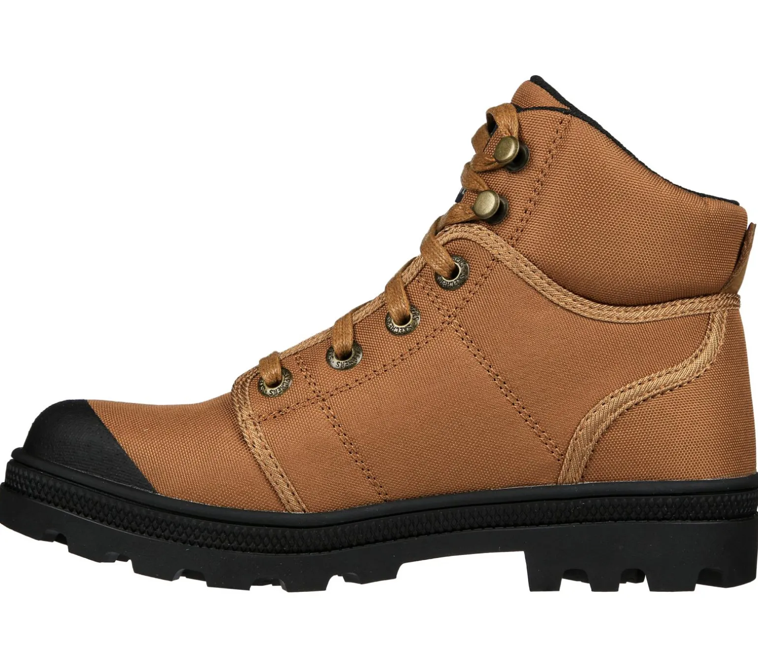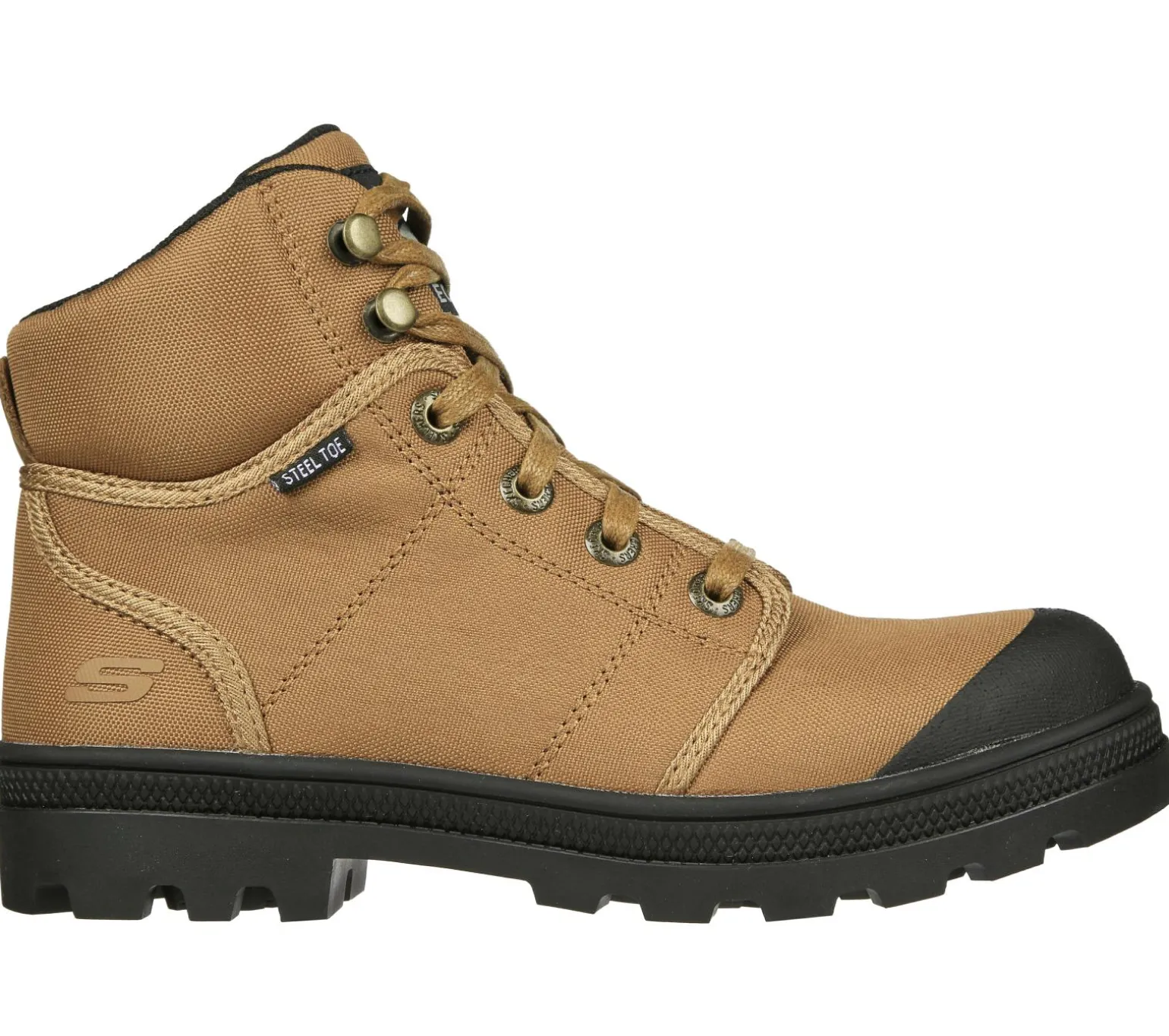 Dependable comfort and safety combine in Skechers Work: Rotund – Darragh ST. This lace-up sneaker boot features a durable canvas and synthetic upper with cushioned Skechers Air-Cooled Memory Foam® insole and a steel safety toe.