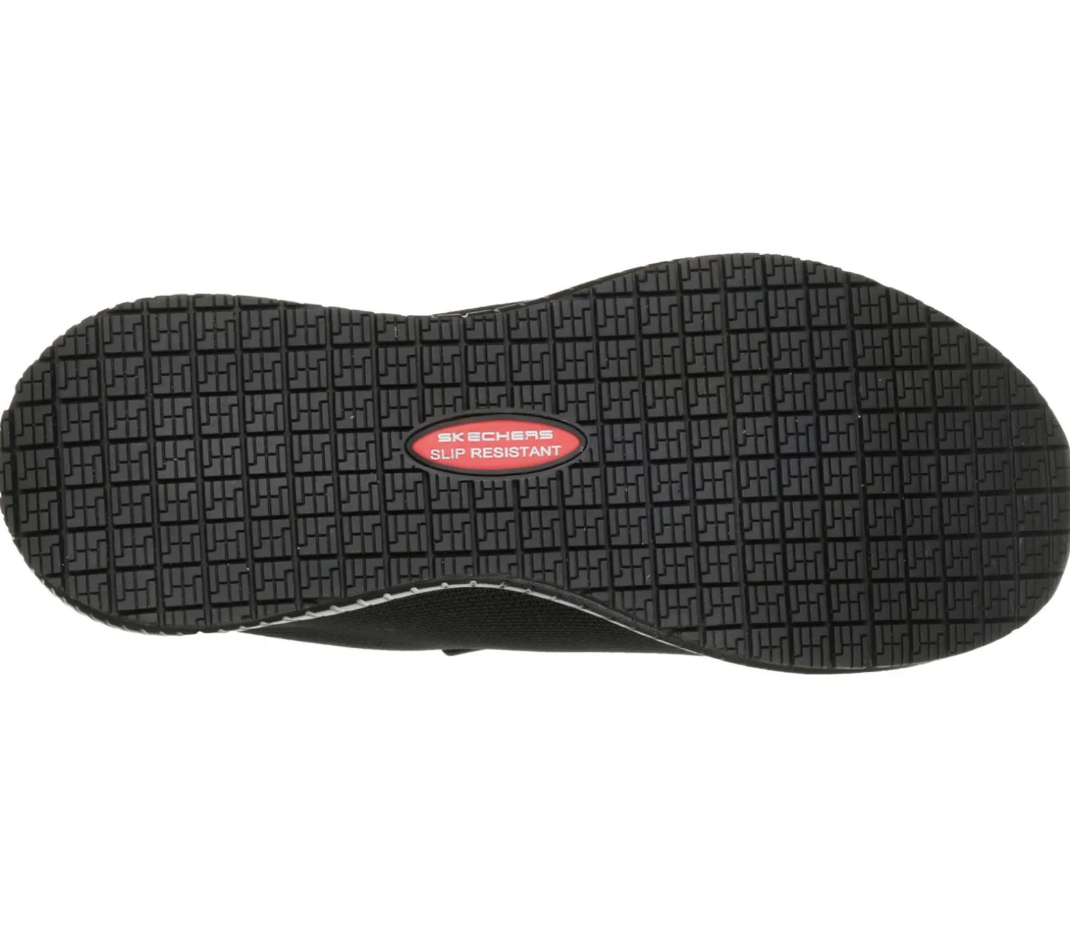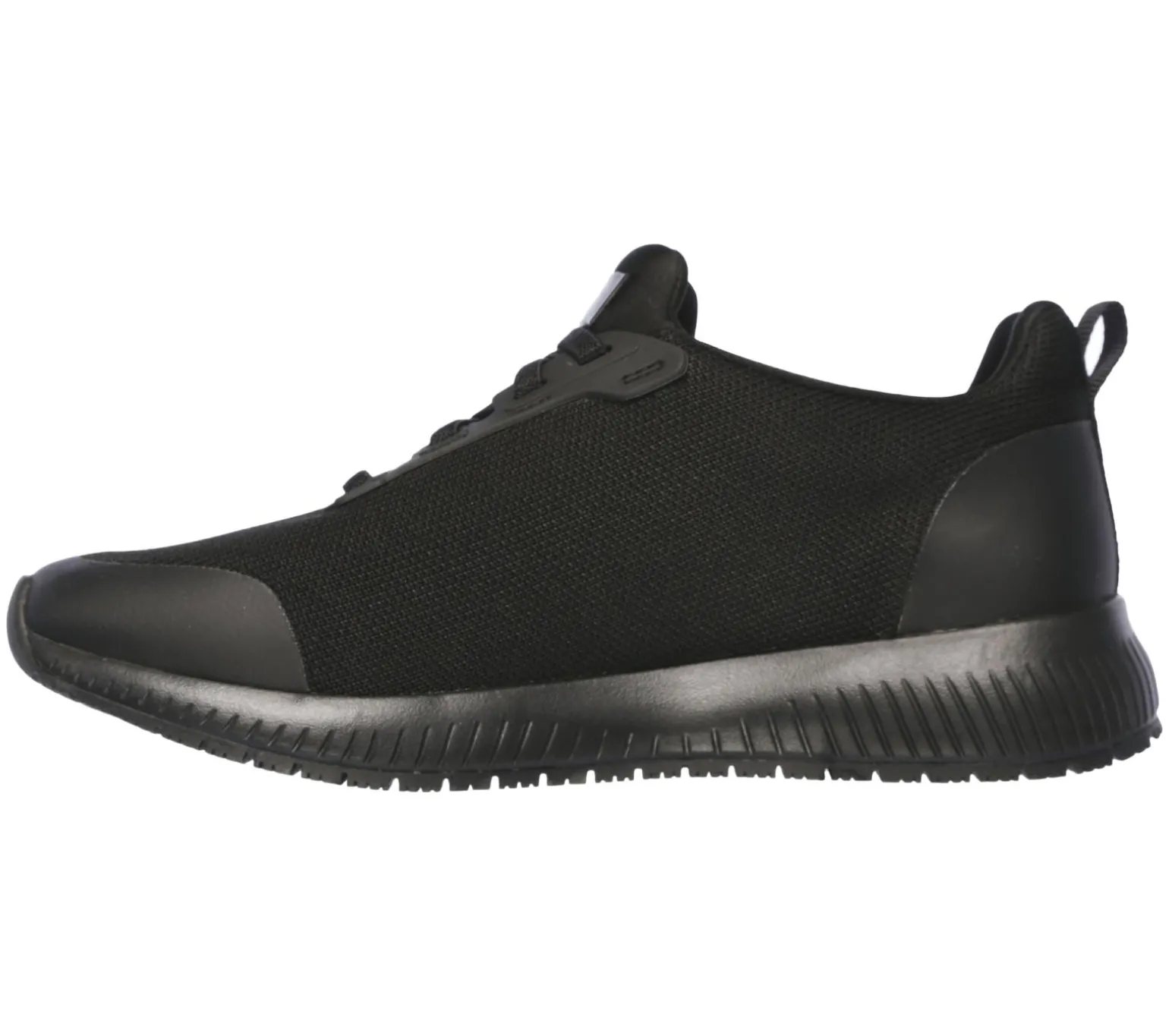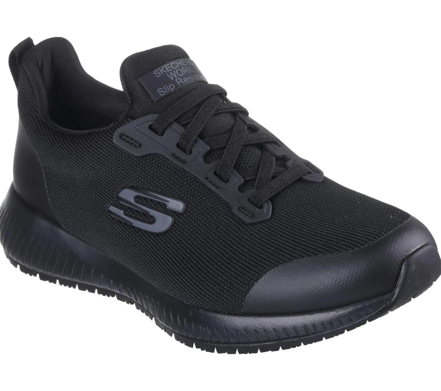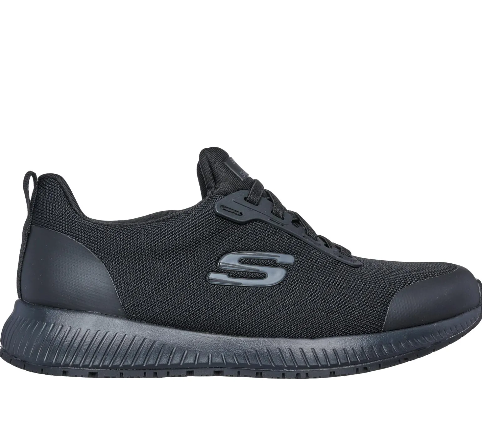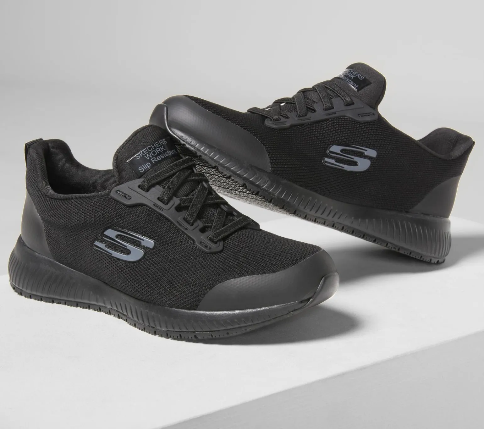Comfort and protection combine with easy-wearing style in Skechers Work Relaxed Fit®: Squad SR. This sporty utility design features a 3M® Scotchgard® treated soft mesh and synthetic upper with a stretch-lace front, slip-resistant traction outsole, and a cushioned Skechers Memory Foam insole.