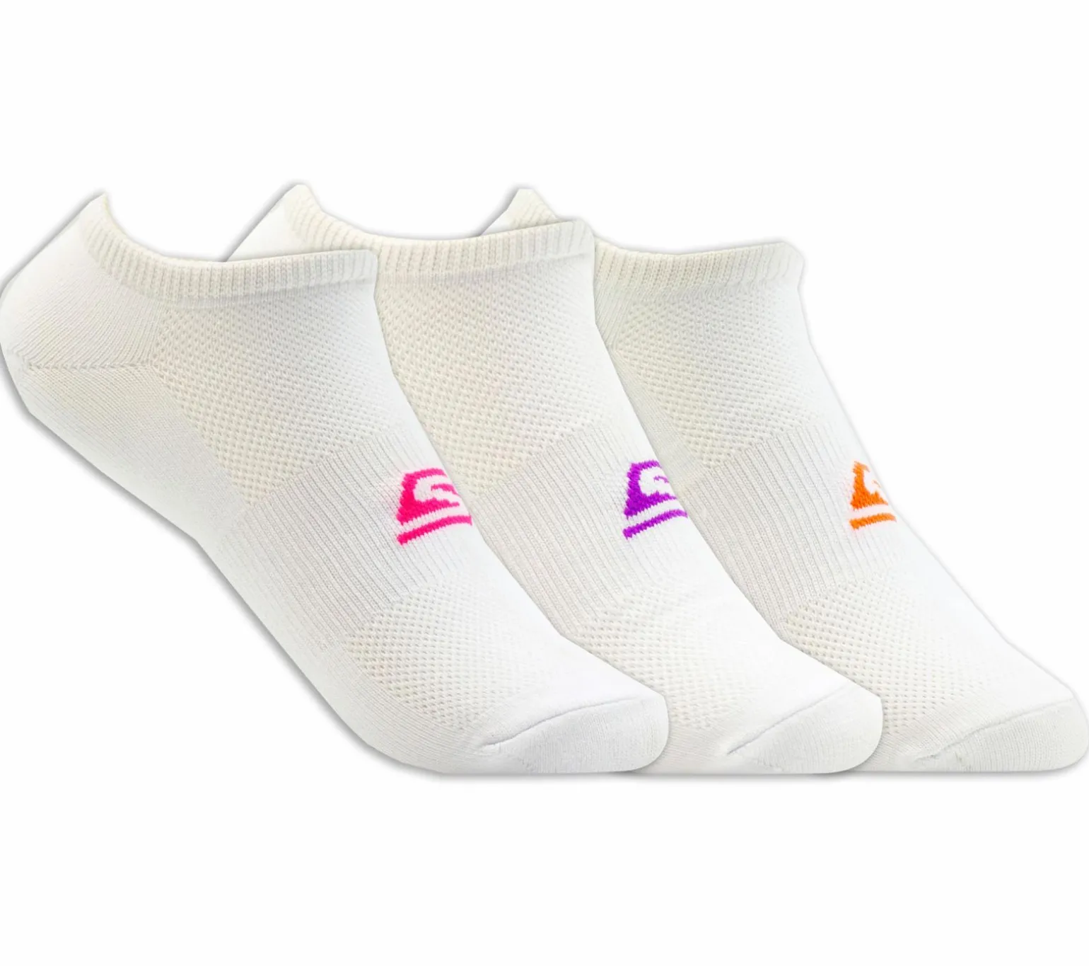 Supreme comfort and fun style comes in the Skechers Apparel 3 Pack of Women’s No Show Sport Stretch Socks. Nylon microfiber fabric in a lightweight athletic stretch comfort no-show sock with contrast logo detail.