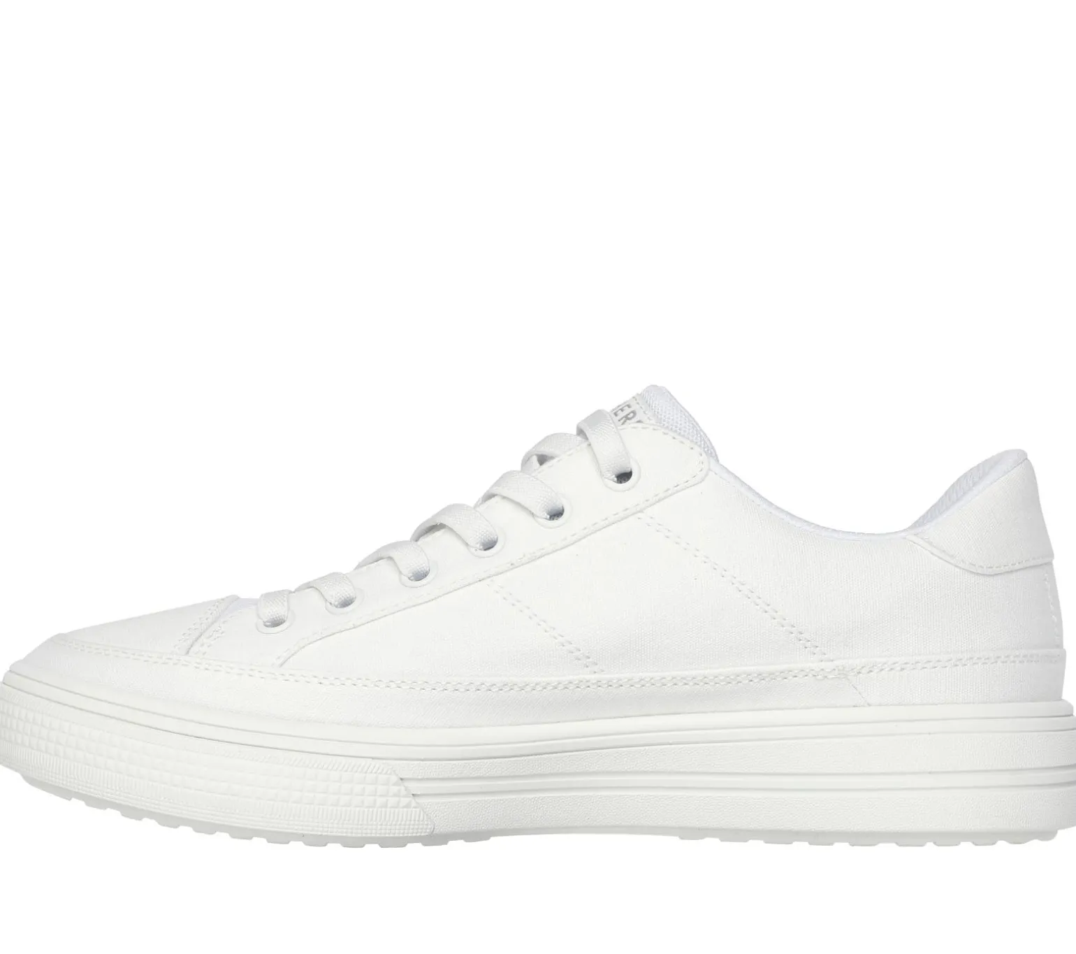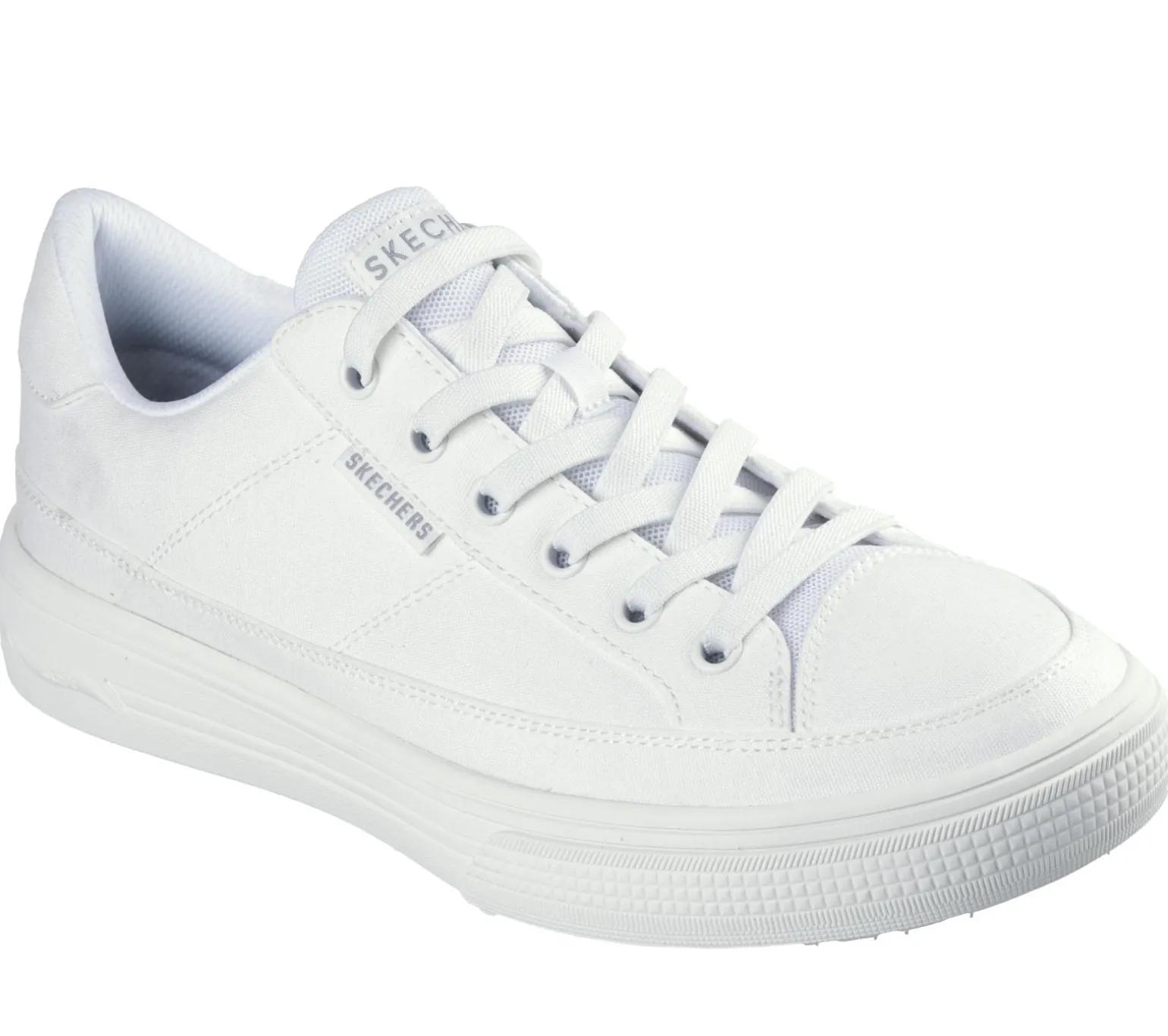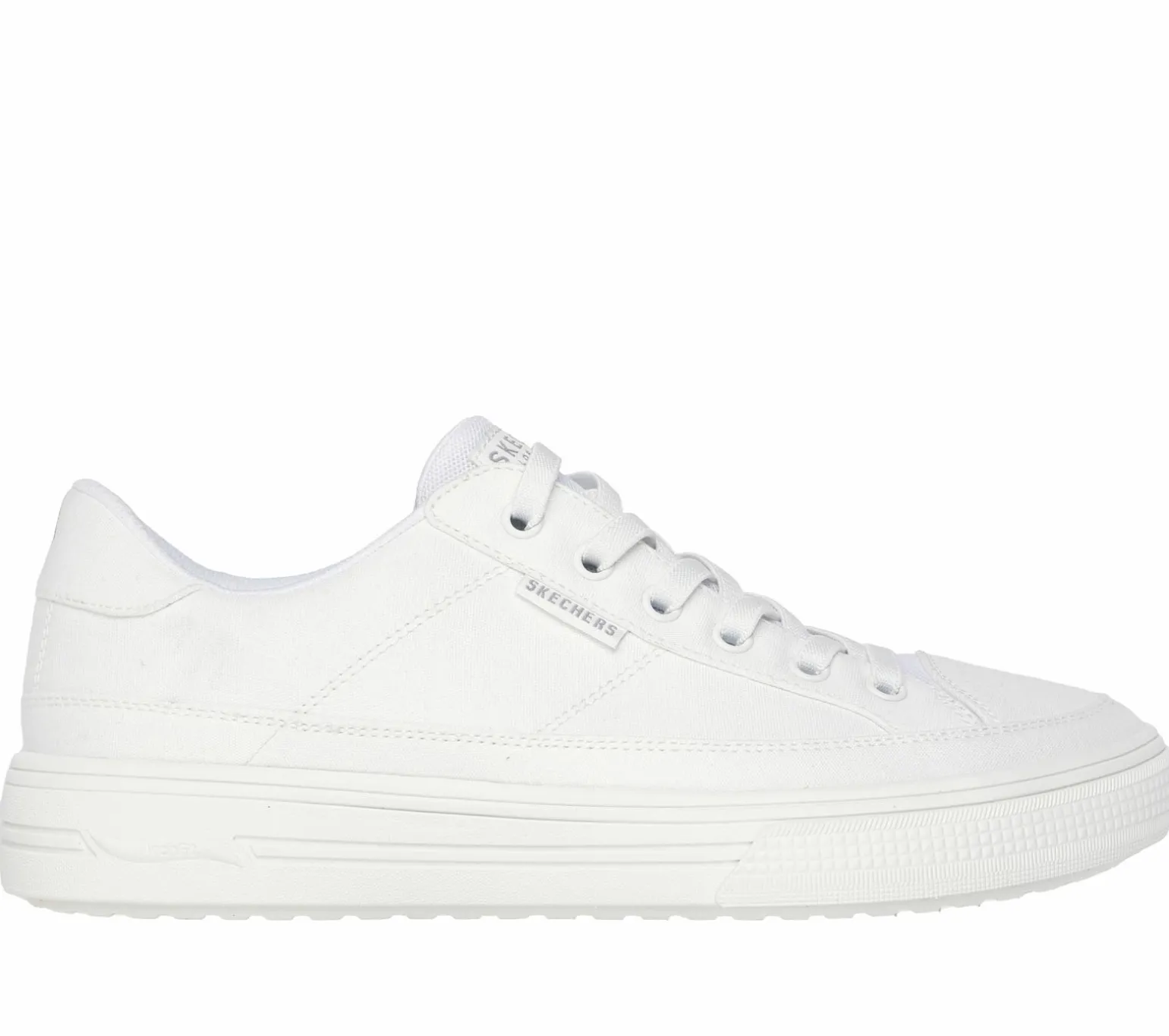 Step out in casual style and cushioned comfort wearing Skechers Street Arch Fit® Arcade – Meet Ya There. This easy-wearing vegan design has been granted the APMA Seal of Acceptance and features a cotton canvas upper with stretch laces, removable Arch Fit® insole, and a lightweight cushioned midsole.