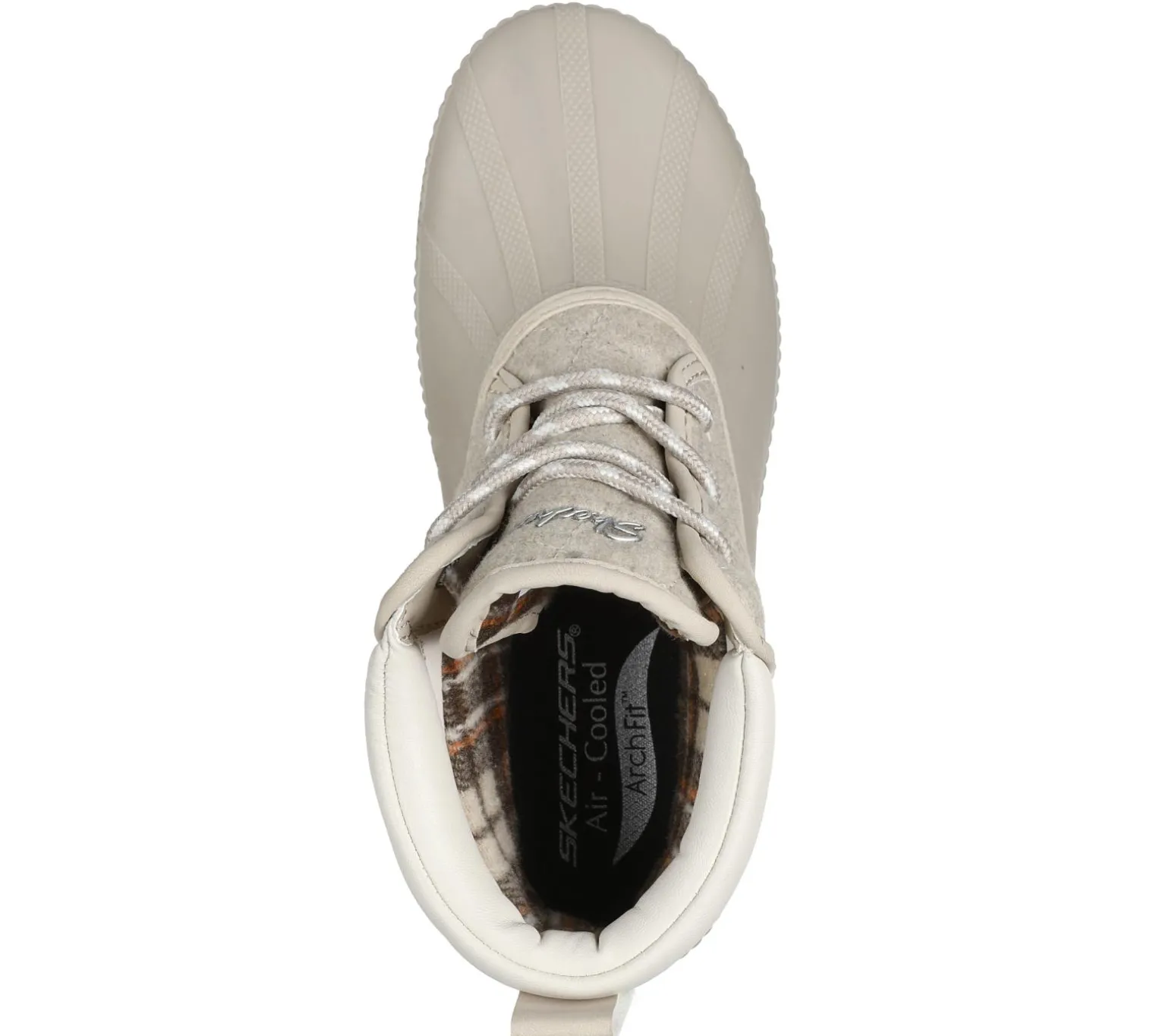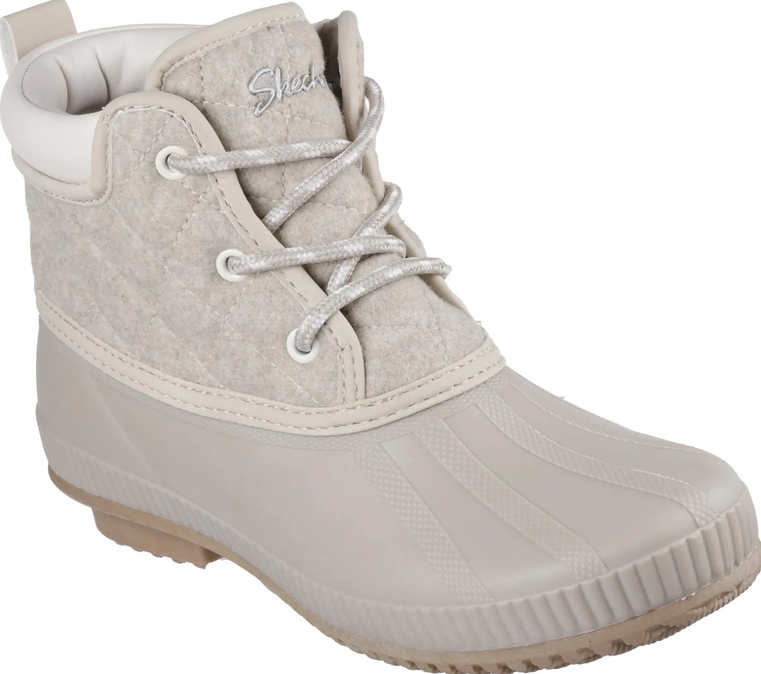 Make a splash in style and comfort wearing Skechers Arch Fit® Pond – Lil Puddles 2. This 3M® Scotchgard® treated mid-top duck boot features a durable synthetic upper with a quilted wool-look shaft, padded collar, and a cushioned Skechers Air-Cooled Memory Foam® insole.