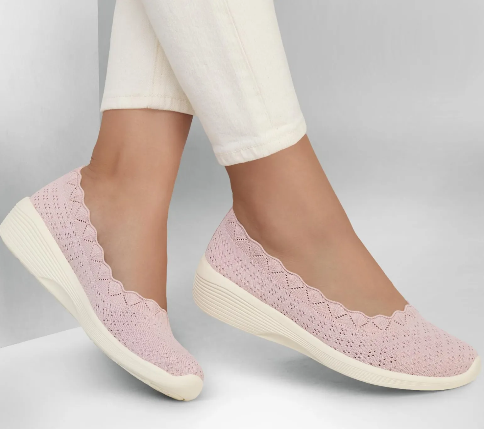 Move to the beat of comfort in the stylish Skechers Arya – Disco. This casual vegan skimmer features a Stretch Fit® engineered knit upper and a cushioned Skechers Air-Cooled Memory Foam® comfort insole.