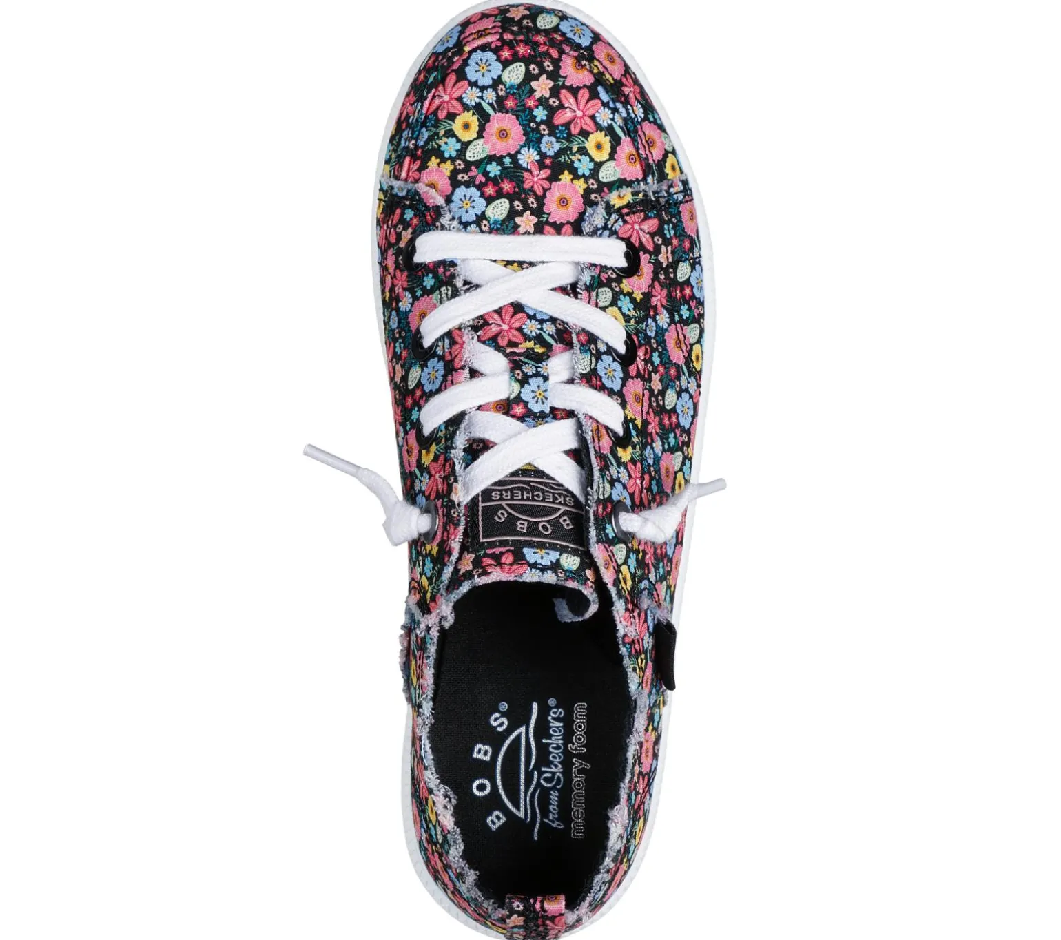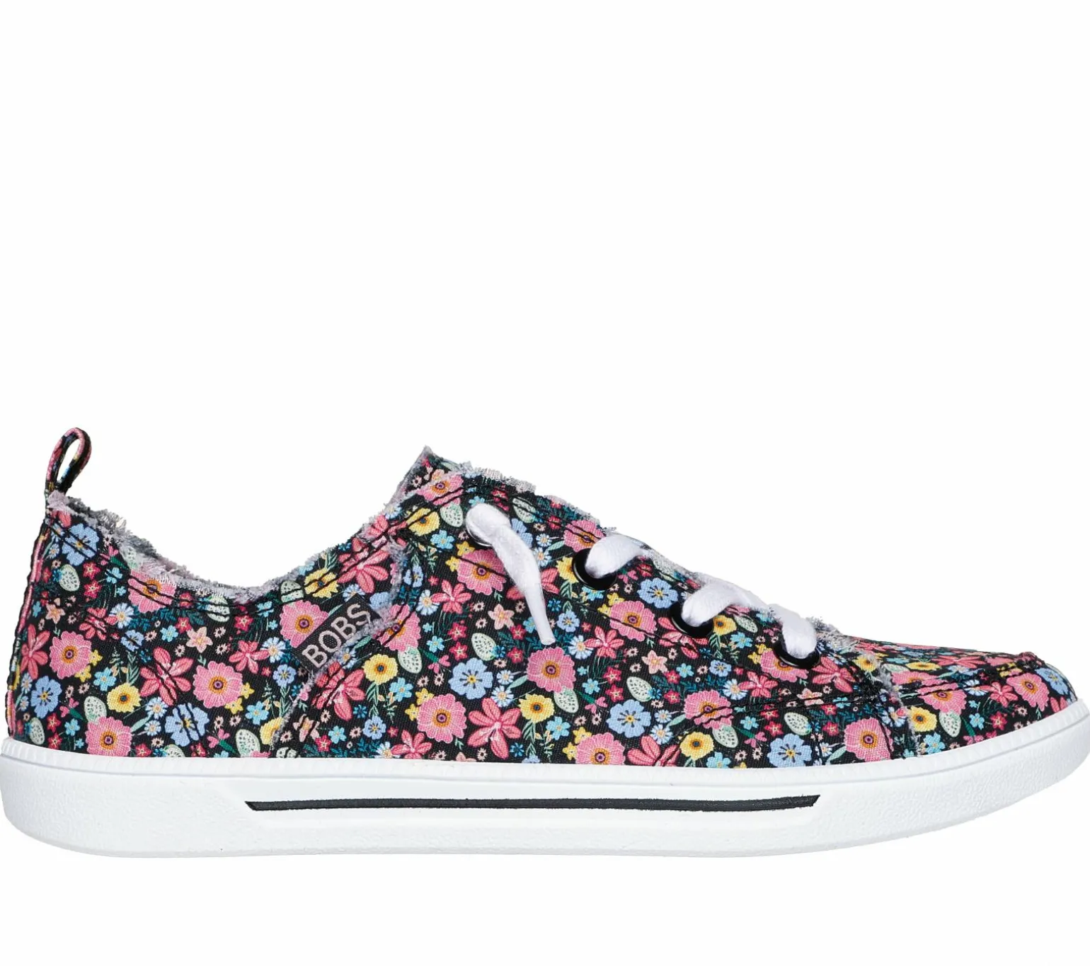 Easy-wearing classic style and comfort combine in BOBS® from Skechers® B Cute 2.0. This casual vegan design features a floral canvas upper with frayed edge details, tied-off decorative laces, and a cushioned Skechers Memory Foam insole. For every BOBS® purchase, a donation is made to animals in need.