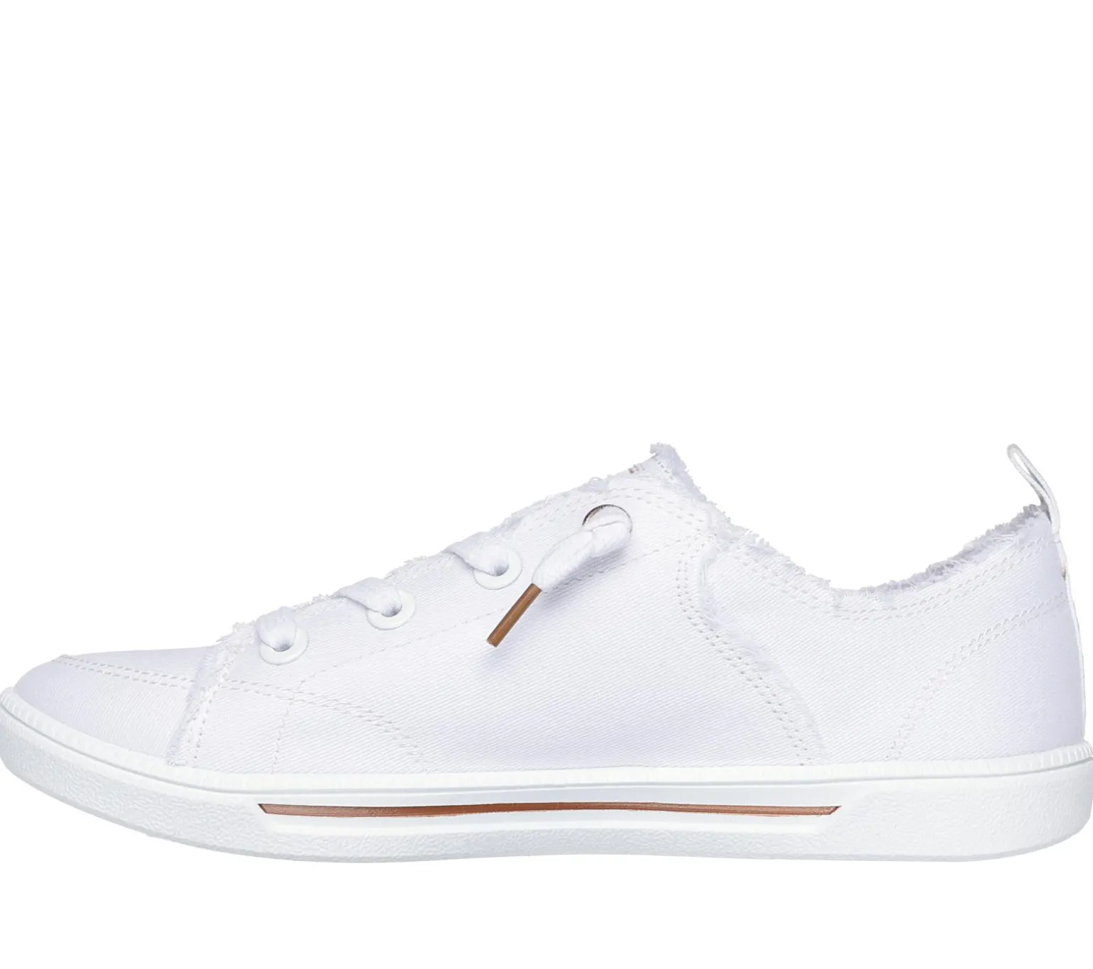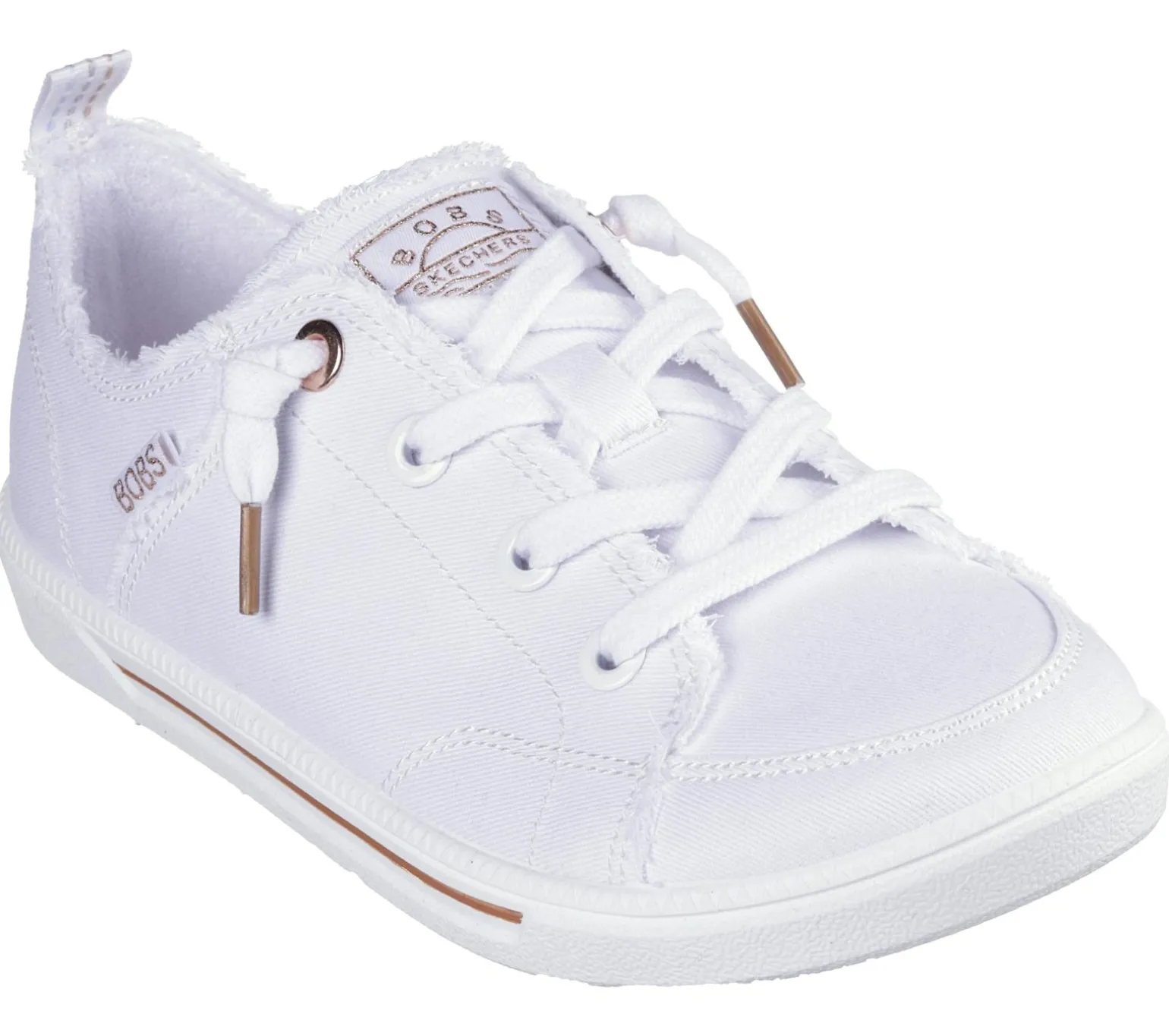Easy-wearing classic style and comfort combine in BOBS® from Skechers® B Cute 2.0. This casual vegan design features a cotton canvas upper with frayed edge details, tied-off decorative laces, and a cushioned Skechers Memory Foam insole. For every BOBS® purchase, a donation is made to animals in need.