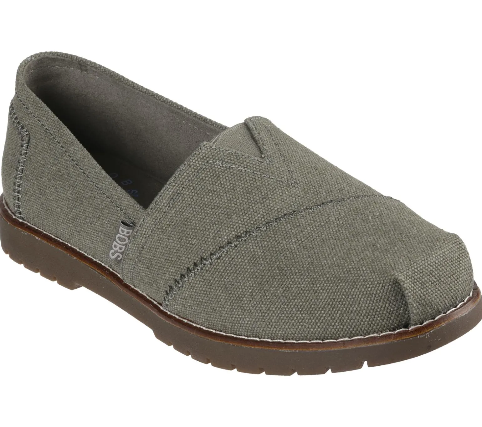 Easy-wearing classic style and comfort combine in BOBS® from Skechers® Chill Lugs – Familiar Turf. This casual vegan design features a washed canvas upper with decorative ‘patch-look’ stitching details, a mini V-notched gore instep panel, Skechers Memory Foam insole, plus a lightweight, lug-look flexible traction outsole. For every BOBS® purchase, a donation is made to animals in need.