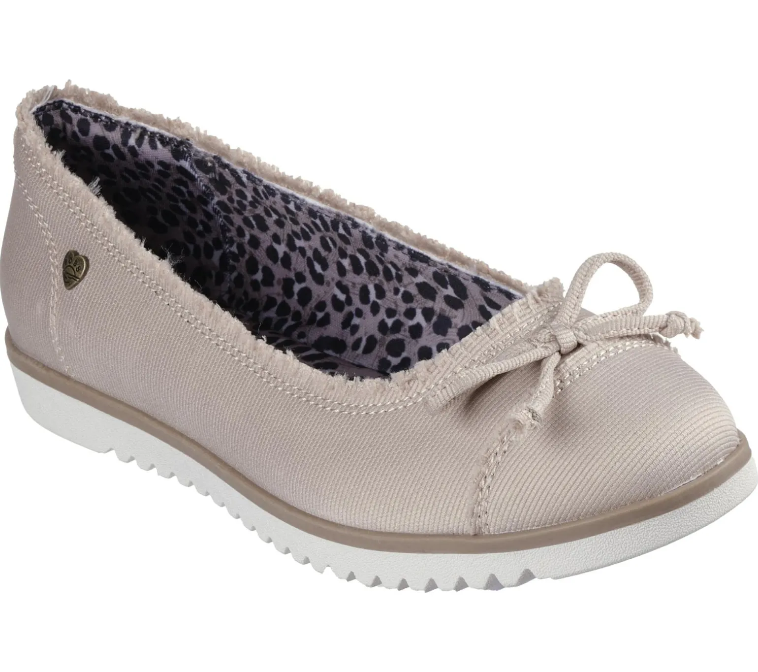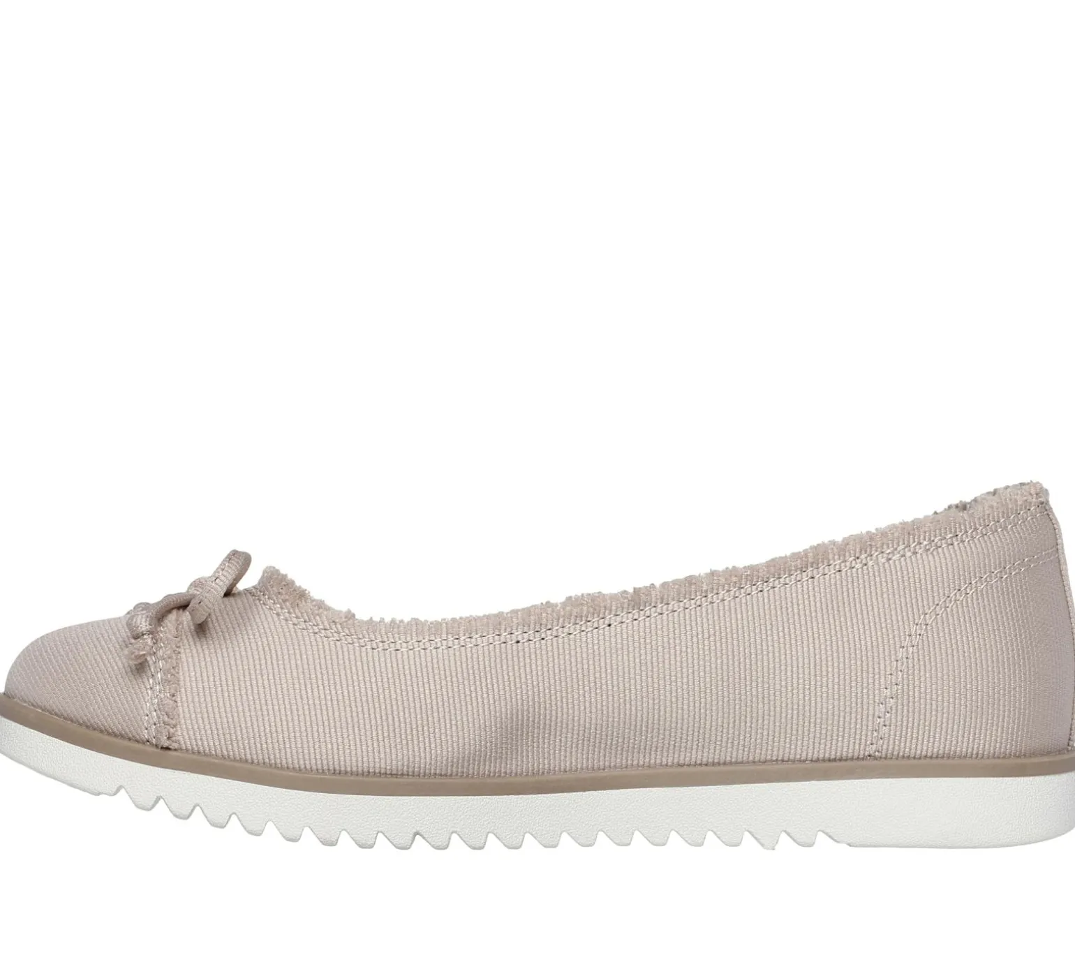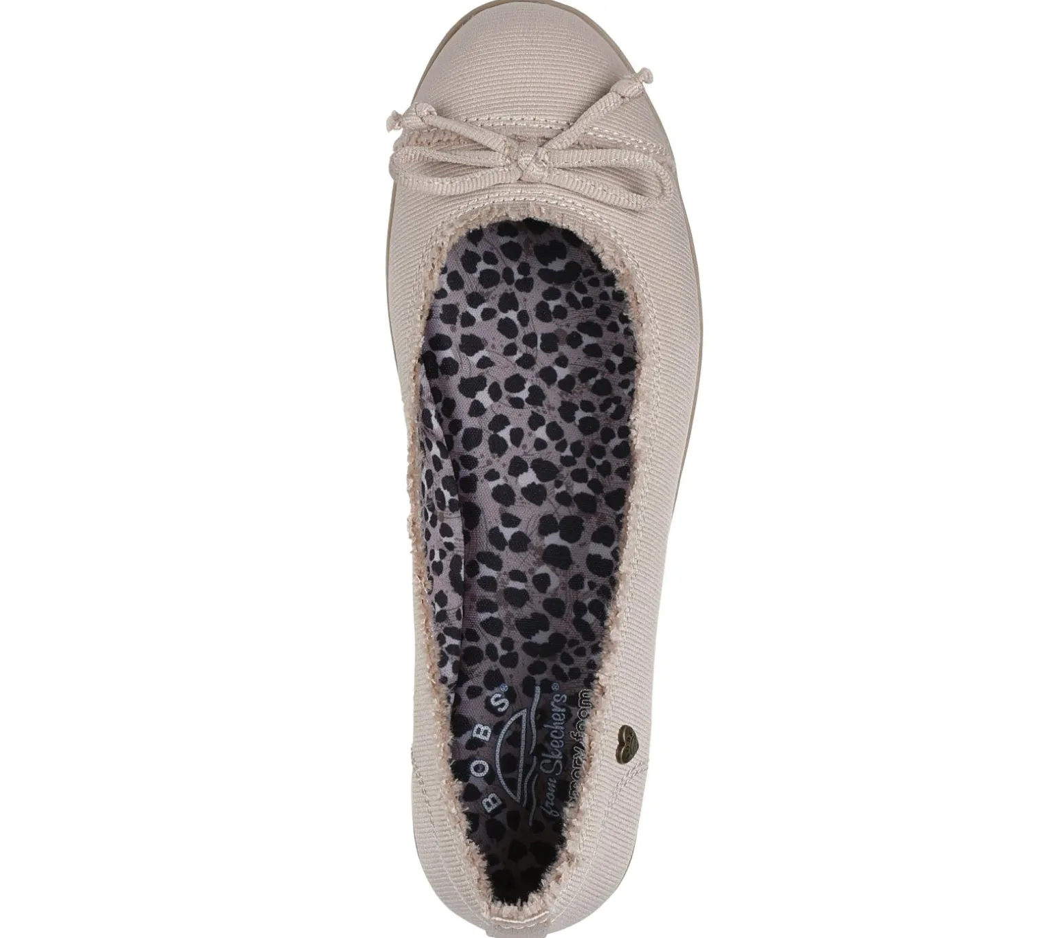Casual, on-trend style meets cushioned comfort in BOBS® from Skechers® Flexpadrille Lo – Tiptoes. This vegan ballet-style skimmer features a canvas upper with frayed edge detail, Skechers Memory Foam insole, plus a dainty toe cap bow. For every BOBS® purchase, a donation is made to animals in need.