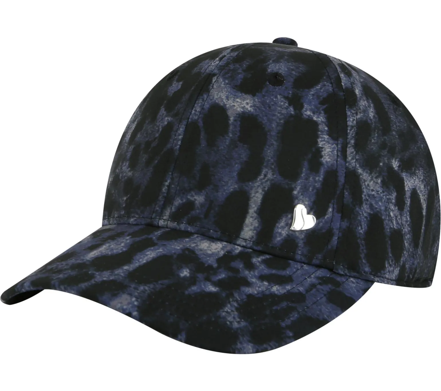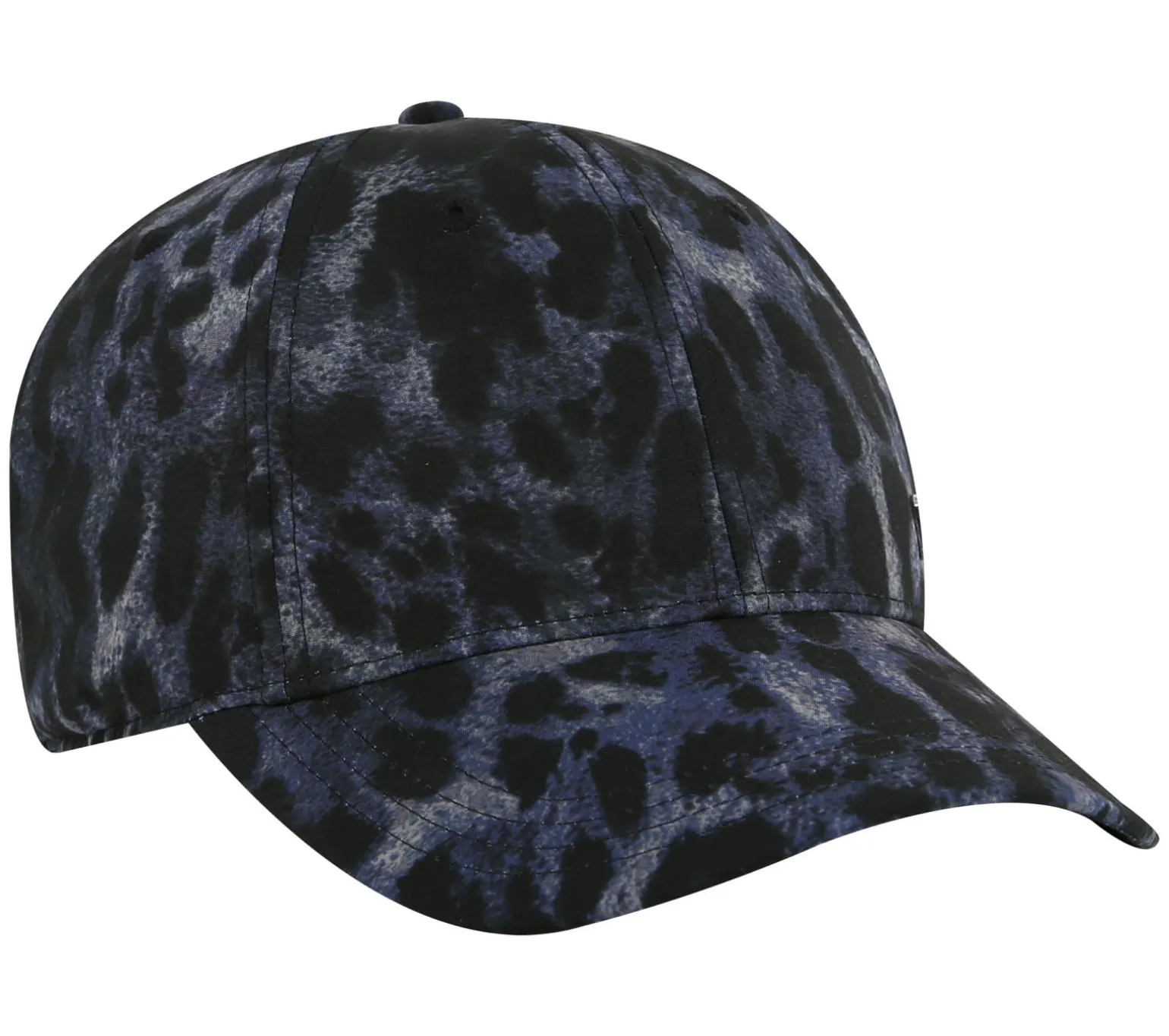 Finesse your feline-loving style in the Skechers Cheetah Baseball Hat. This baseball cap features an allover cheetah print soft poly blend fabric with stitching accents, an adjustable strap, and a small Skechers heart logo on front left panel.