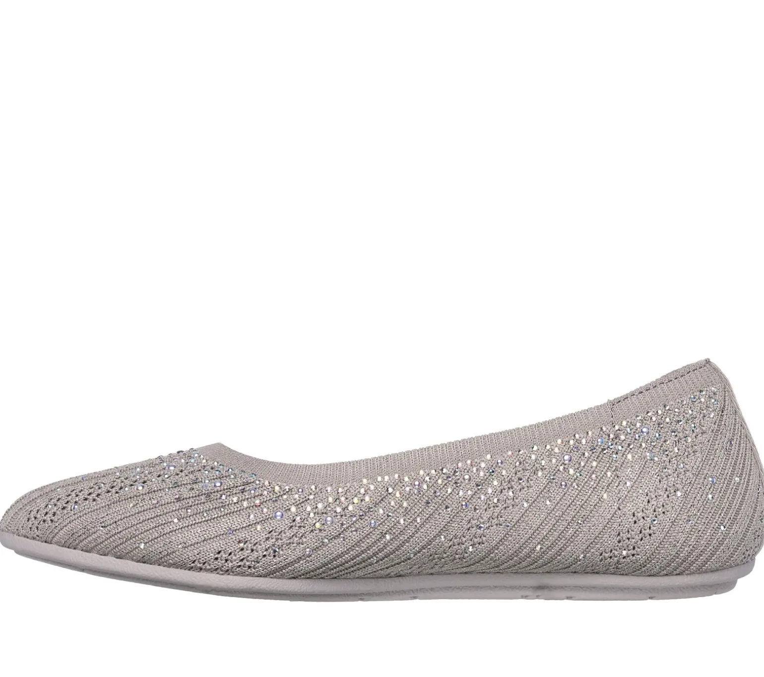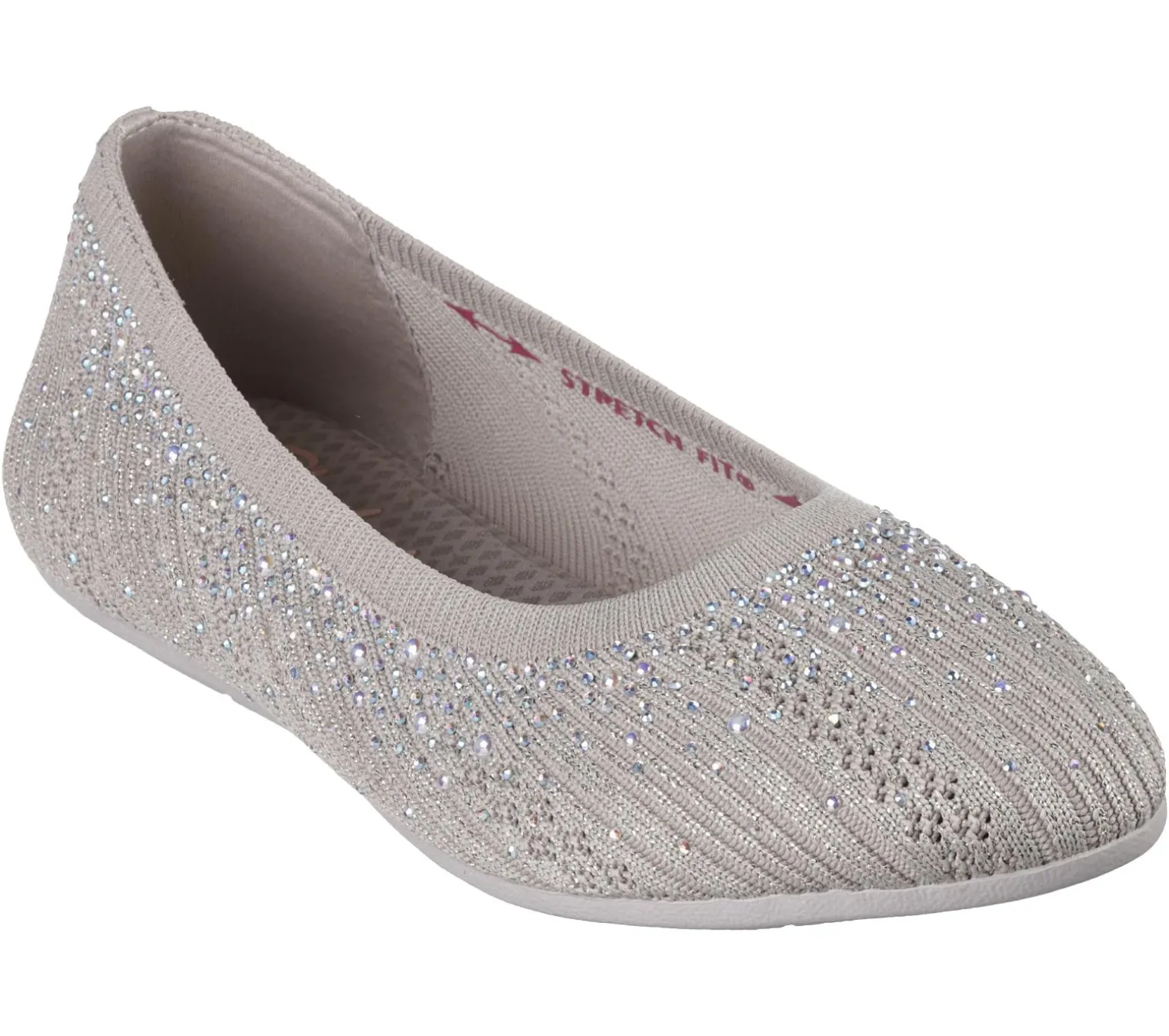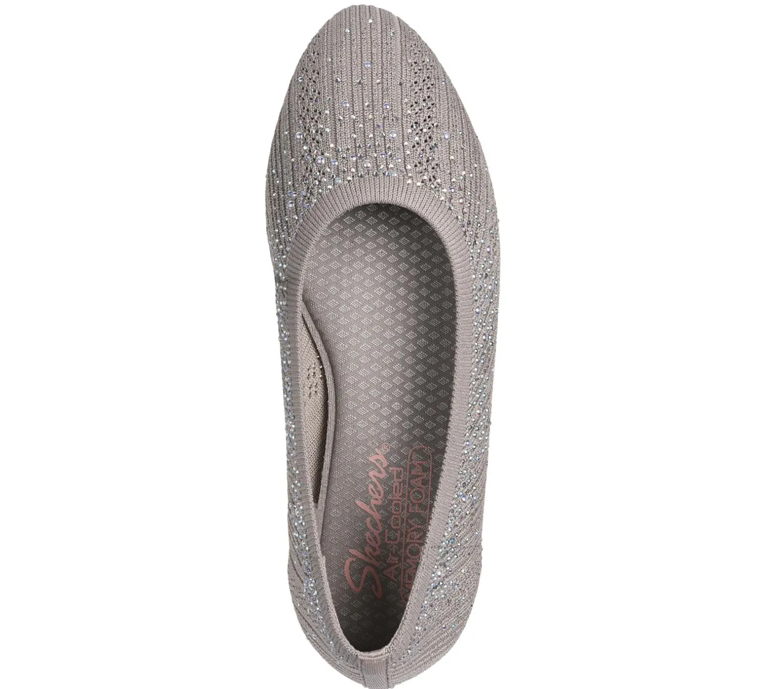 Go green in sparkly eco-friendly style wearing Skechers Cleo® 2.0 – Glitzy Daze. This product’s upper is made with at least 20% recycled content by weight, which helps to reduce waste, this vegan Stretch Fit® skimmer features a sparkle knit upper with pearl and rhinestone embellishments and a cushioned Skechers Air-Cooled Memory Foam® insole. Our Planet Matters®: Good for your feet. Good for the world.®