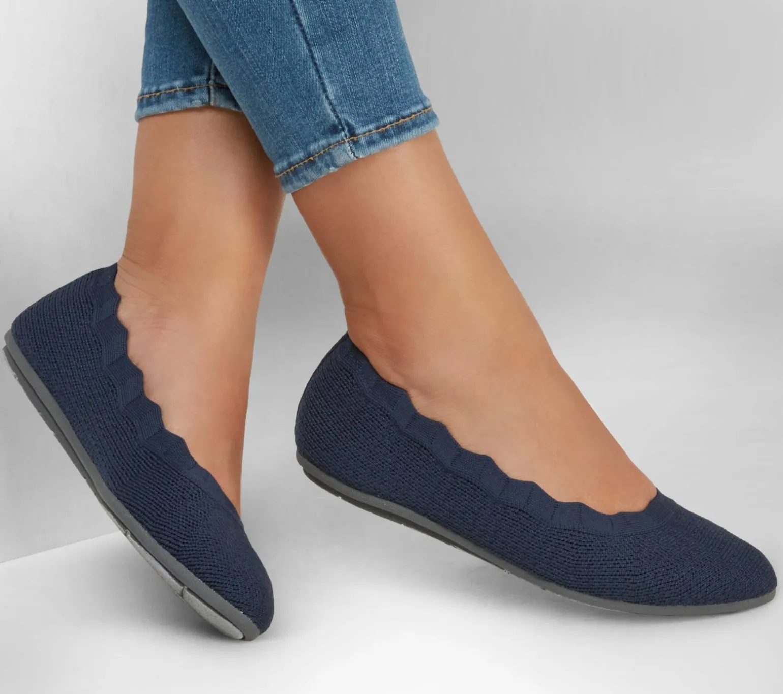 Our Planet Matters. Versatile style is even easier to adore in Skechers Cleo® 2.0 – Love Spell. This Stretch Fit® skimmer design features a woven knit fabric upper with scalloped edge trim and cushioned Air-Cooled Memory Foam® insole. Our Planet Matters®: Good for your feet. Good for the world.®