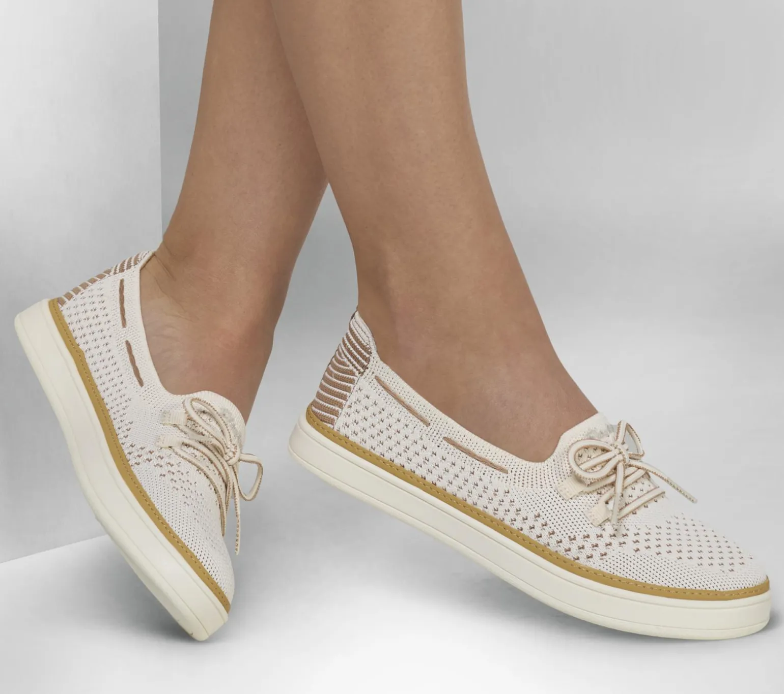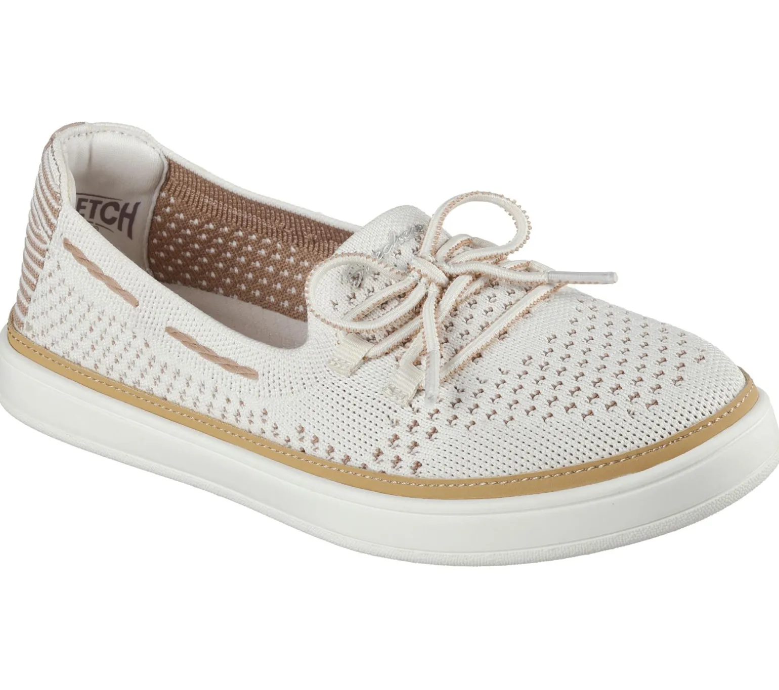 Classic nautical style and comfort combine in Skechers Coastal Drive. This boat style features a laced Stretch Fit® two tone knit upper with a cushioned Skechers Air-Cooled Memory Foam® comfort insole.