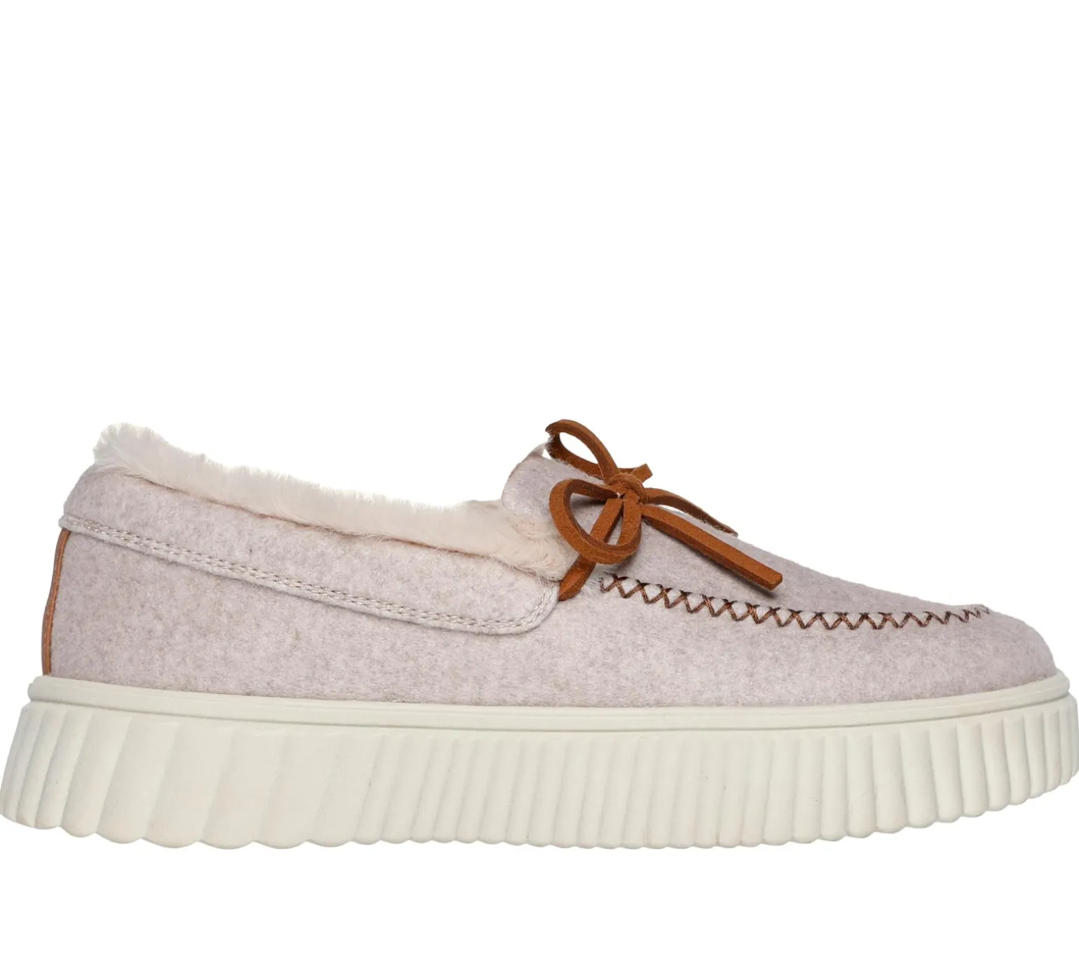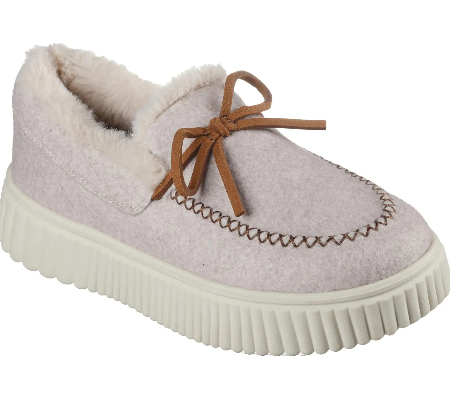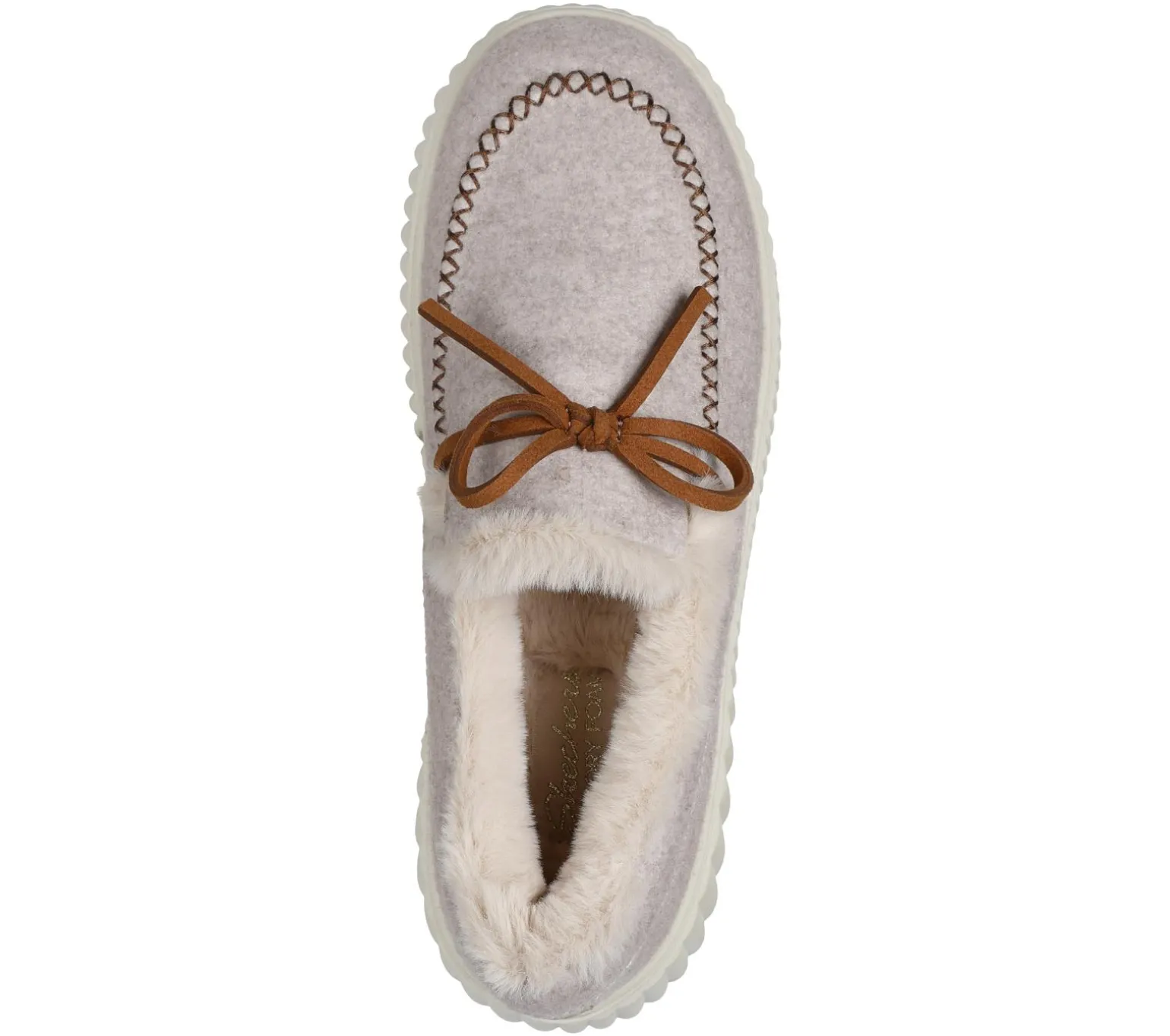 Delve into plush comfort all season long with Skechers Cozy Ojai. This moccasin inspired style features a faux wool upper with a bow front, faux-fur lining, and a cushioned Skechers Memory Foam insole.