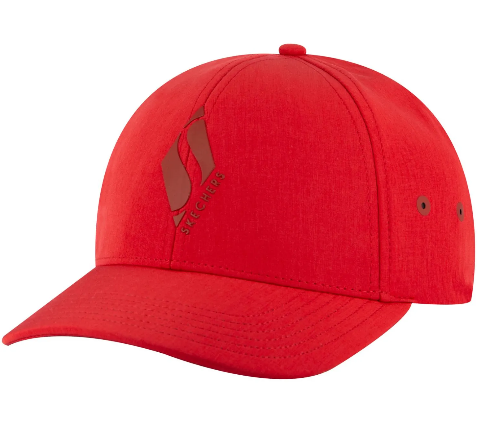 Top off your athletic look with the Skechers Diamond S Stretch Fit Hat. This fitted baseball cap features a solid-color stretch poly blend fabric with a tone on tone Skechers Diamond logo on the front panel.