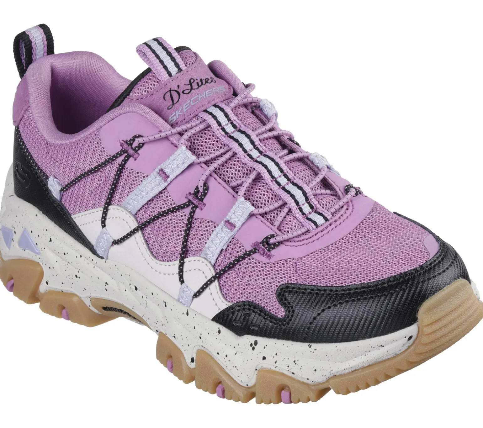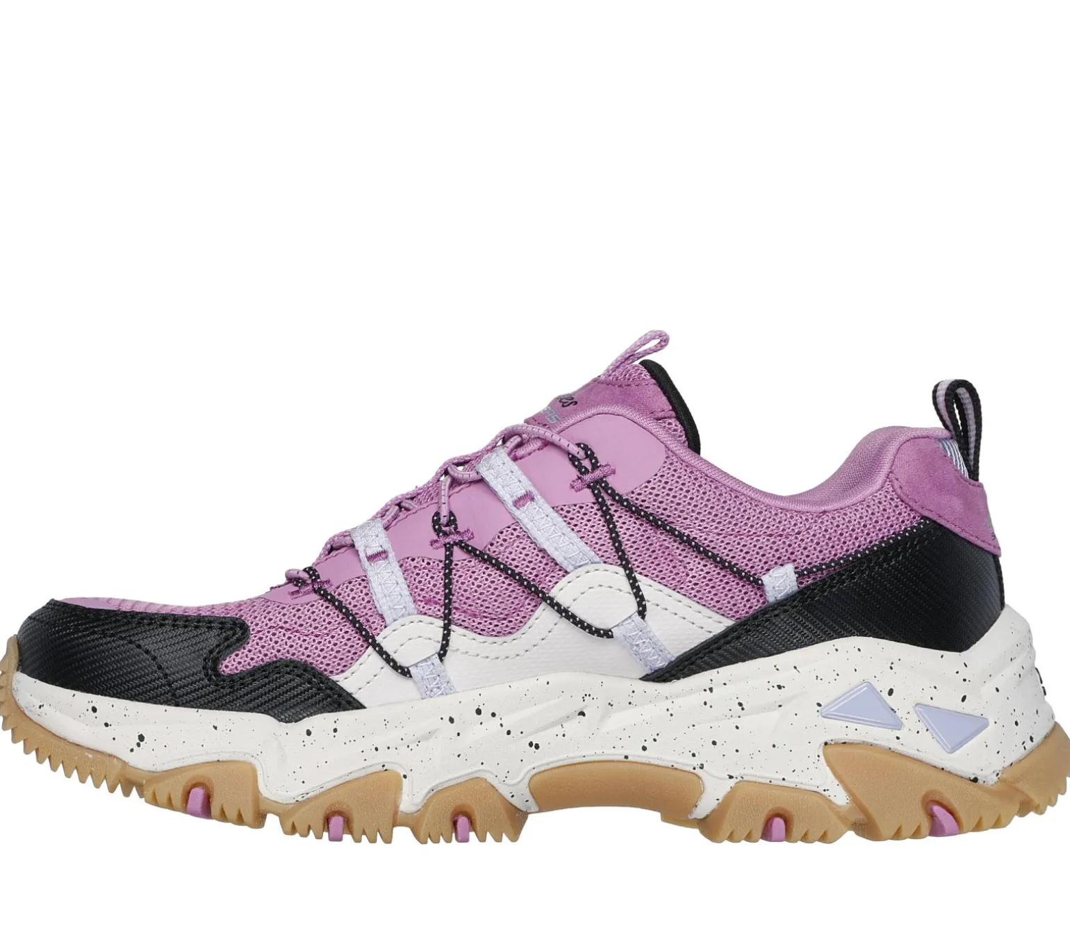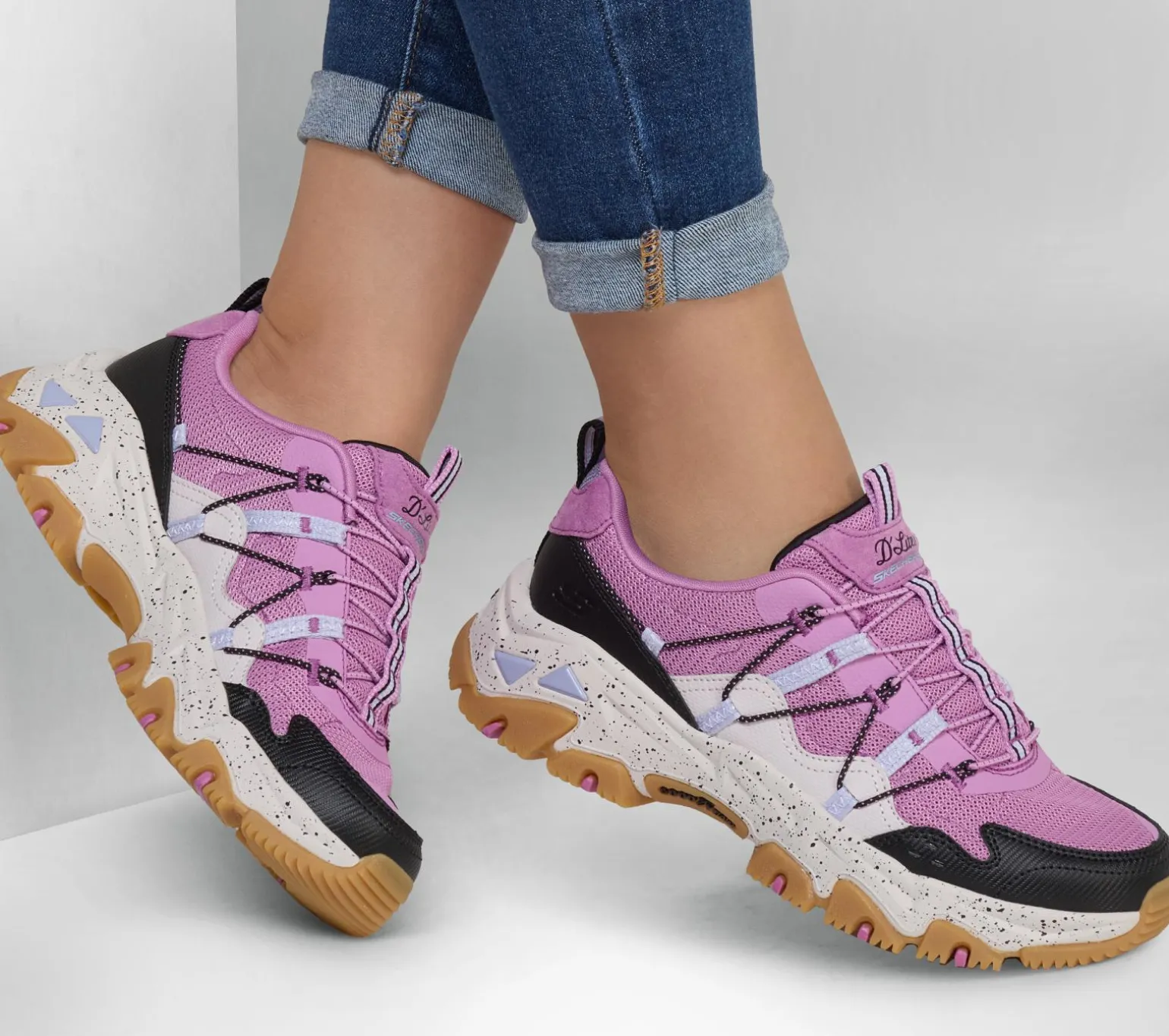 Put your best foot forward in a classic look updated for the trails wearing Skechers D’Lites® Hiker – Hillock. This casual outdoor trail design features a mesh and duraleather overlay upper with toggled stretch laces, hot melt detail, a Skechers Air-Cooled Memory Foam® insole, and a durable Goodyear® Rubber traction outsole.