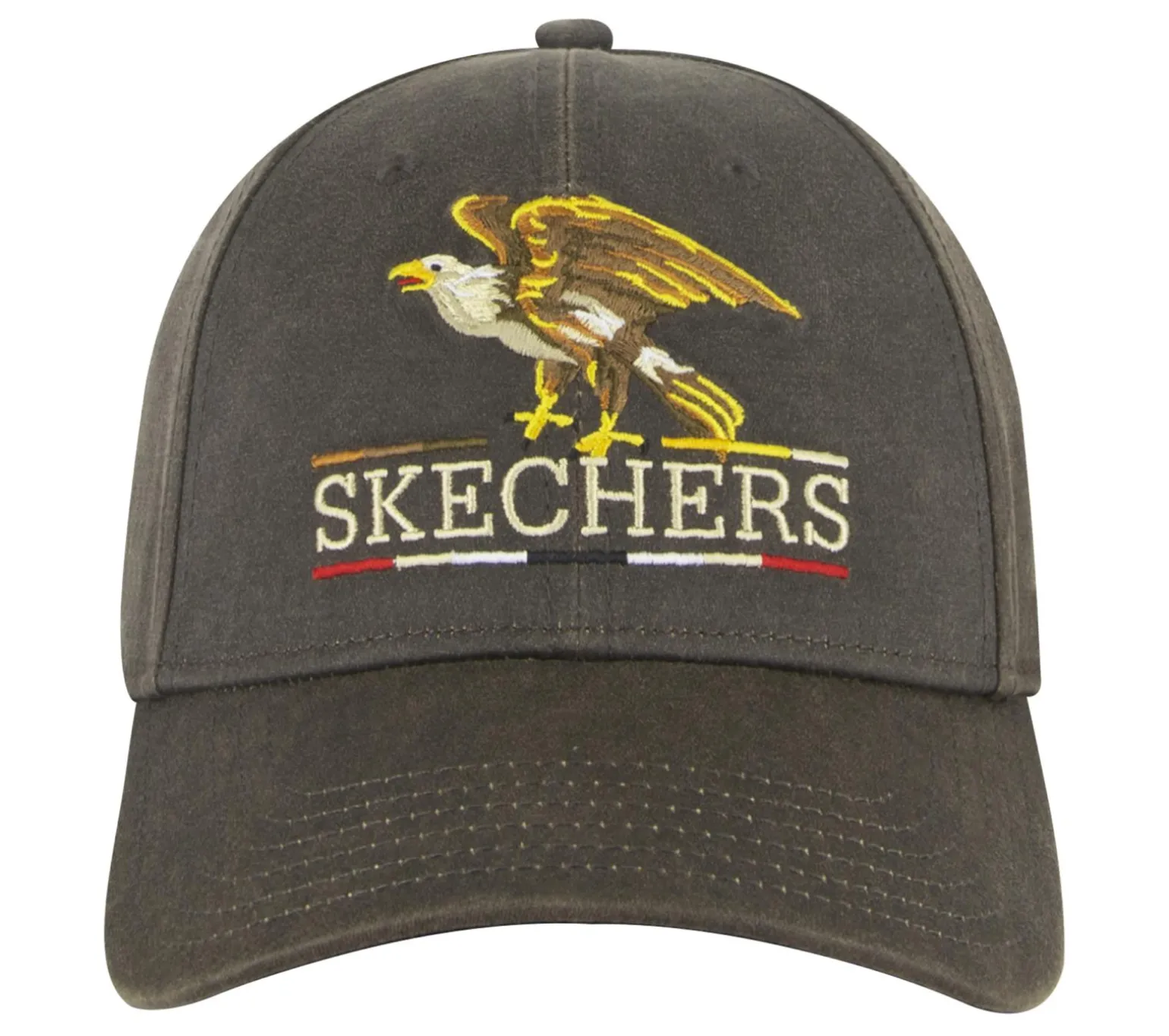 Add some distinctive style to your look with the Skechers Eagle Trucker Hat. Soft canvas fabric in a classic fit athletic cap design with eagle design and Skechers logo detailing.