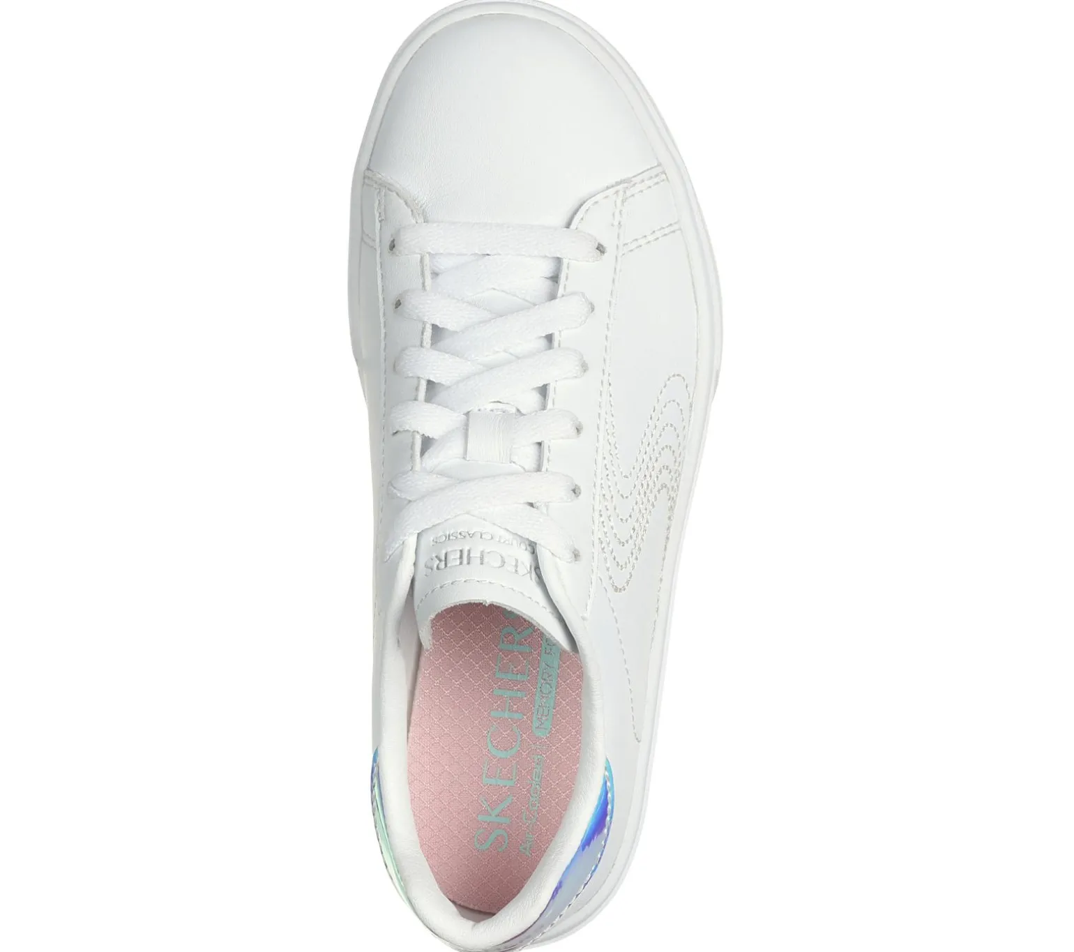 Get a kick of comfort and stylish flair in Skechers Eden LX. This lace-up design features a synthetic duraleather upper with iridescent heel trim, embroidered quarter detailing, plus a cushioned Skechers Air-Cooled Memory Foam® insole