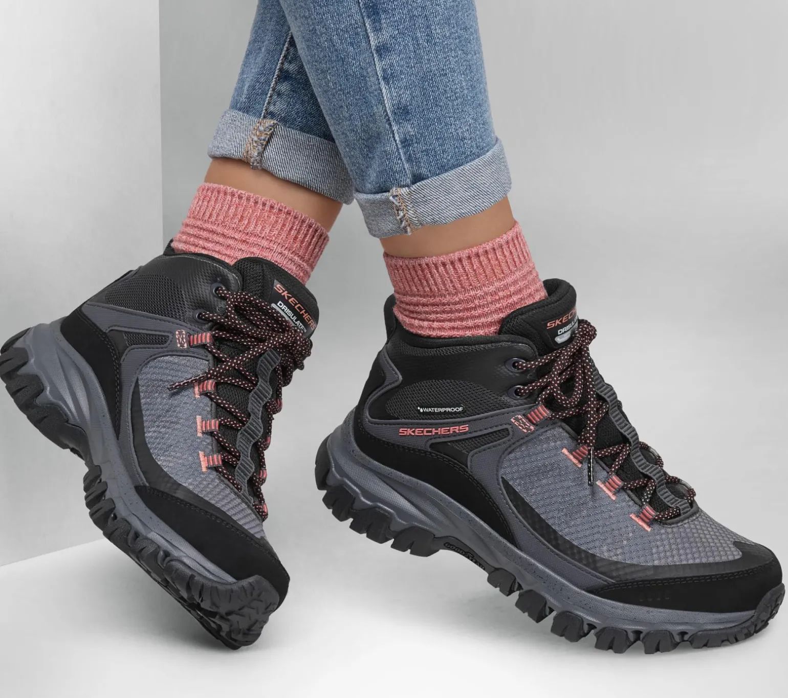 Explore the trails in rugged comfort with Skechers Edgemont – Upper Jump. This anti-slip outdoor trail design features a lace-up waterproof leather, mesh and synthetic upper with 200g 3M Thinsulate lining for added warmth, Skechers Air-Cooled Memory Foam® insole and a reclaimed rubber outsole combined with Goodyear® Rubber Techonolgy.