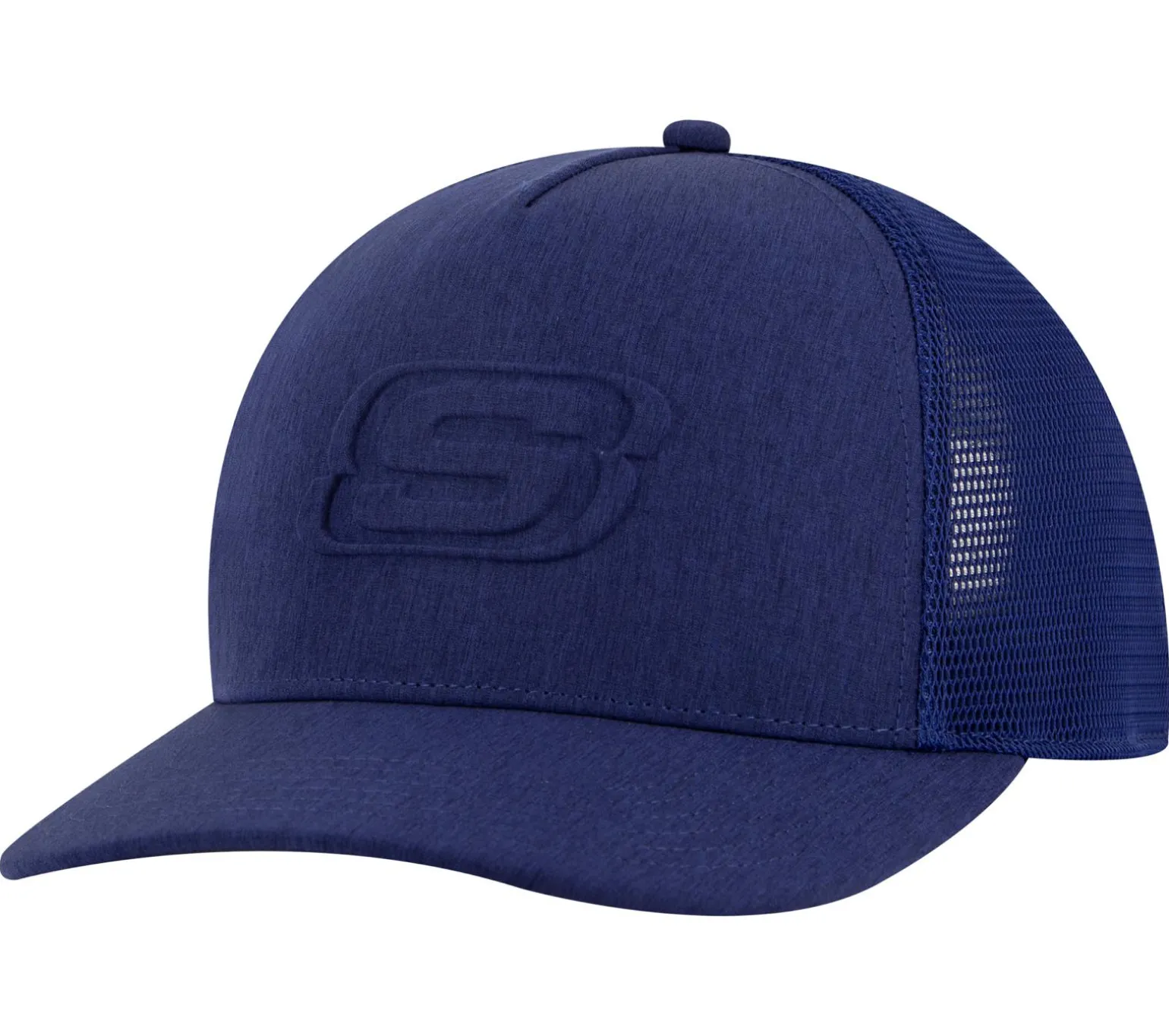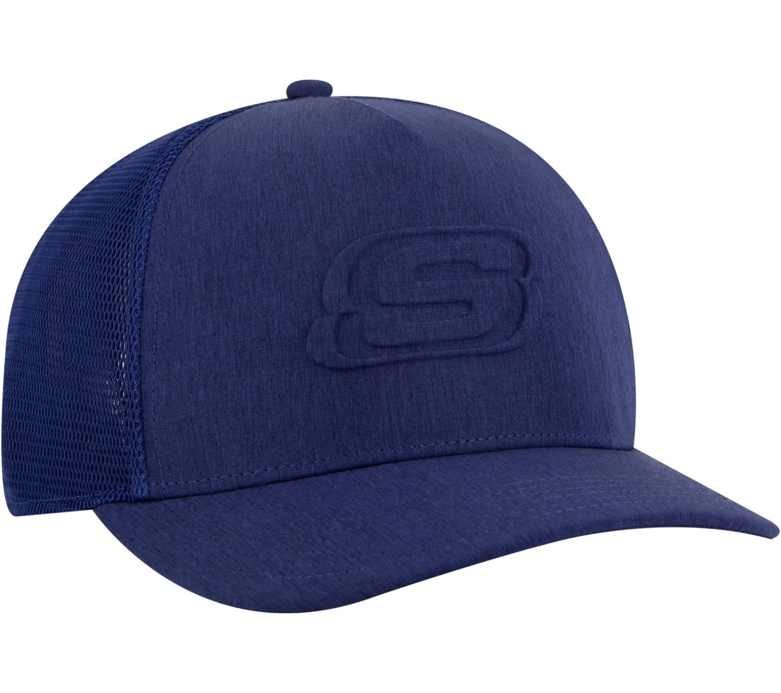Keep it breezy wearing Skechers Embossed Trucker Hat. This mesh trucker cap features a navy blue crown and bill, adjustable snap back closure, and an embossed Skechers® crown logo.