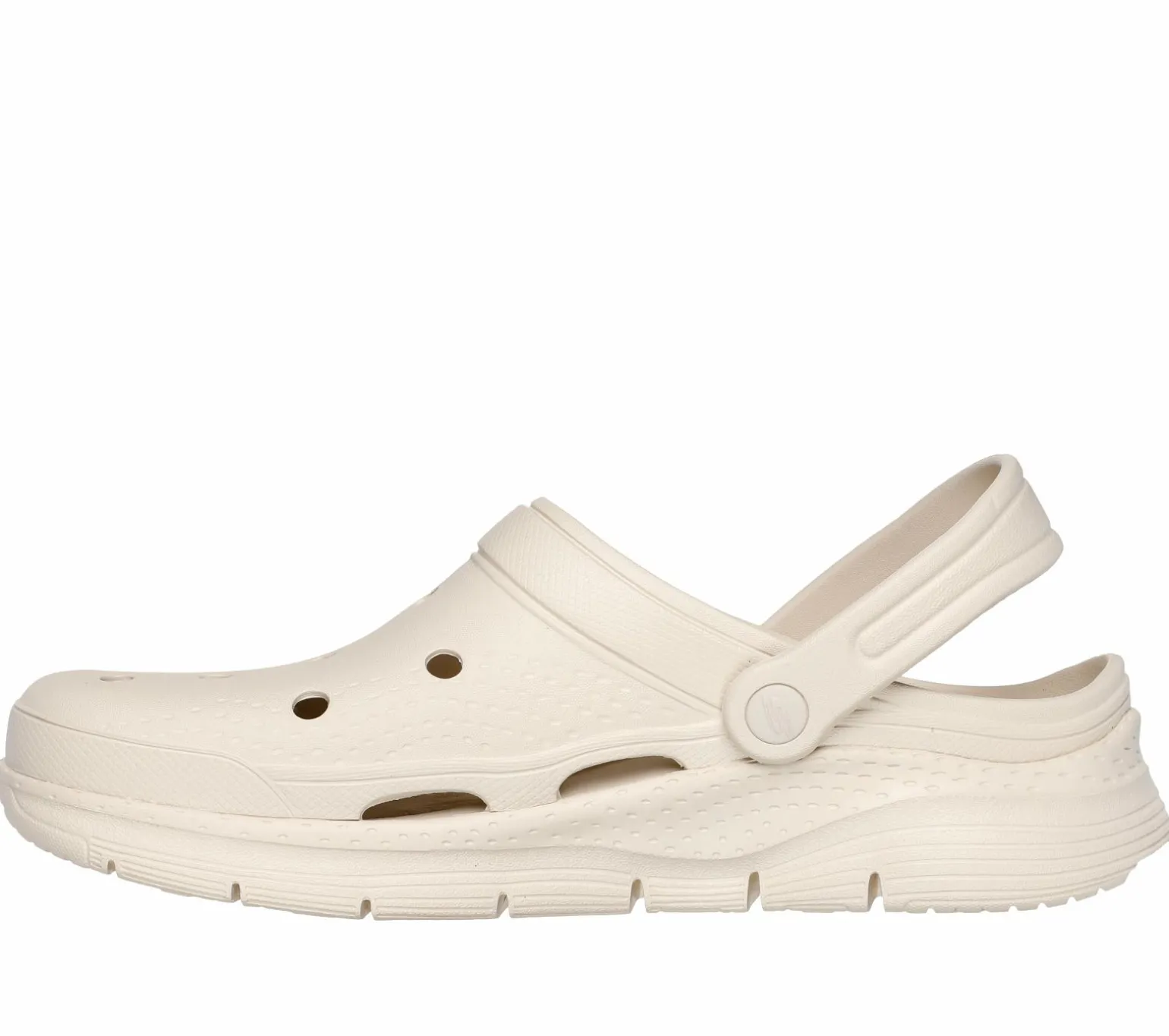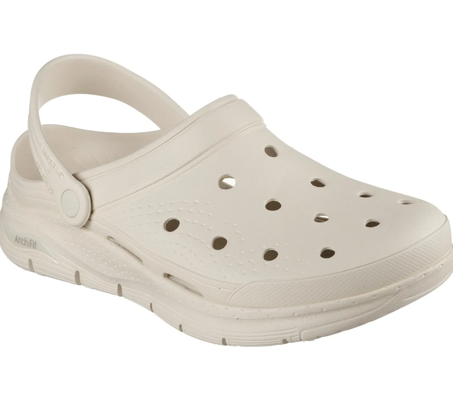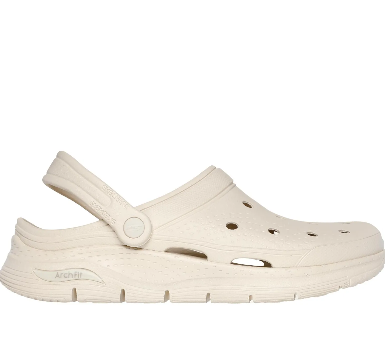 Walk with all-day supportive comfort wearing Skechers Foamies: Arch Fit® – Valiant. This perforated sculpted clog features an Arch Fit® contoured footbed and a dual-density outsole.