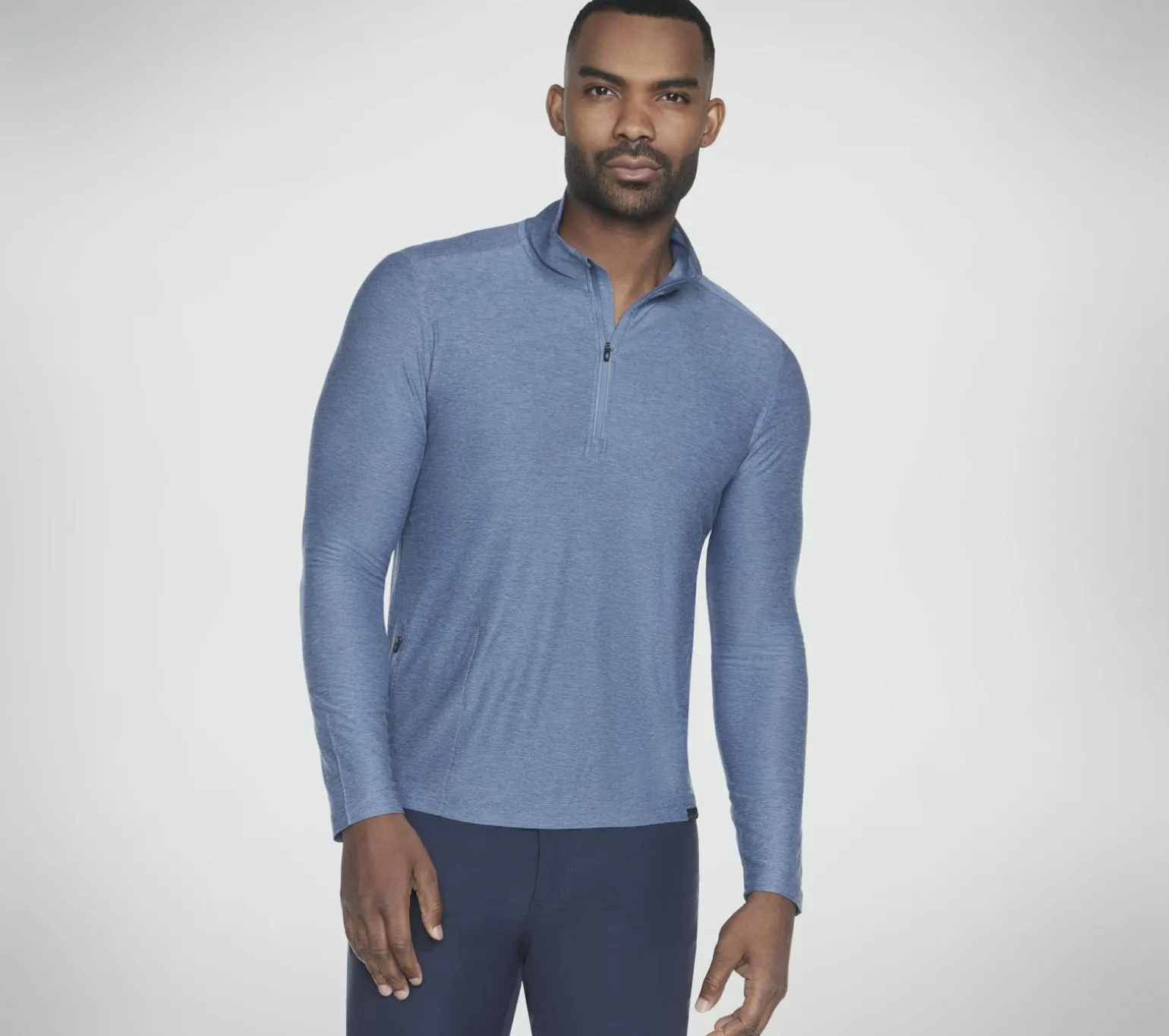 Good-natured comfort and style combine in the essential Skechers GO DRI® All Day 1/4 Zip. Designed with recycled materials, this pullover features a soft lightweight GO DRI® ALL DAY jersey fabric, mock neck with 1/4 zip front, and a front zip pocket.