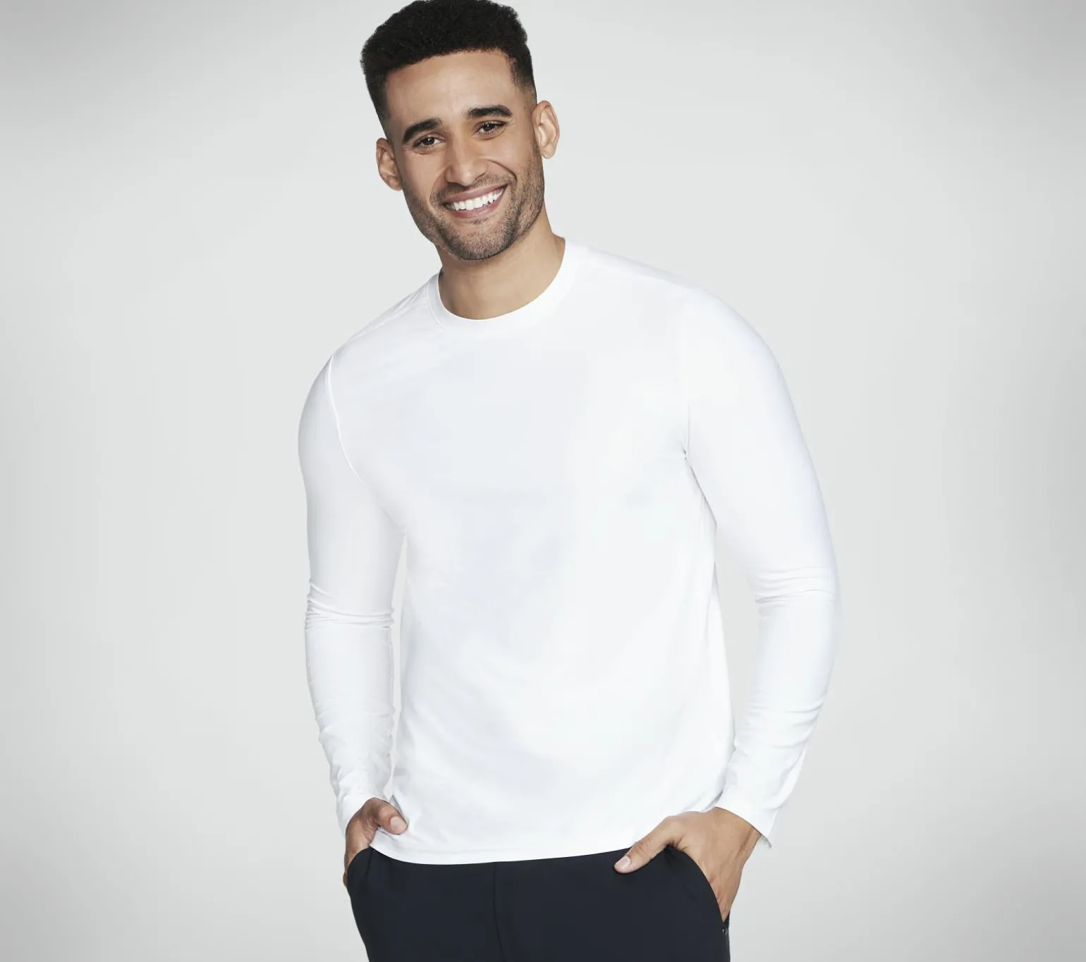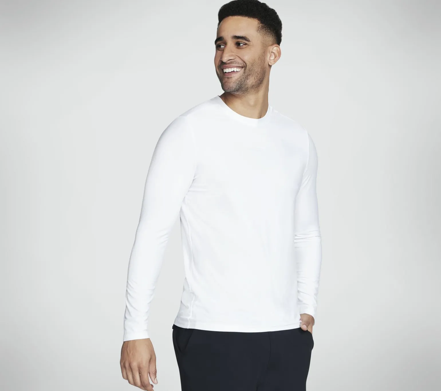Keep your style smooth and your comfort dry wearing Skechers GO DRI® All Day Long Sleeve Tee. This monochromatic long sleeve crewneck features our soft moisture-wicking and quick-drying GO DRI® All Day fabric with flatlock seams for a sleek and polished look.