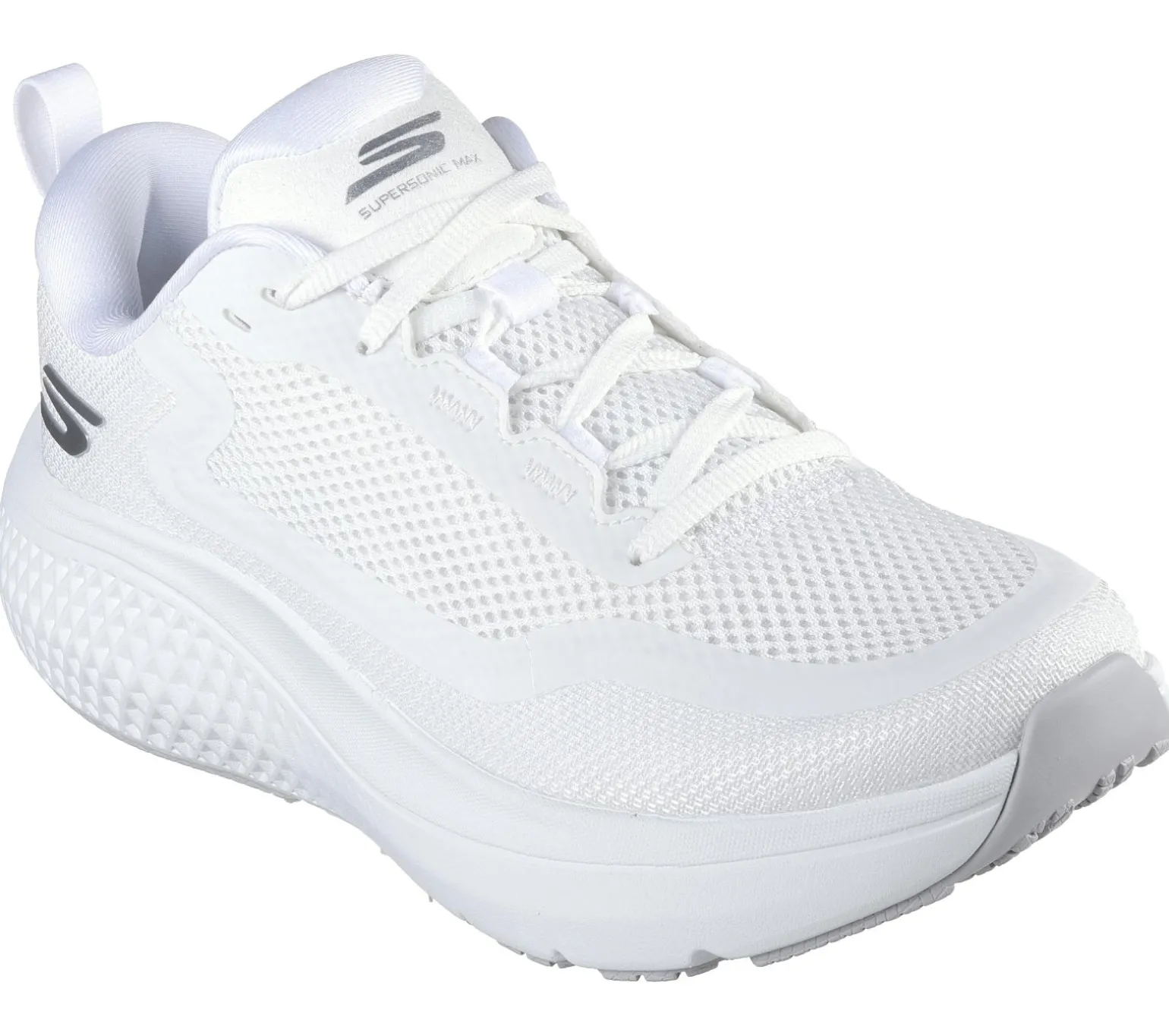 Comfort and running technology combine in Skechers GO RUN® Supersonic Max. This running design features a lightweight athletic mesh upper with lightweight ULTRA GO® cushioning, a Goga Max technology insole, and a Hyper Arc carbon infused forefoot winglet plate.