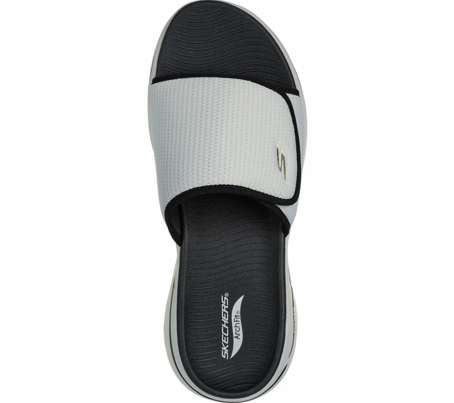 Warm-weather style and supportive comfort combine in Skechers GO WALK® Arch Fit® Sandal – Manta Ray Bay. This slide sandal has been granted the APMA Seal of Acceptance. Featuring an adjustable mesh band upper with lightweight ULTRA GO® cushioning and a contoured Goga Mat® footbed with podiatrist-certified Arch Fit® support.