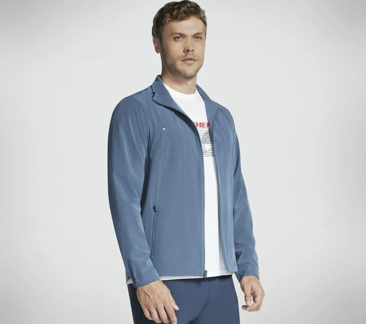 Enjoy lightweight performance comfort wearing Skechers GO WALK Everywhere Full Zip Jacket. This mock neck design is made from our 4-way stretch SKECHWEAVE fabric and features zipped hand pockets and an interior chest pocket with branded rivet.