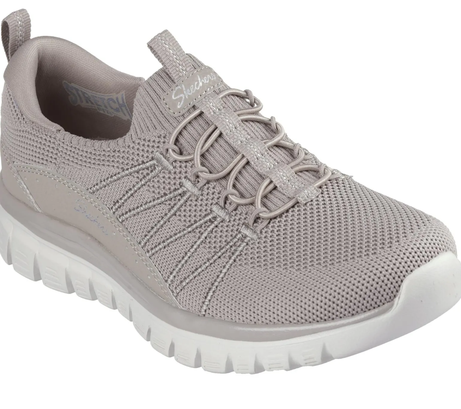 Grace your feet with easy-wearing comfort in Skechers Graceful – Picture Perfect. This stretch-laced vegan style features a Stretch Fit® engineered knit upper with synthetic overlays and a cushioned Skechers Air-Cooled Memory Foam® insole.