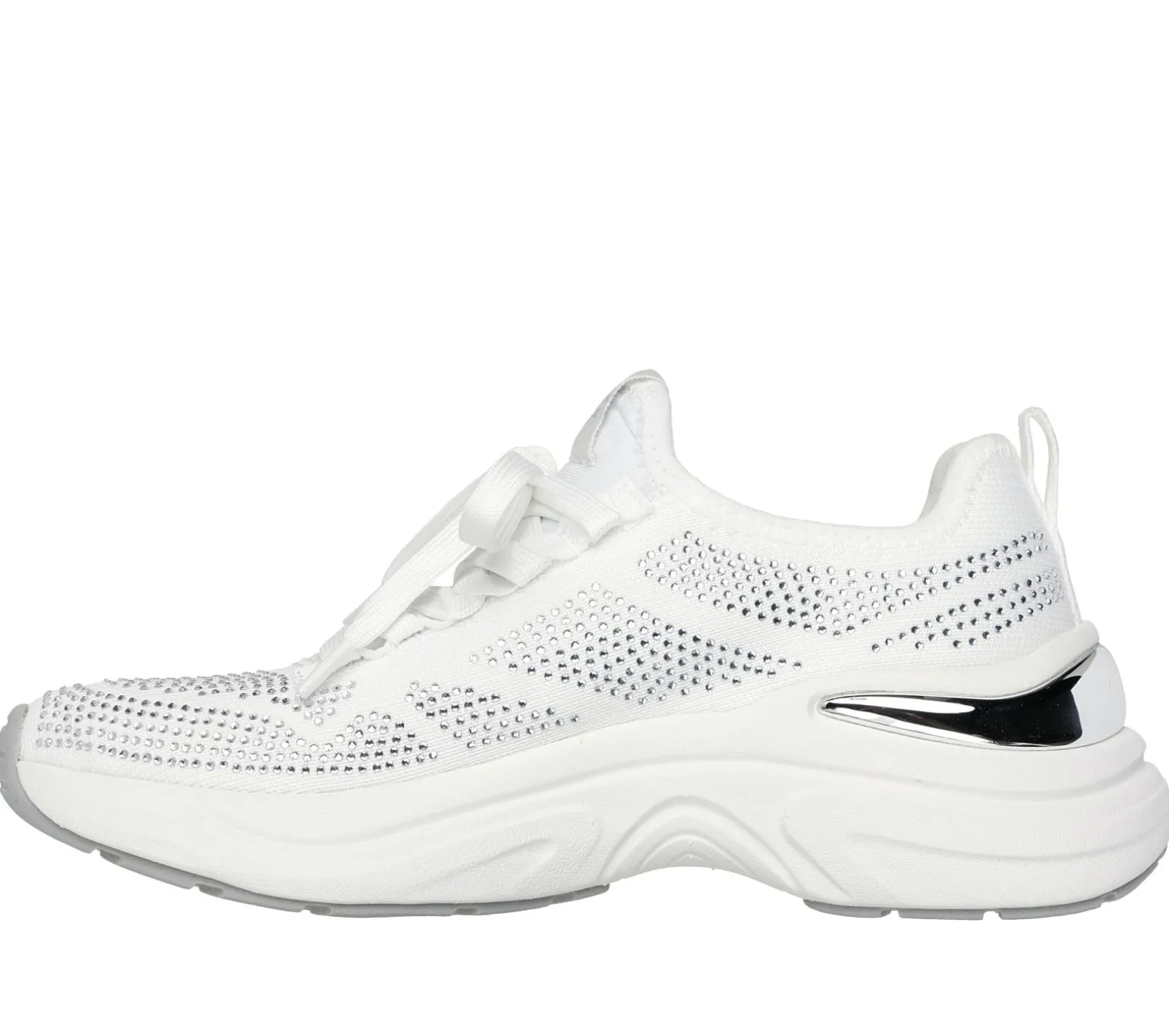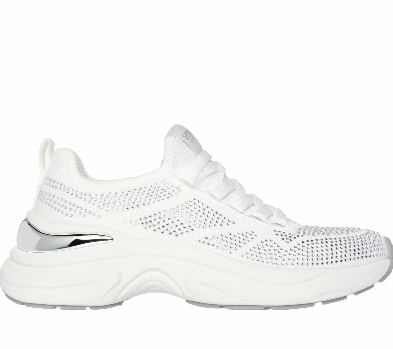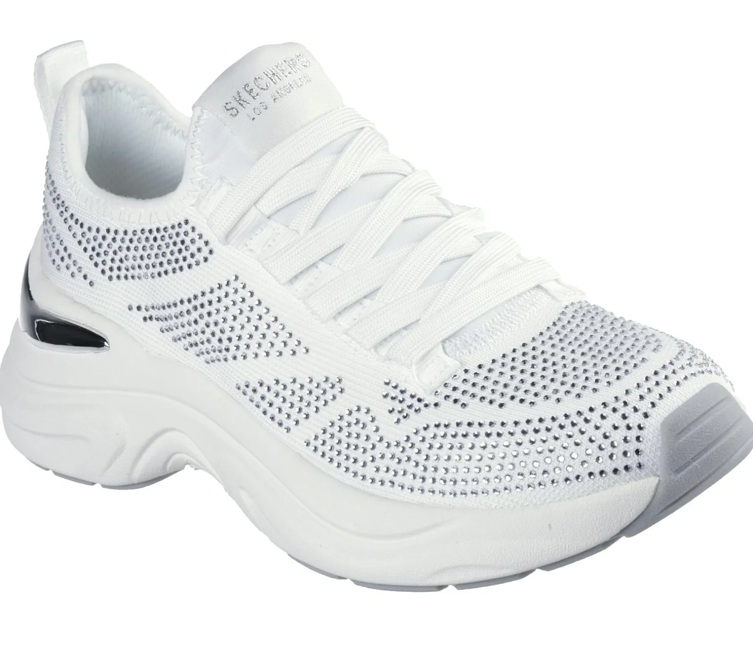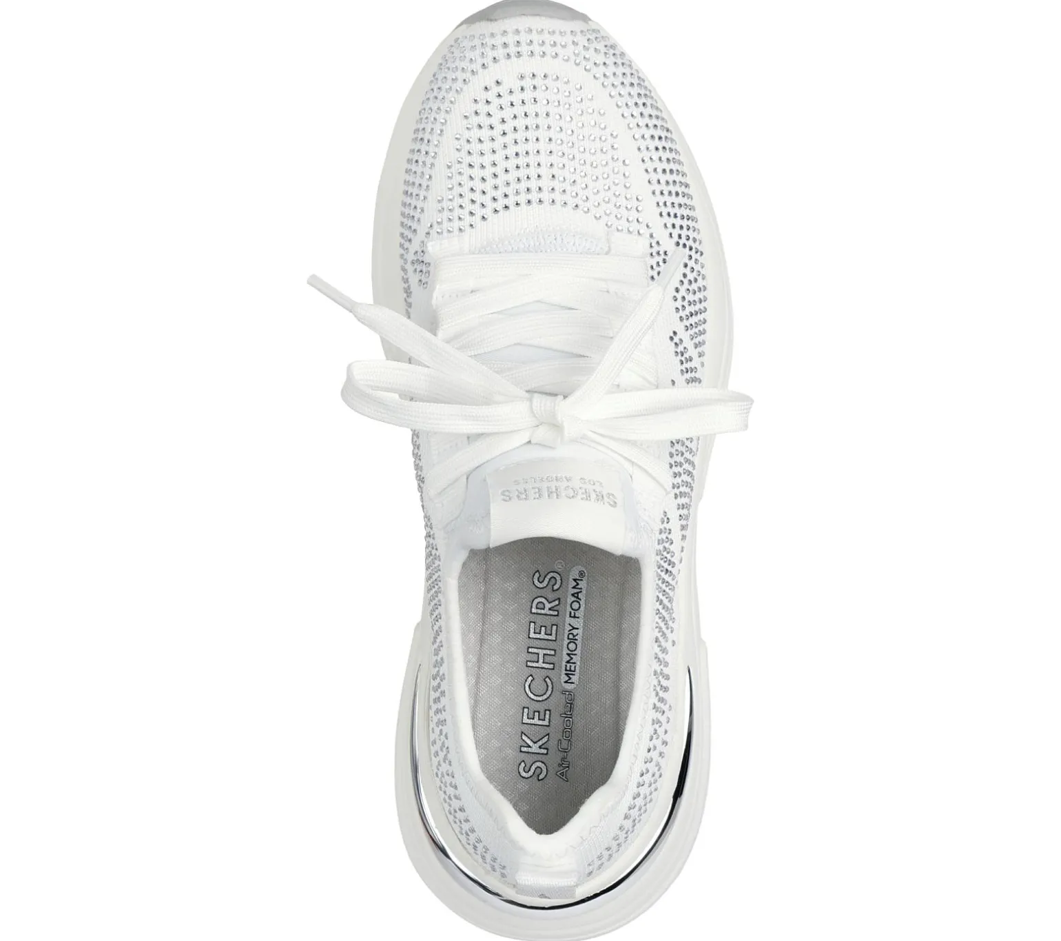 A new age classic combines with a splash of pizazz in Skechers Street Hazel – Lustrous Sheen. This fashion sneaker features a rhinestone-covered knit upper with deco laces, metallic heel clip, and a cushioned Skechers Air-Cooled Memory Foam® insole.