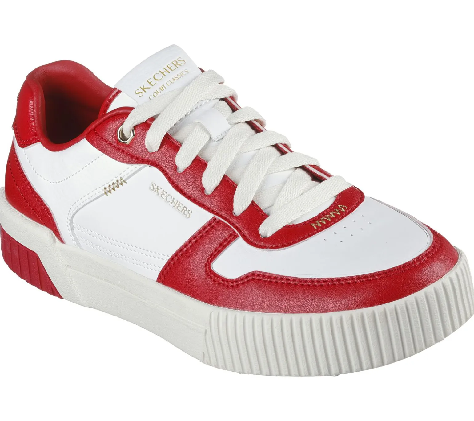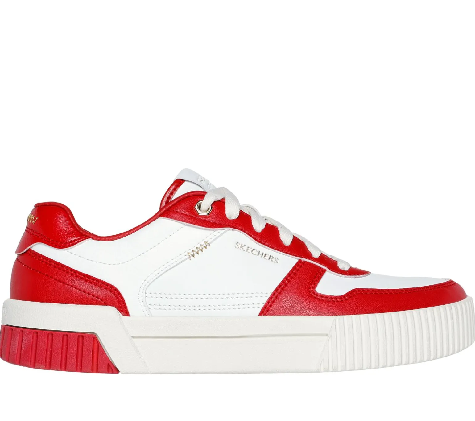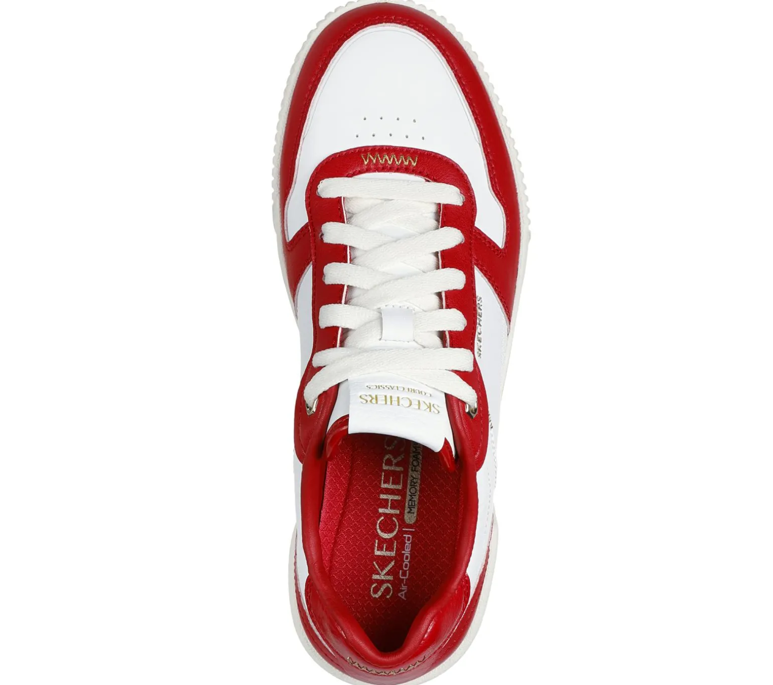 Enjoy classic court-style looks with Skechers Jade – Best In Class. This low-top lace-up features a duraleather upper with gold accented overlays and a cushioned Skechers Air-Cooled Memory Foam® comfort insole.