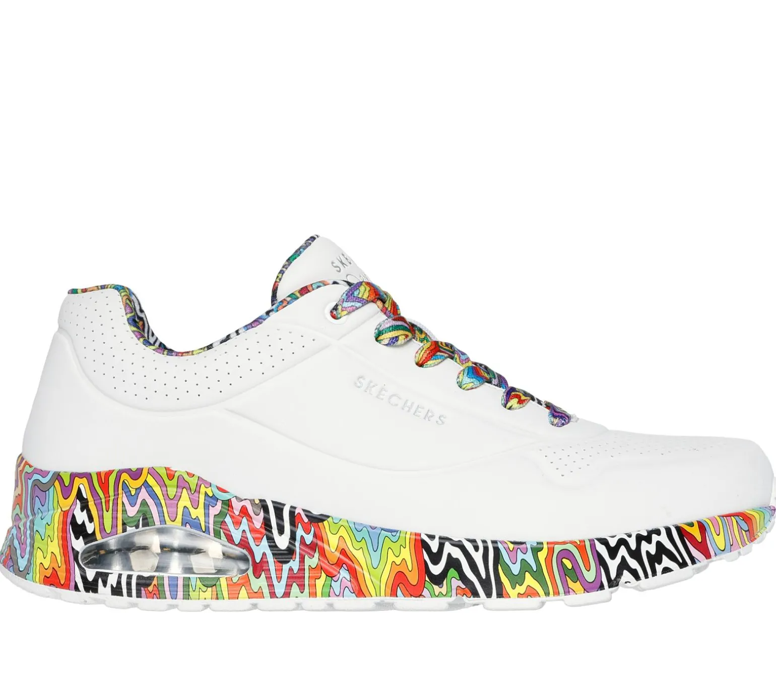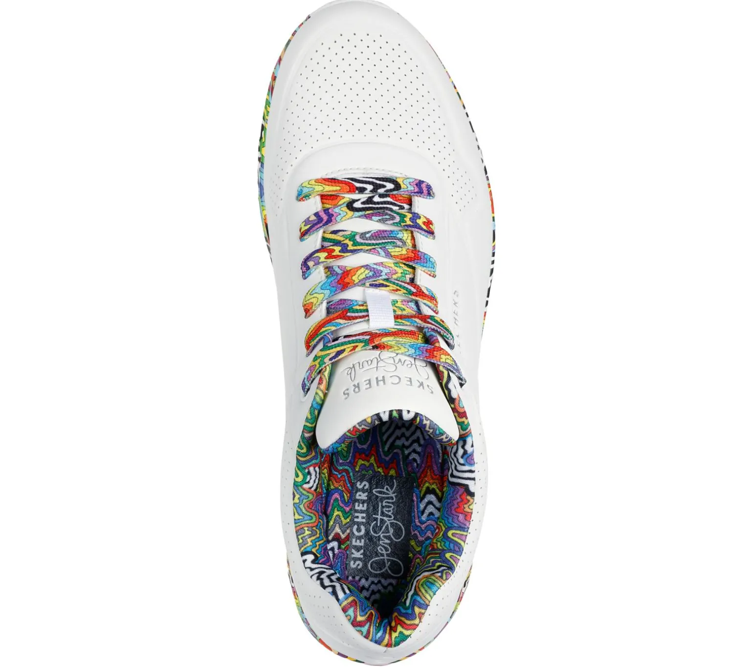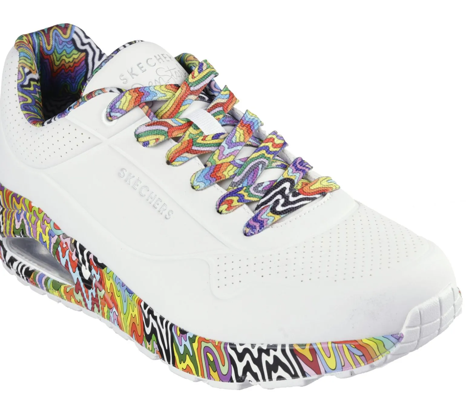 Jen Stark brings her hypnotic and captivating colorful patterns to Skechers Street in this creative collaboration. The eye-catching Skechers Street x Jen Stark: Uno – Stark Mini Drip features a smooth durabuck upper with the artist’s signature drip design printed on the midsole, lining, and laces. This design is complete with a Skechers Air-Cooled Memory Foam® insole, and visible Skech-Air® airbag midsole.