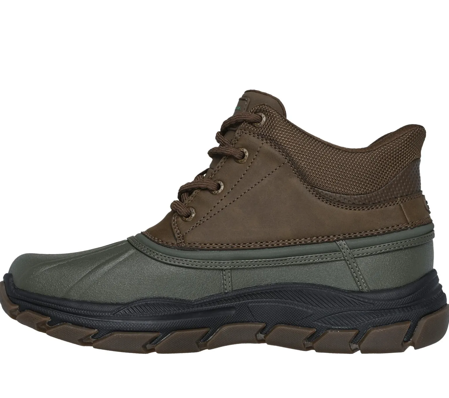 Stay supported in all-day comfort with Skechers Hands Free Slip-ins® x John Deere: Respected – Swamper. This Relaxed Fit® duck boot features a leather and synthetic upper with a laced slip-on style, Skechers Air-Cooled Memory Foam® insole, and an anti-slip Goodyear® Rubber Outsole.