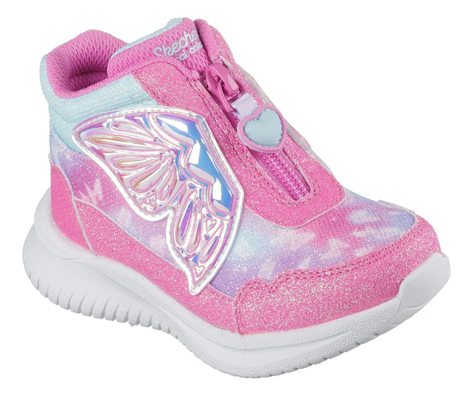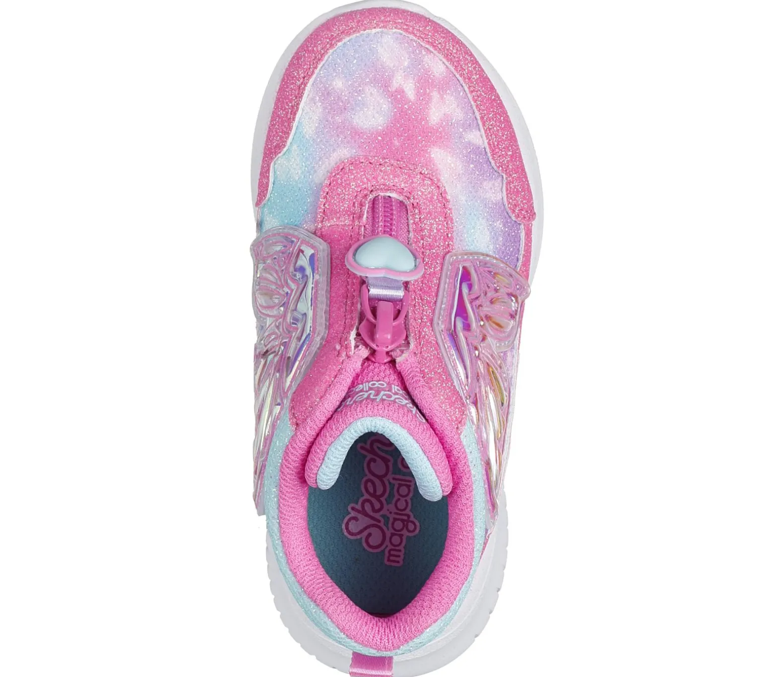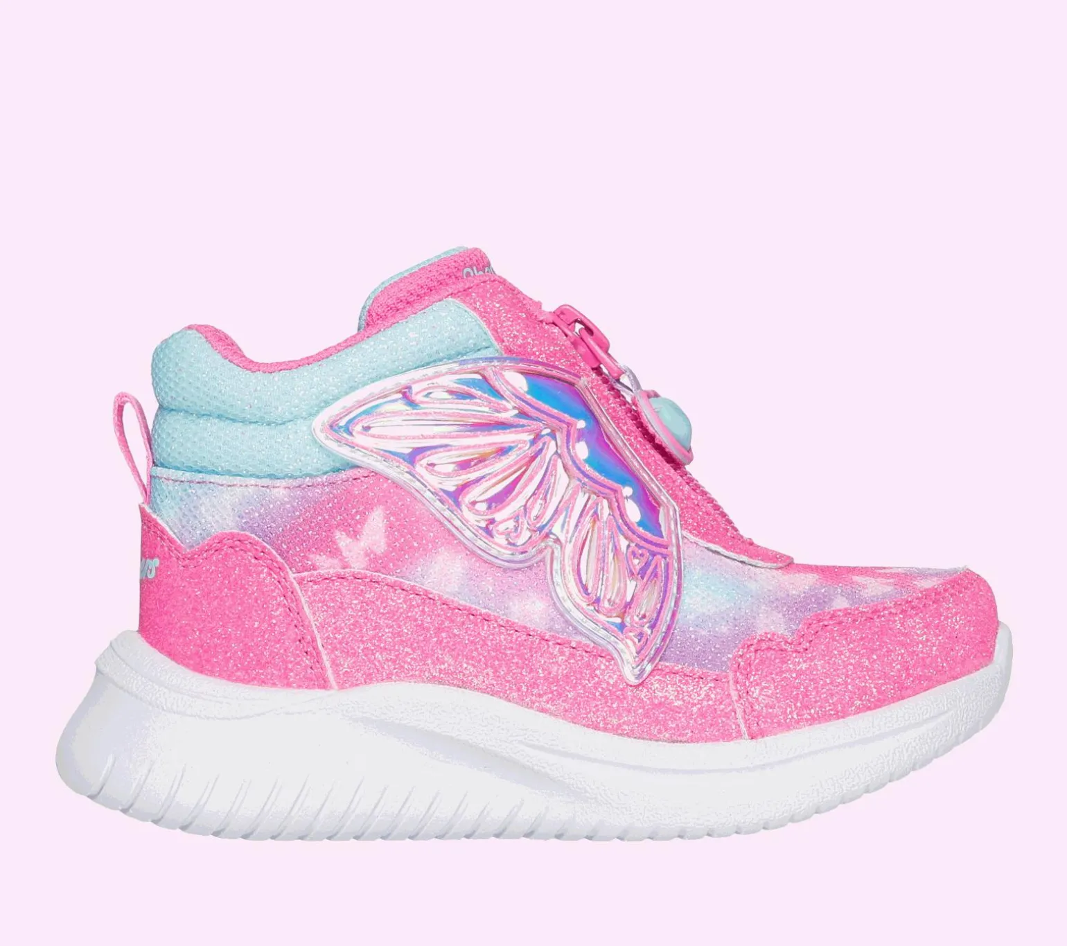 They will sparkle, shine, and look oh-so bright wearing Skechers Dream Racer – Butterfly Express. This lighted butterfly-themed sneaker boot from our Magical Collection® features a sparkle mesh upper with glittery overlays, a zippered front with Skechers Adaptive Closure, and a cushioned comfort insole.