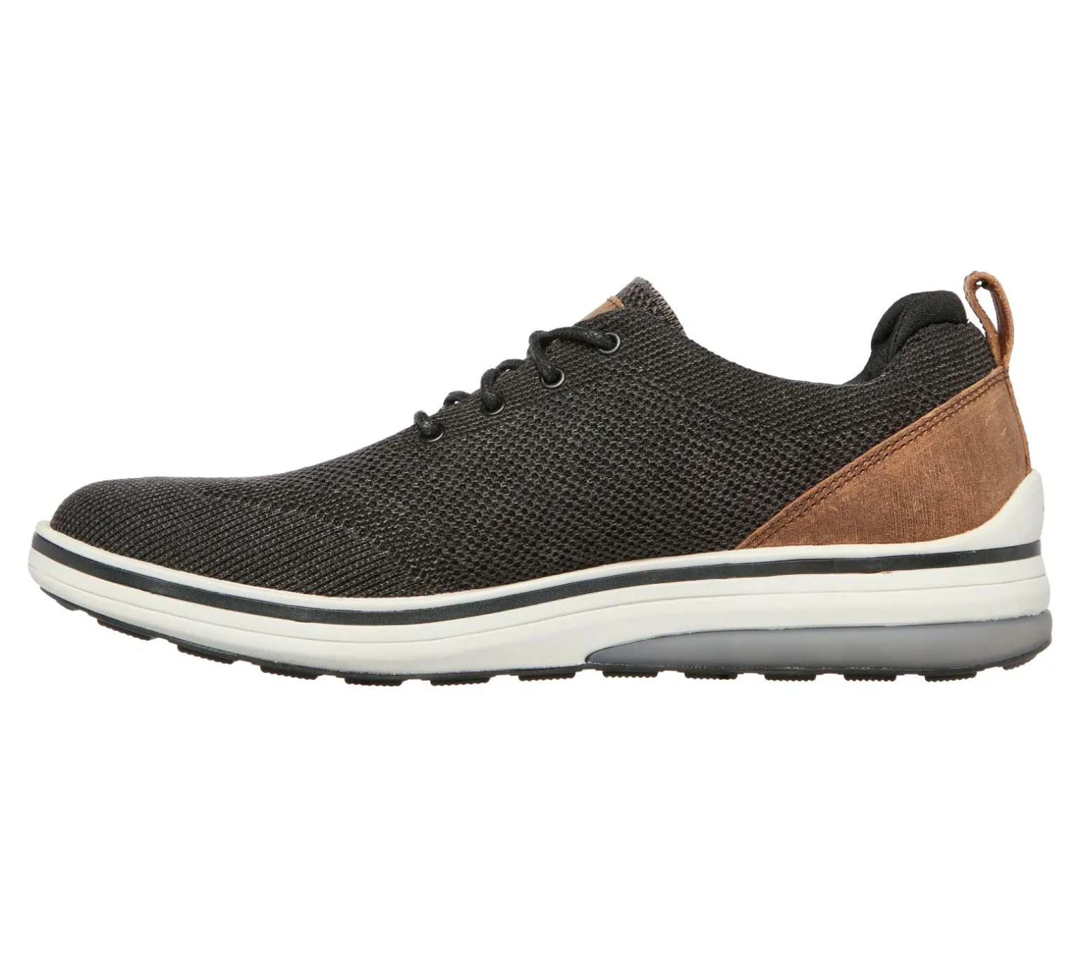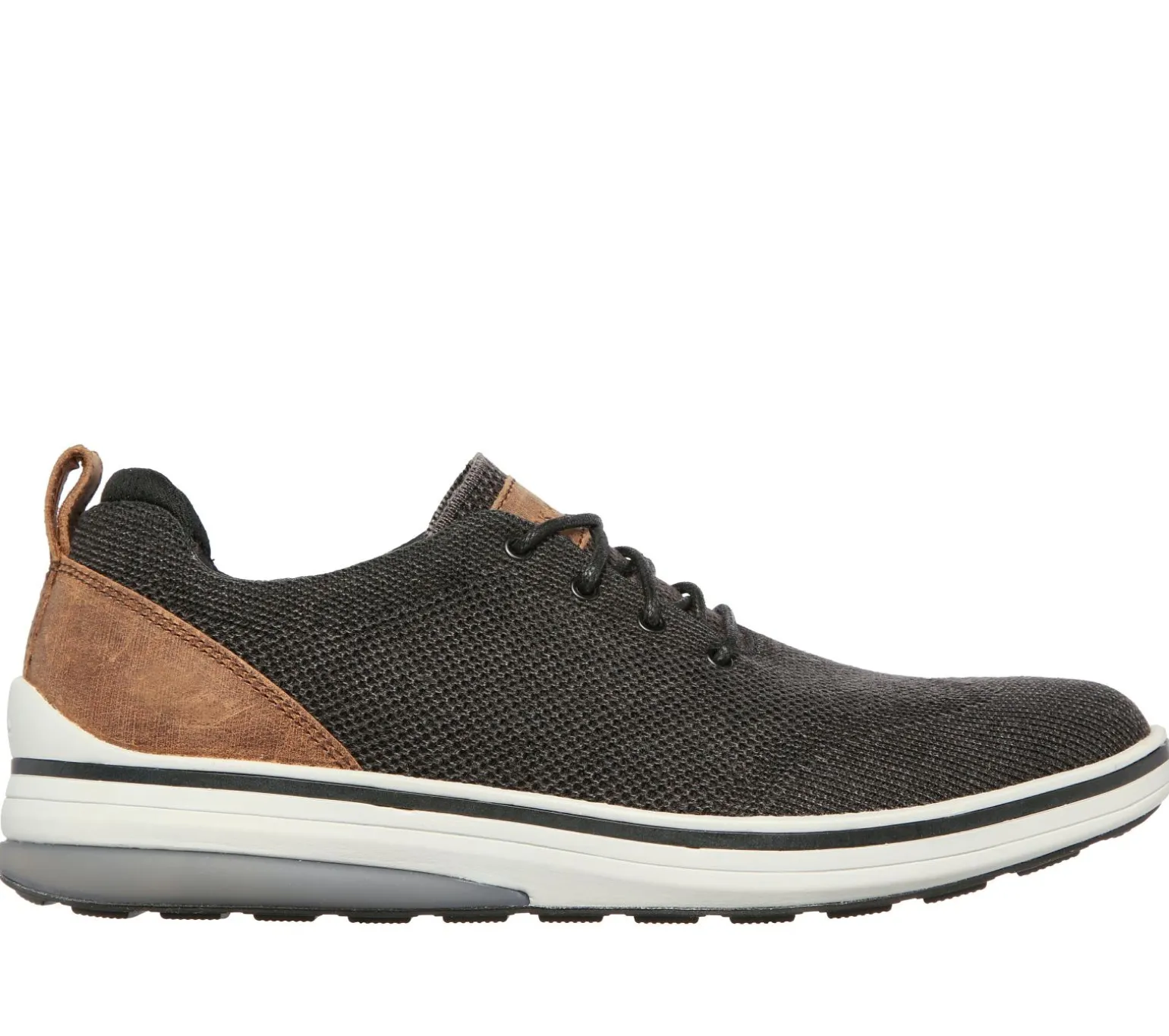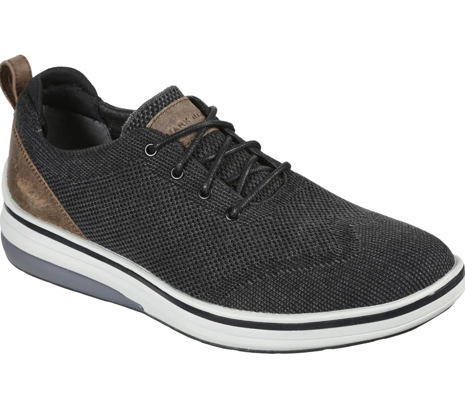 Comfort and elevated style comes naturally when wearing Mark Nason® Skechers: Casual Cell Wrap – Robinson. This lace-up dress casual wing-tip Oxford features a water-resistant treated soft woven washed-finish knit fabric and smooth leather upper with a cushioned Memory Foam Lux insole.
