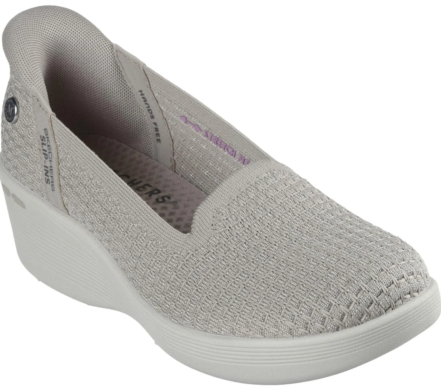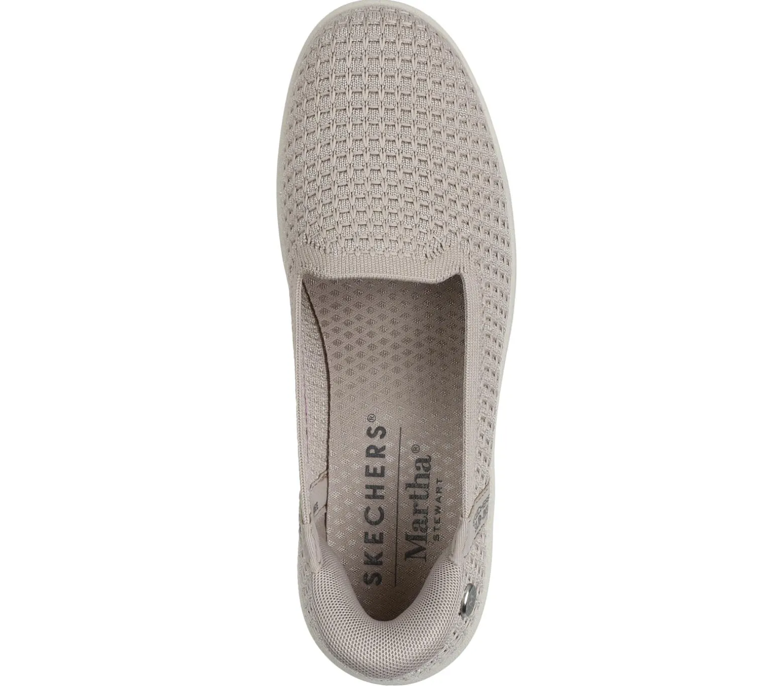 Celebrated lifestyle expert, Martha Stewart, delivers her one-of-a-kind touch to Skechers in this spirited collaboration. Heighten your steps in style wearing Martha Stewart x Skechers Hands Free Slip-ins®: Pier-Lite – Daydream Stroll. Designed with our exclusive Heel Pillow, this casual vegan wedge features a Skechers Hands Free Slip-ins® molded heel panel, Stretch Fit® engineered knit upper, and a Skechers Air-Cooled Memory Foam® cushioned comfort insole.