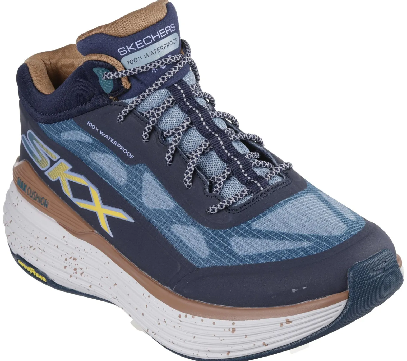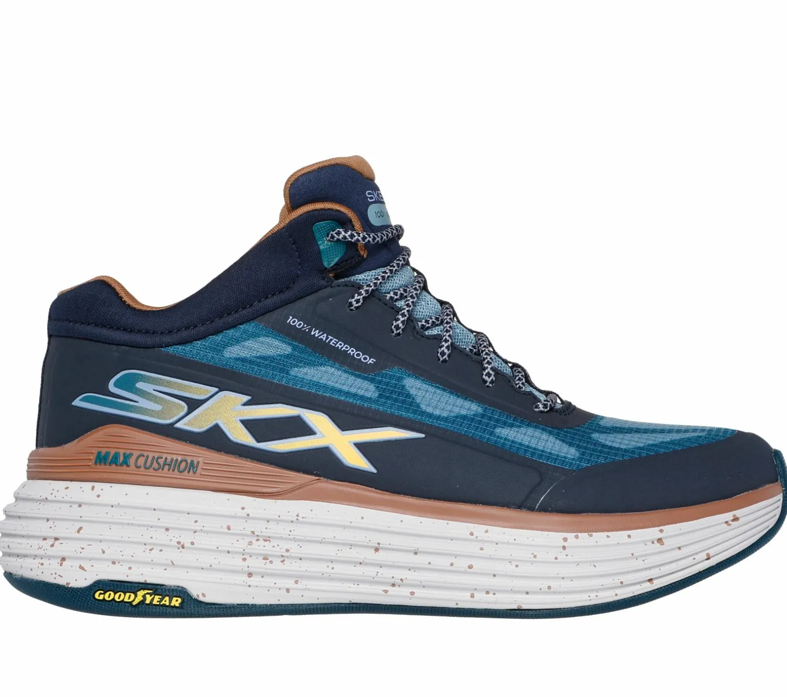 Take on your cardio sessions rain or shine wearing Skechers Max Cushioning® Suspension – Terrace. This 100% waterproof performance mid-top features a mono mesh upper with round laces, a Skechers Air-Cooled Goga Mat insole, Skechers Max Cushioning® platform midsole, plus a Goodyear® Anti-slip Rubber Outsole.