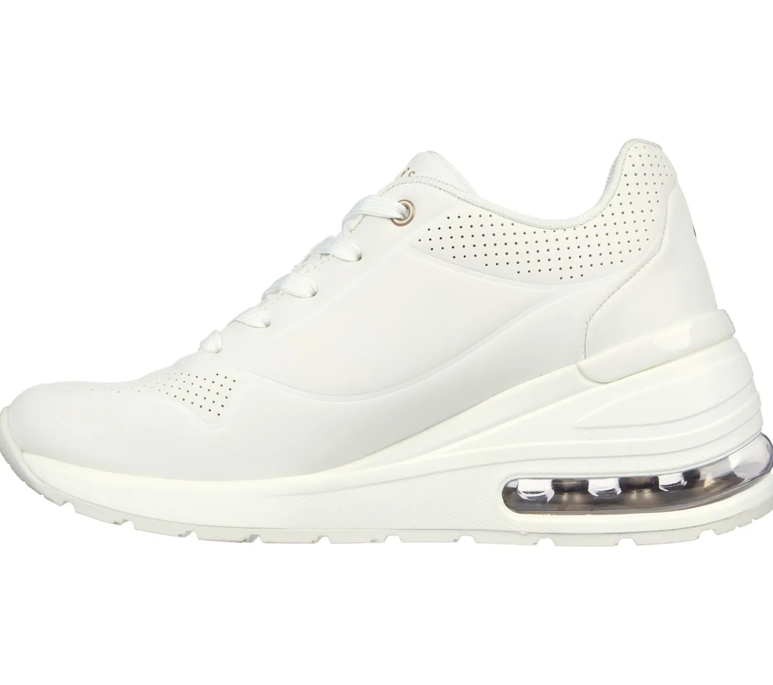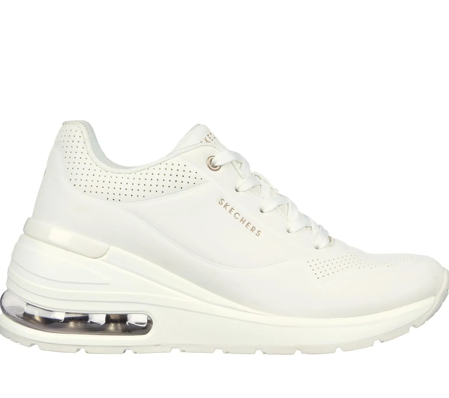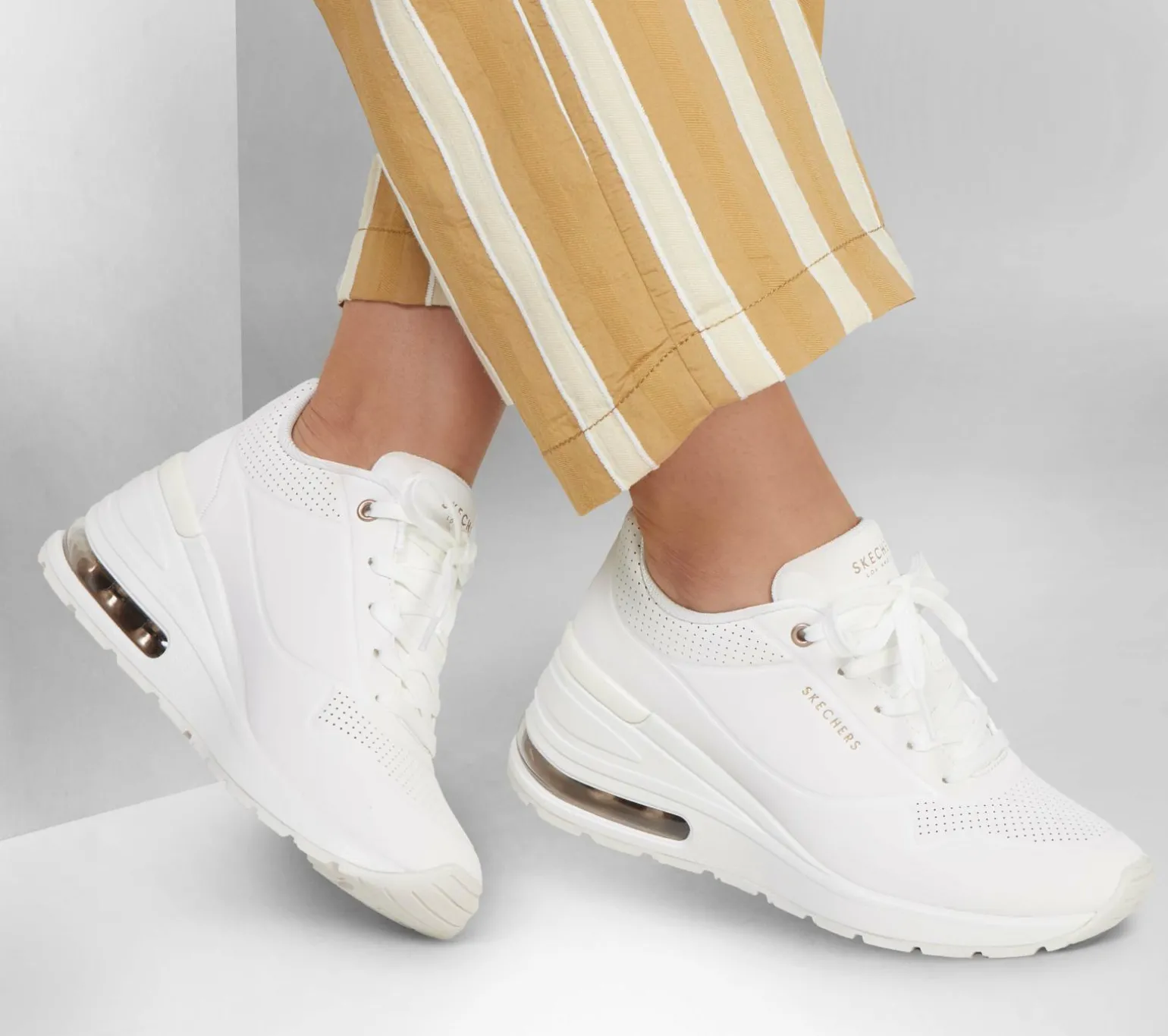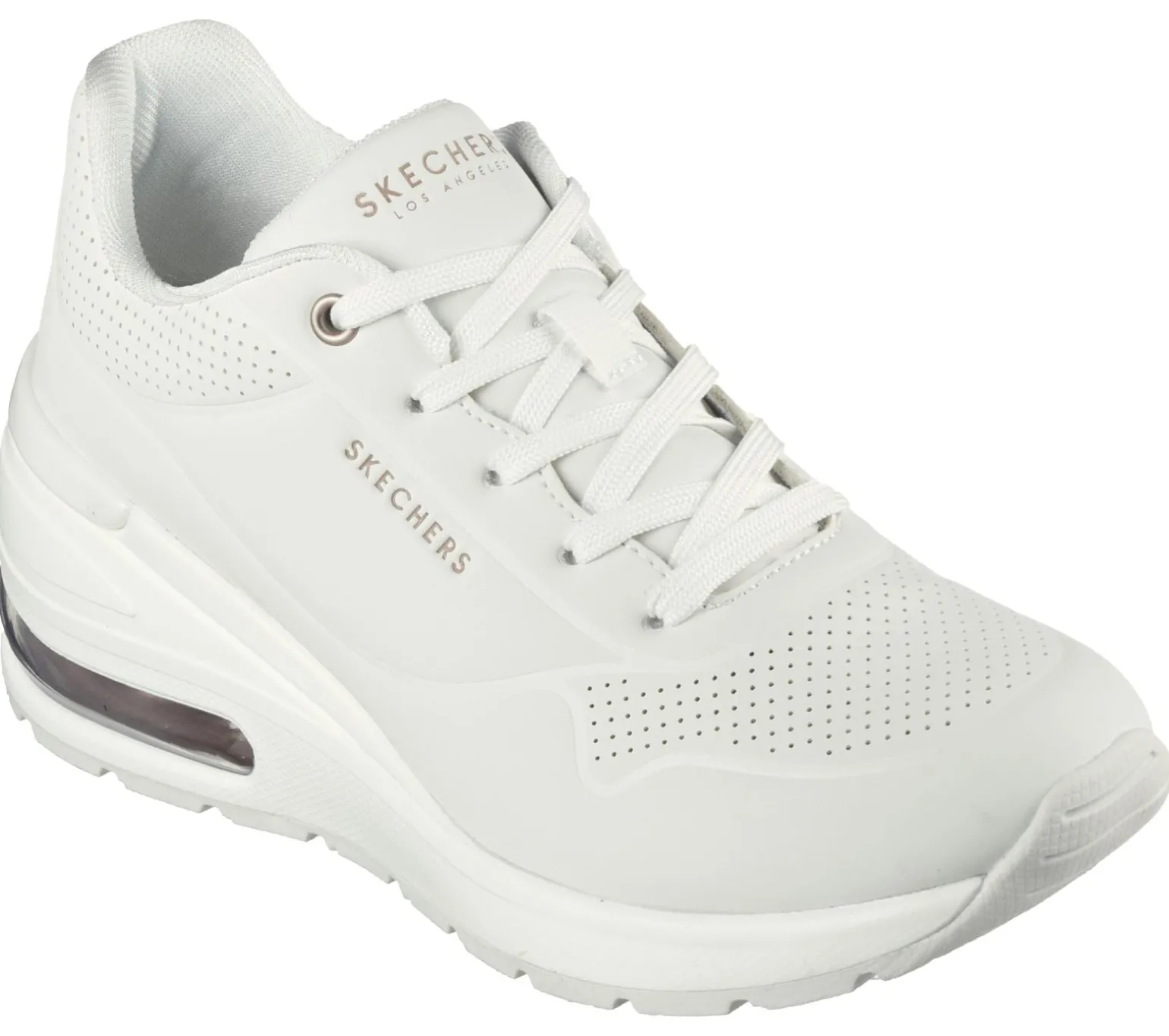Boost your style with airy comfort in Skechers Street Million Air – Elevated Air. This lace-up wedge fashion sneaker features a synthetic durabuck upper with a Skechers Air-Cooled Memory Foam® insole and a visible Skech-Air® midsole.