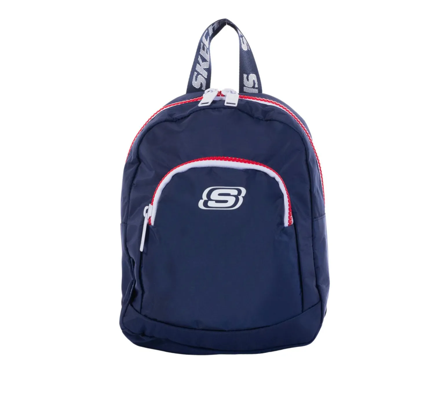 Carry all your must-haves in star-spangled style with the essential Skechers Mini Americana Backpack. This sporty mini backpack features an American themed design, solid color poly fabric with multi-storage zip pockets.