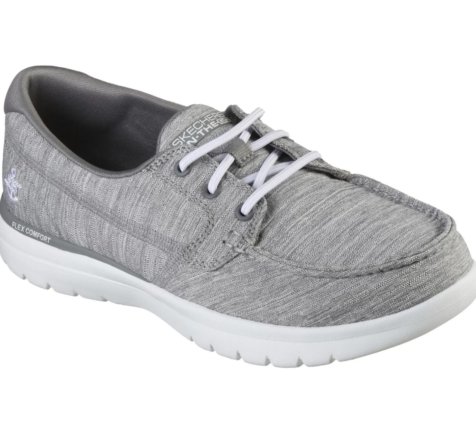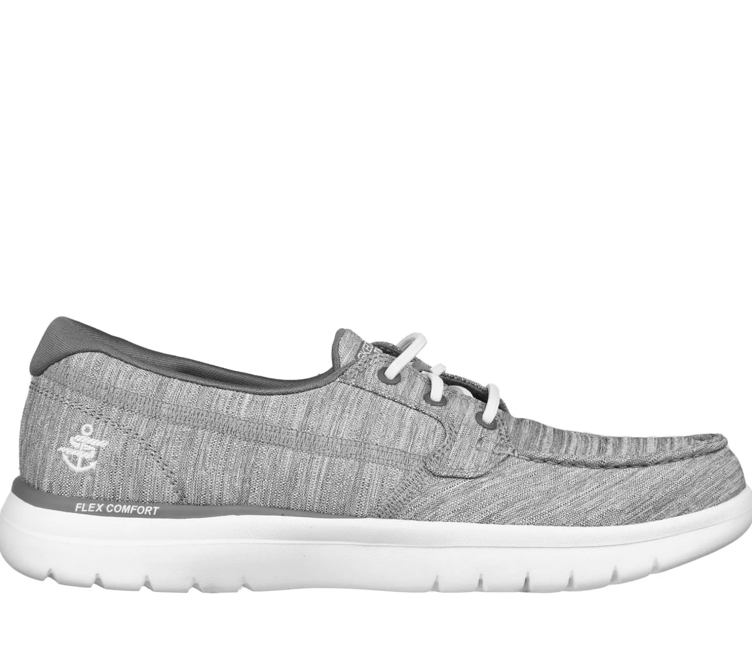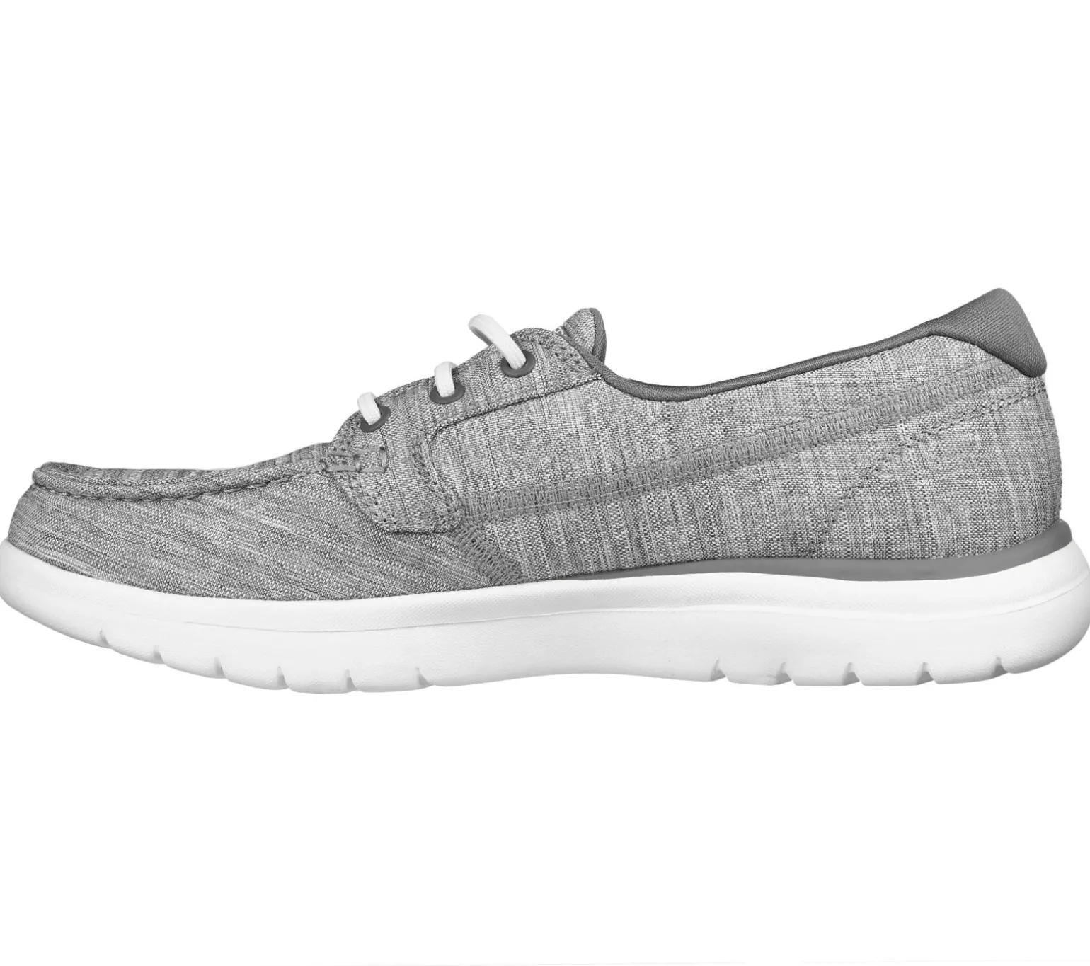 Iconic design and premium materials fuse with innovative Skechers Performance technology to achieve the ultimate in comfort and style. Skechers On-the-GO® Flex – Ashore has a colorful heathered finish soft linen fabric upper in a casual boat shoe design with a Skechers Air-Cooled Goga Mat insole and lightweight ULTRA GO® cushioning.