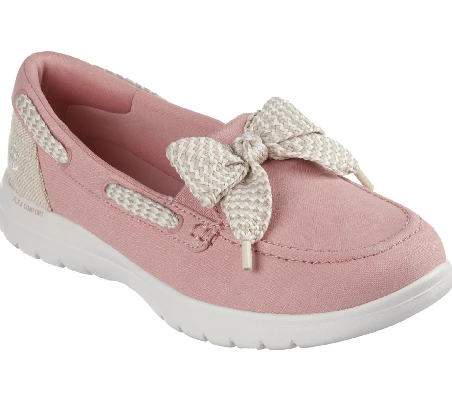 Classic nautical style and comfort combine in Skechers On-the-GO® Flex – Coral Coast. This vegan boater inspired design features a canvas upper with woven twill and oversized bow detail, a breathable Skechers Air-Cooled Goga Mat insole, and lightweight ULTRA GO® cushioning.