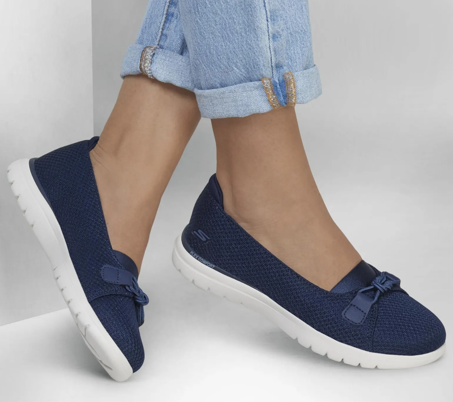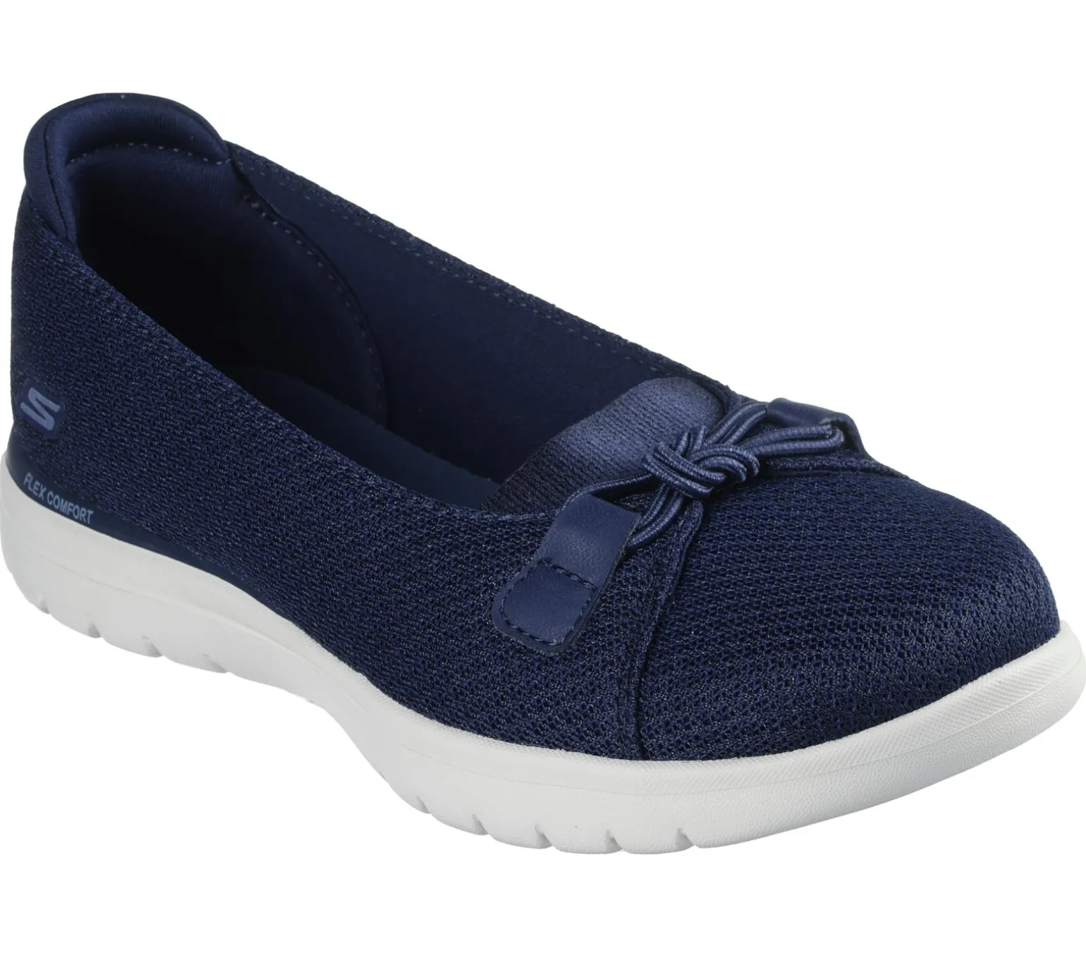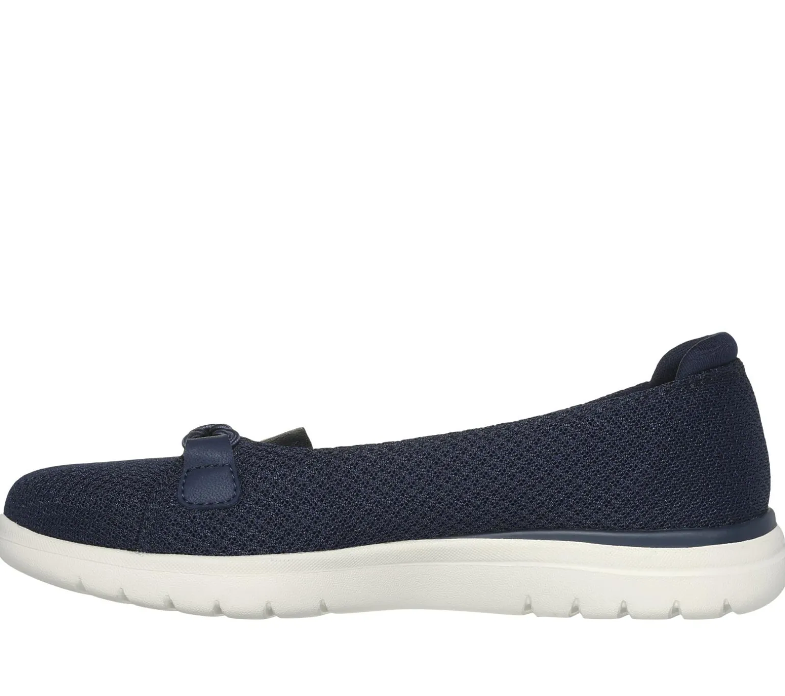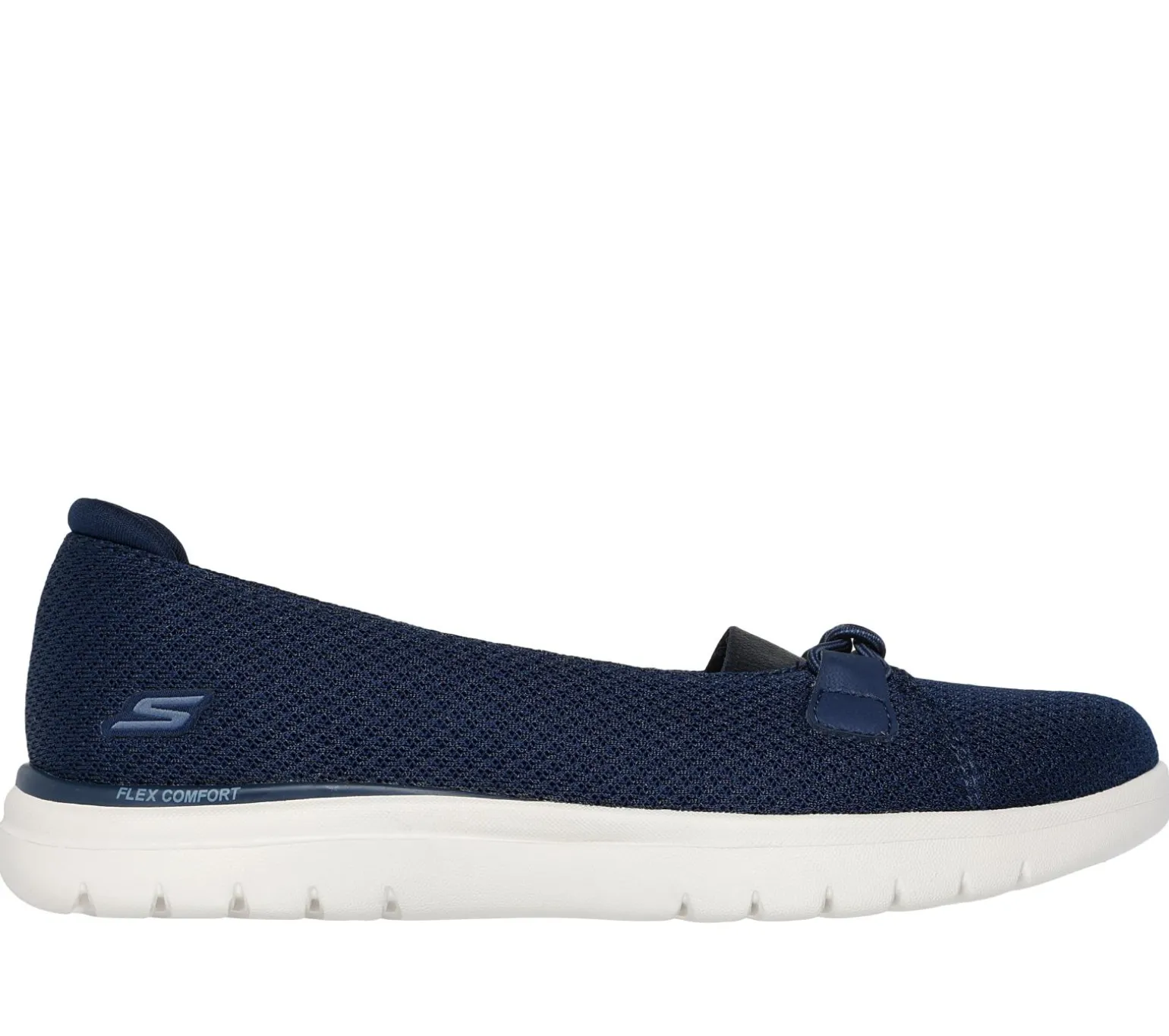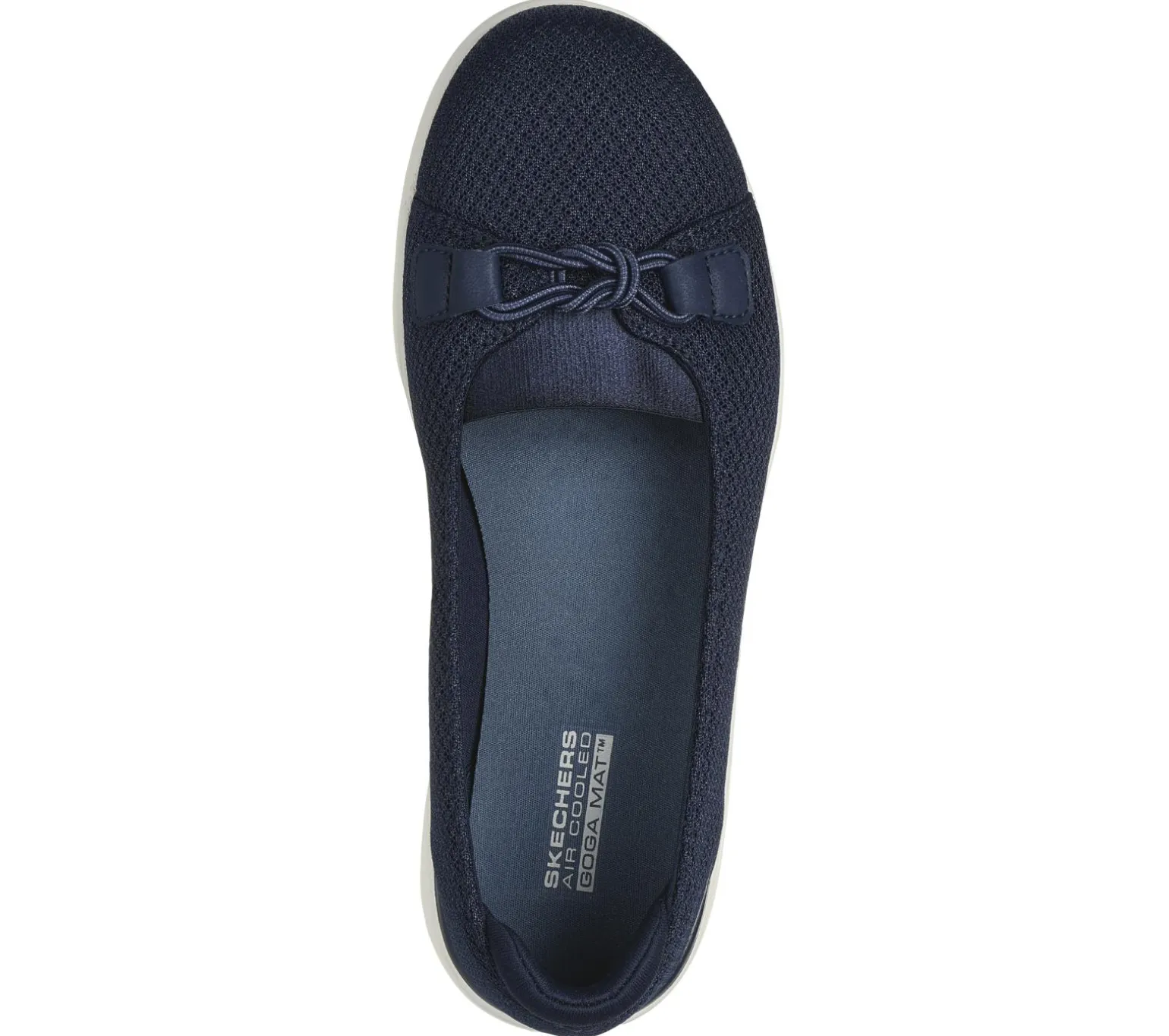 Stylish and versatile comfort combine in Skechers On-the-GO® Flex – Peony. This skimmer style features a mesh upper with a knot detail, high-rebound Skechers Air-Cooled Goga Mat insole, and lightweight ULTRA GO® cushioning.