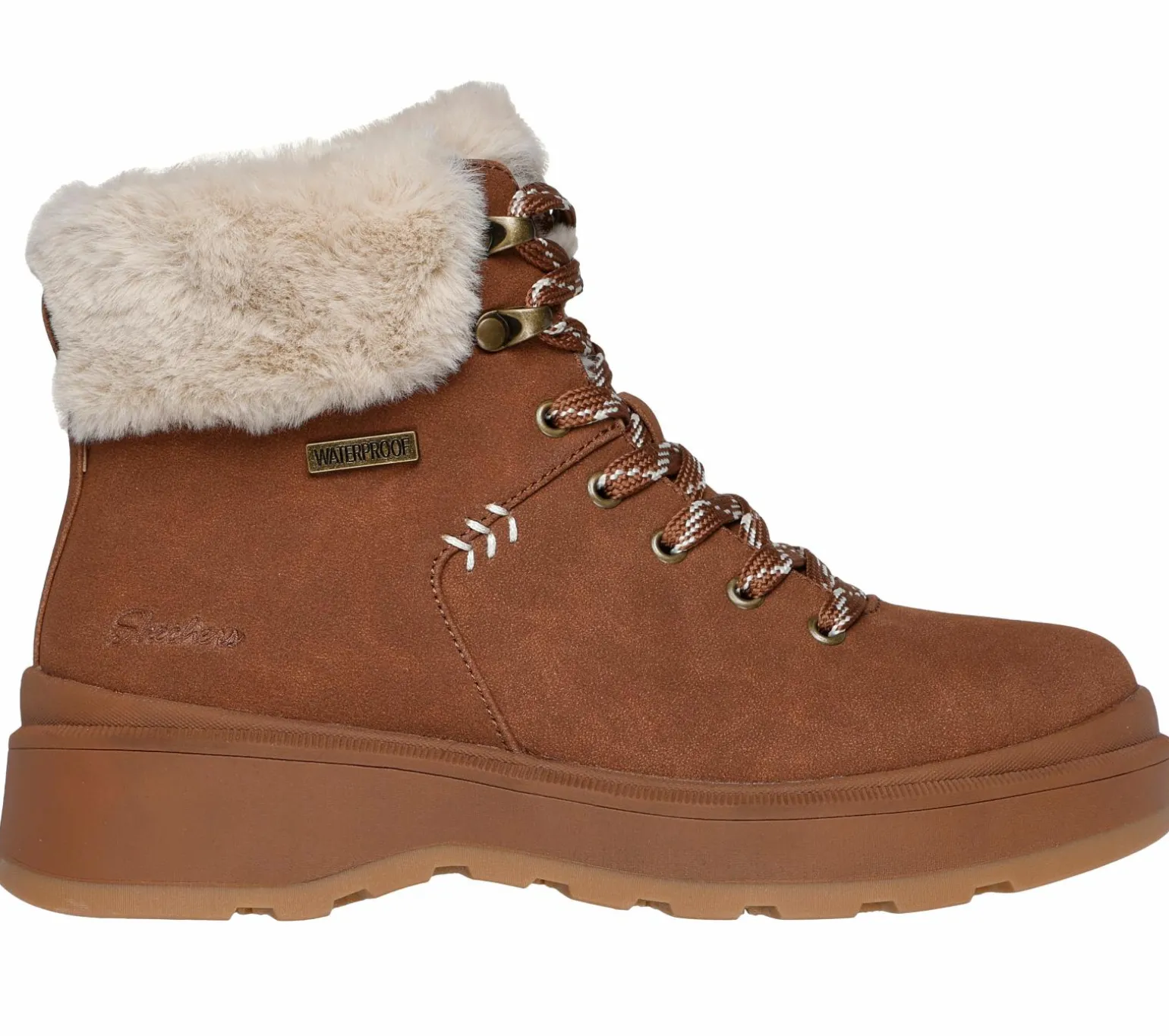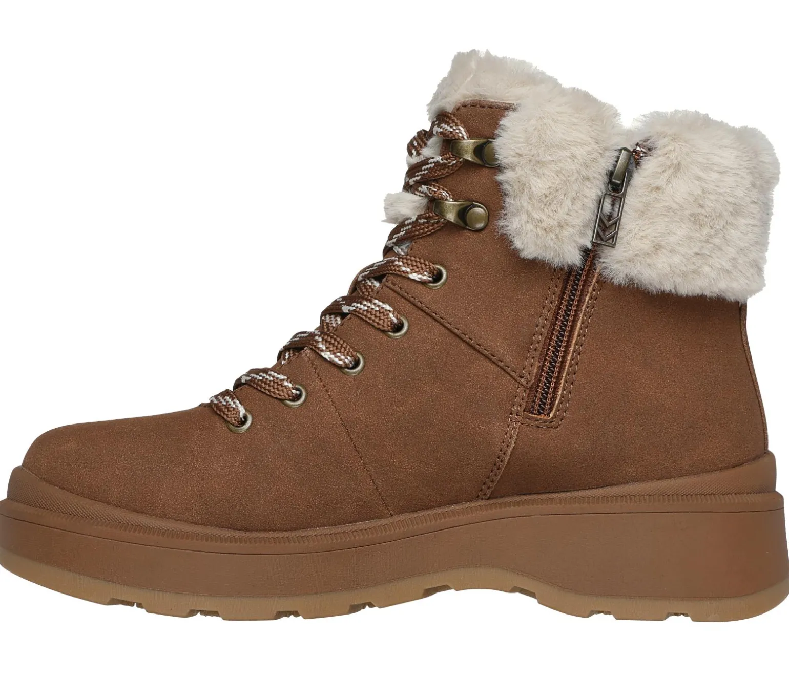 Stay warm and cozy this season in Skechers Park City. This lace-up fashion hiker boot features a synthetic suede upper with a faux-fur trim and lining, Skechers Memory Foam insole and an anti-slip traction outsole.