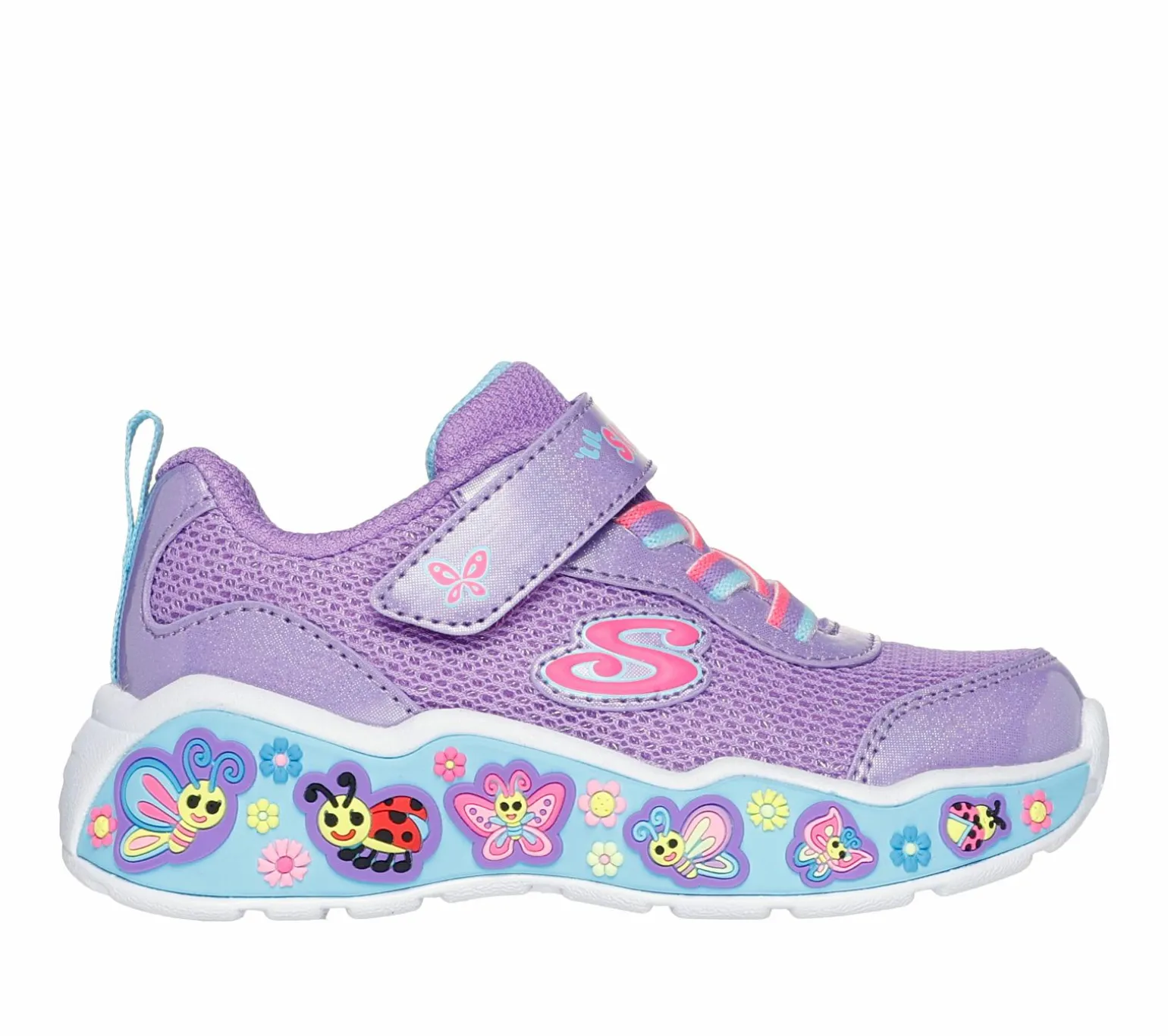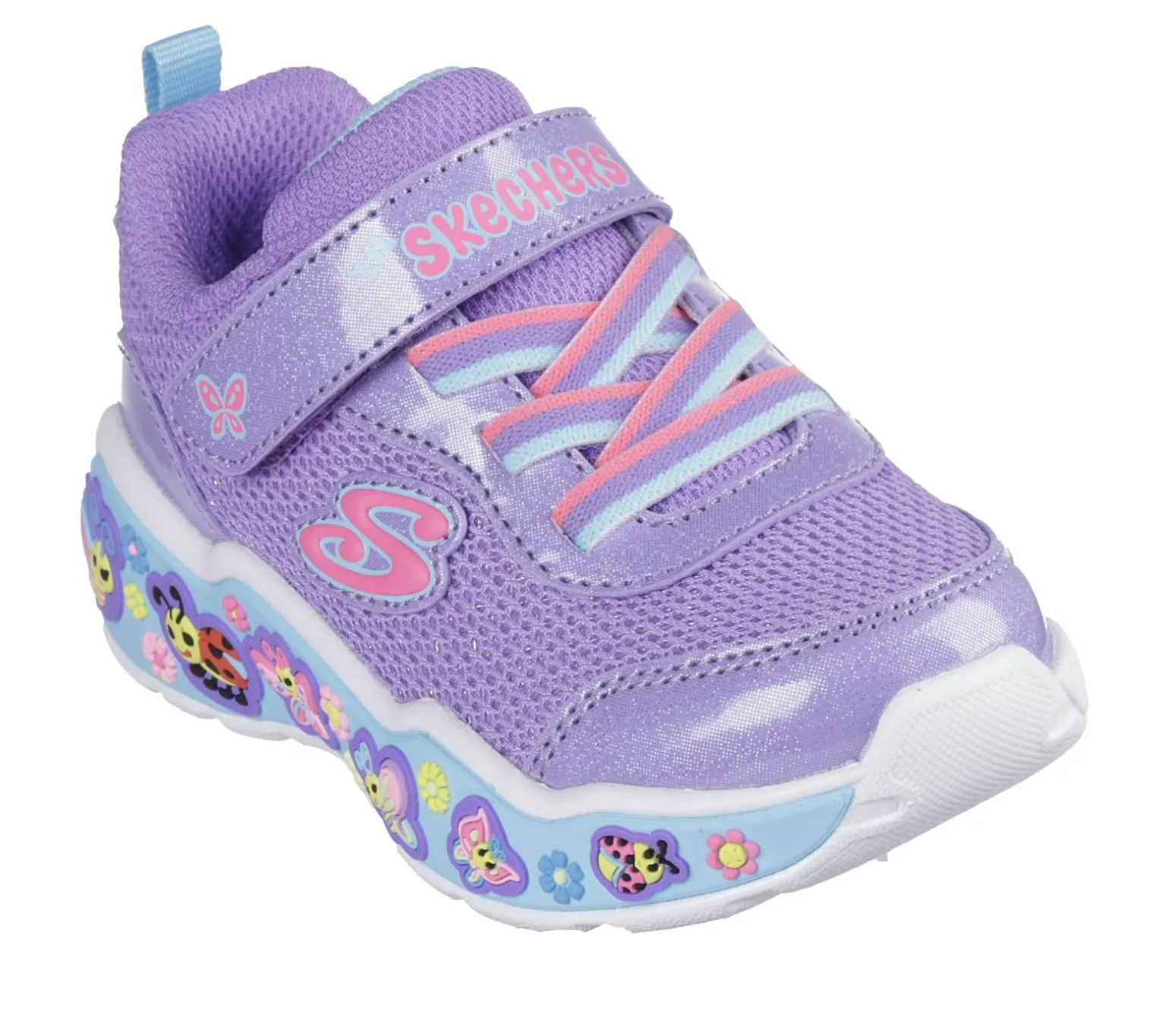 Your little one will be smiling all day long wearing Skechers Play Scene – Fun Squad. This adorable sneaker features a mesh upper with glittery overlays, stretch laces plus Adaptive Closure, and a well-cushioned midsole with playful, themed graphics.