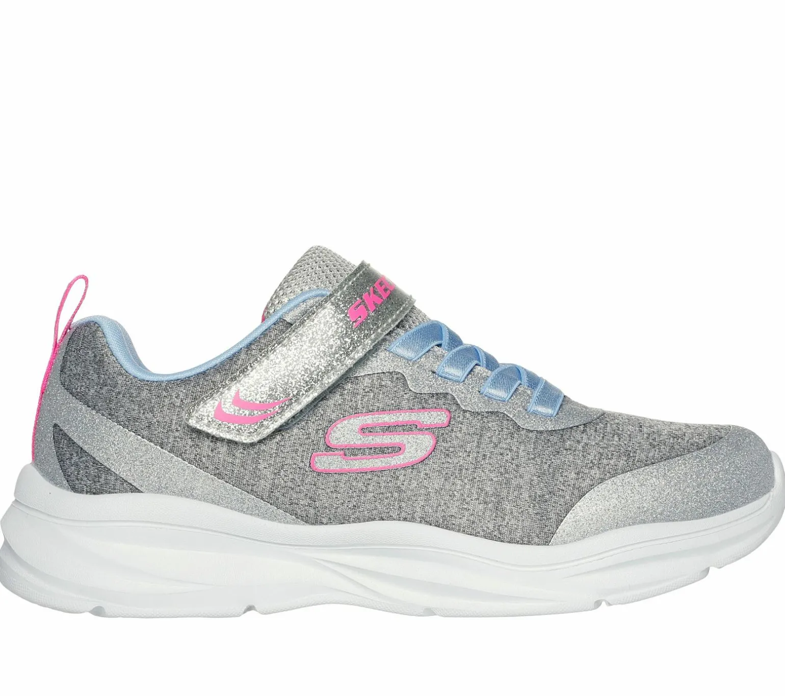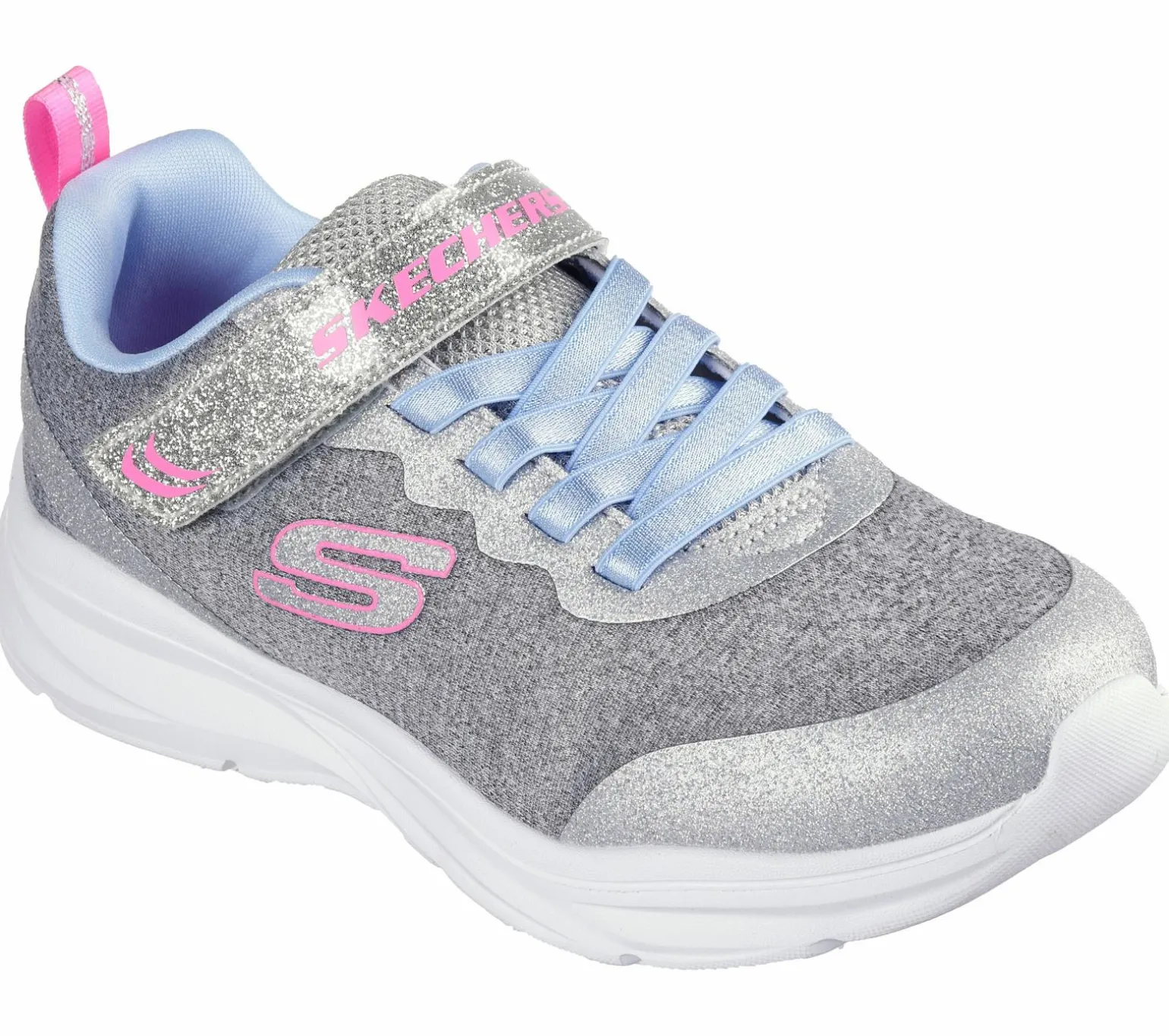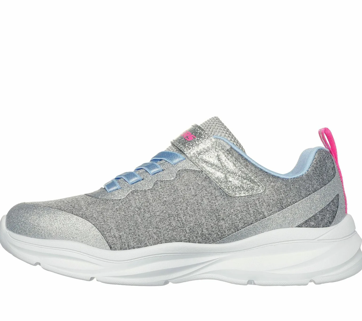 Sparkle and shine in style wearing Power Jams – Everyday Bestie. This easy-wearing stretch-laced design features a heathered mesh upper with synthetic glitter overlays, adjustable instep strap, and a cushioned insole.