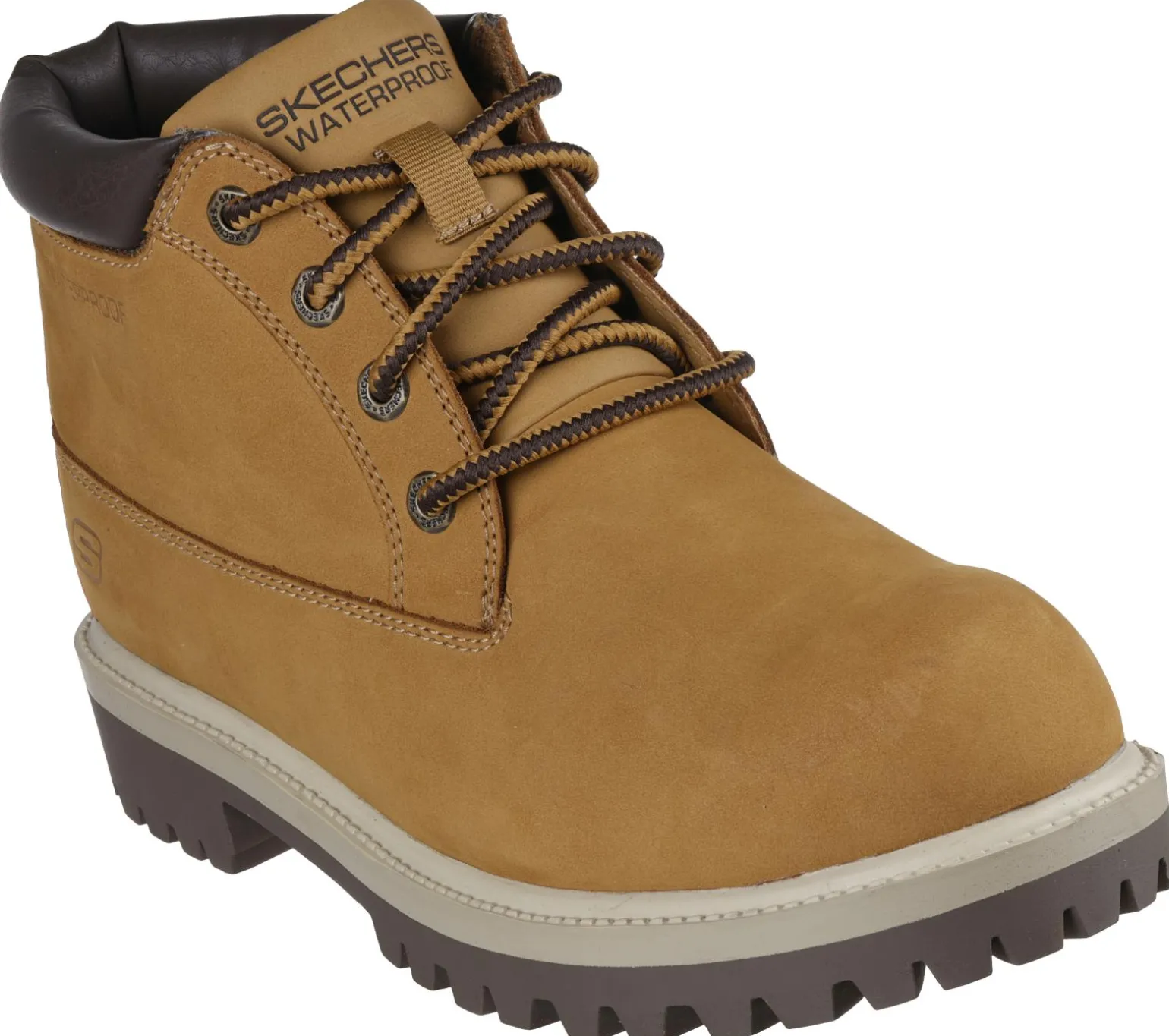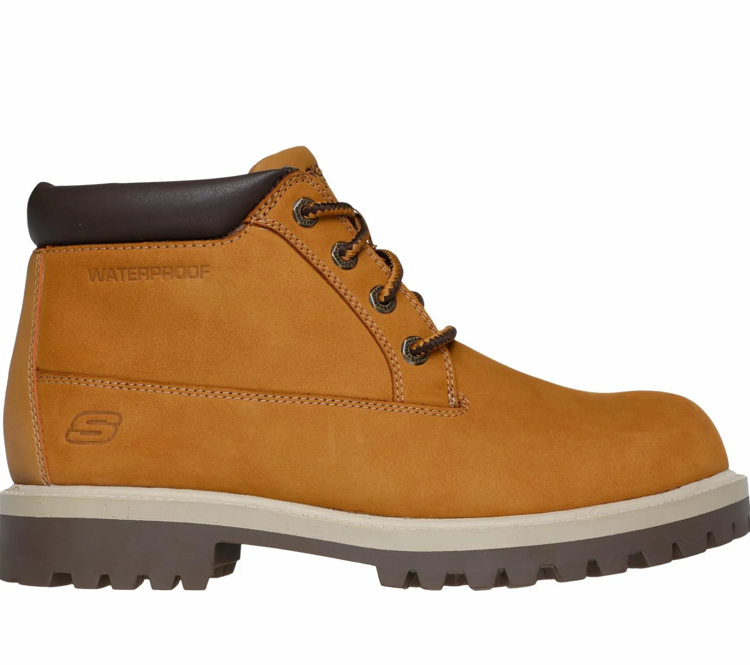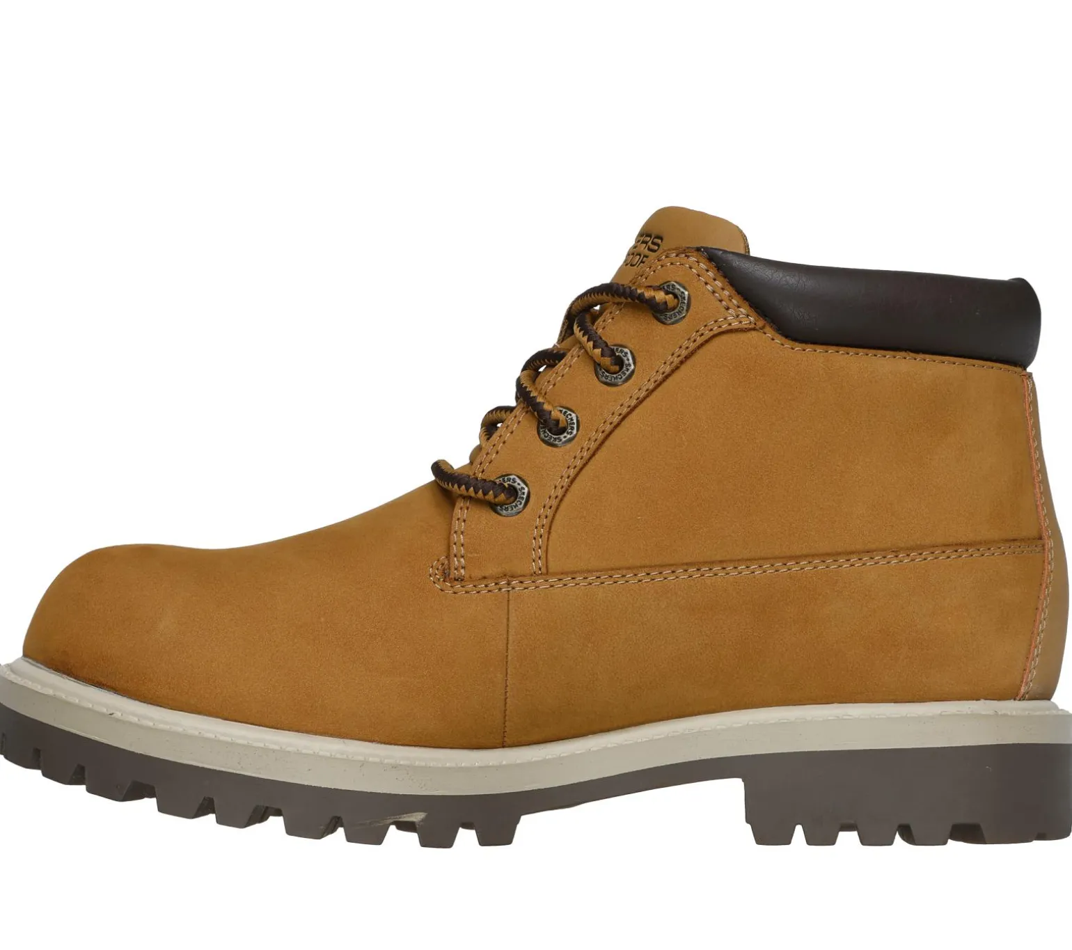 Classic style meets reliable comfort in Skechers Relaxed Fit®: Sergeants – Thatxter. This lace-up boot features a waterproof leather upper with padded collar, and a cushioned Skechers Memory Foam insole.